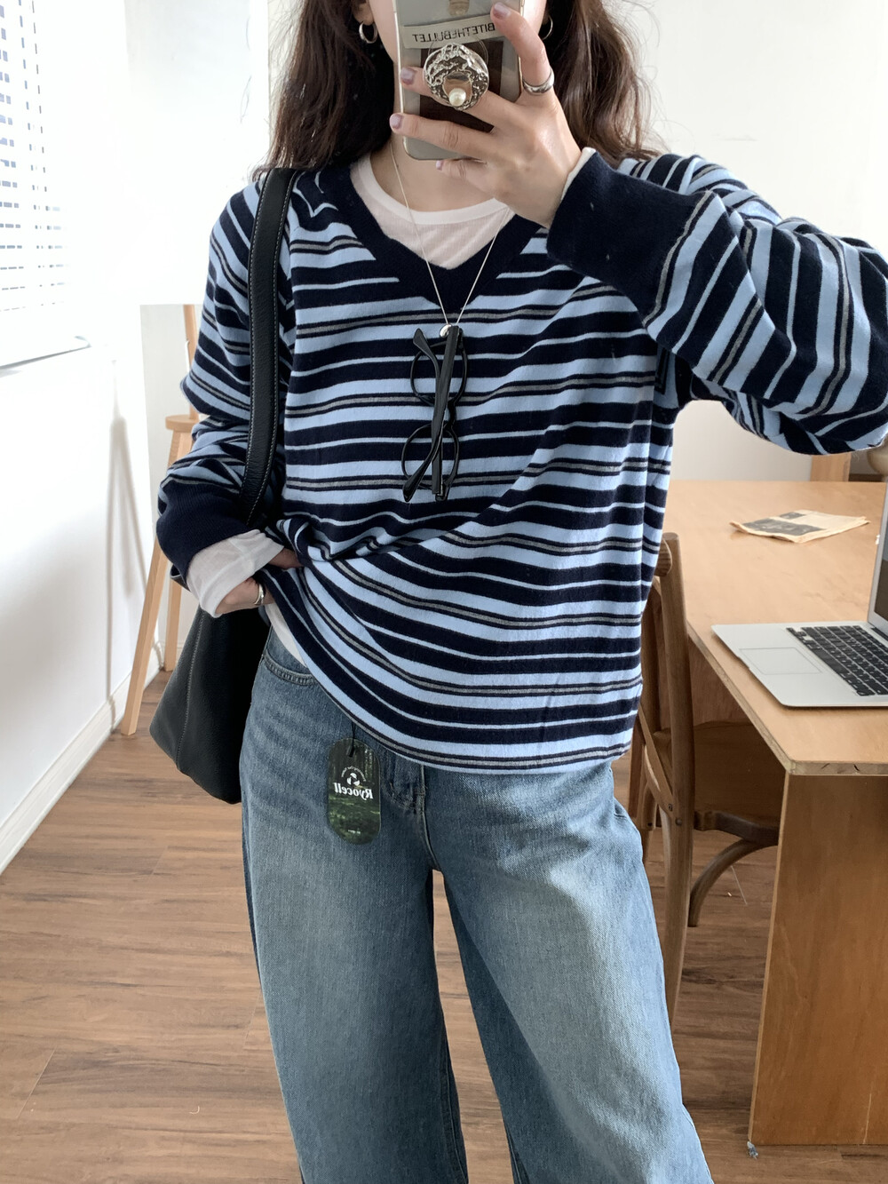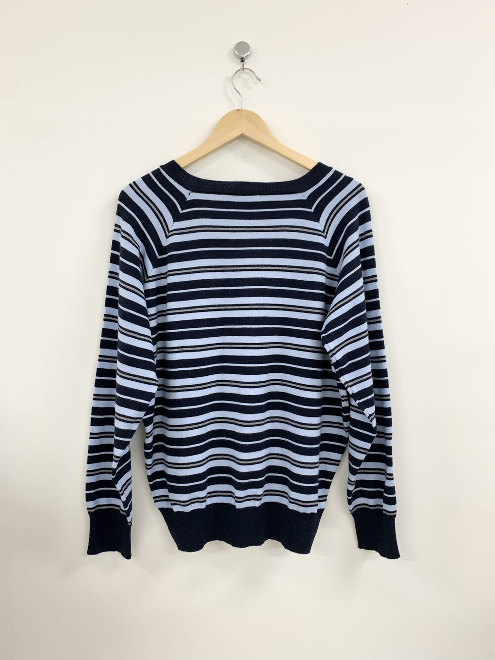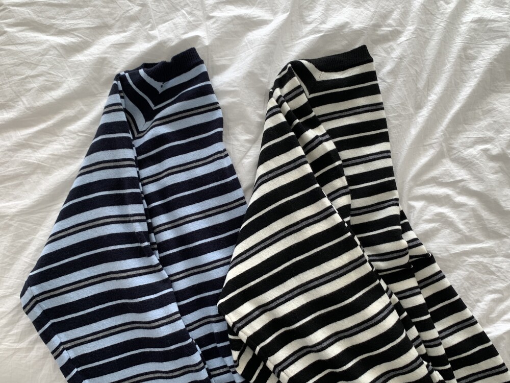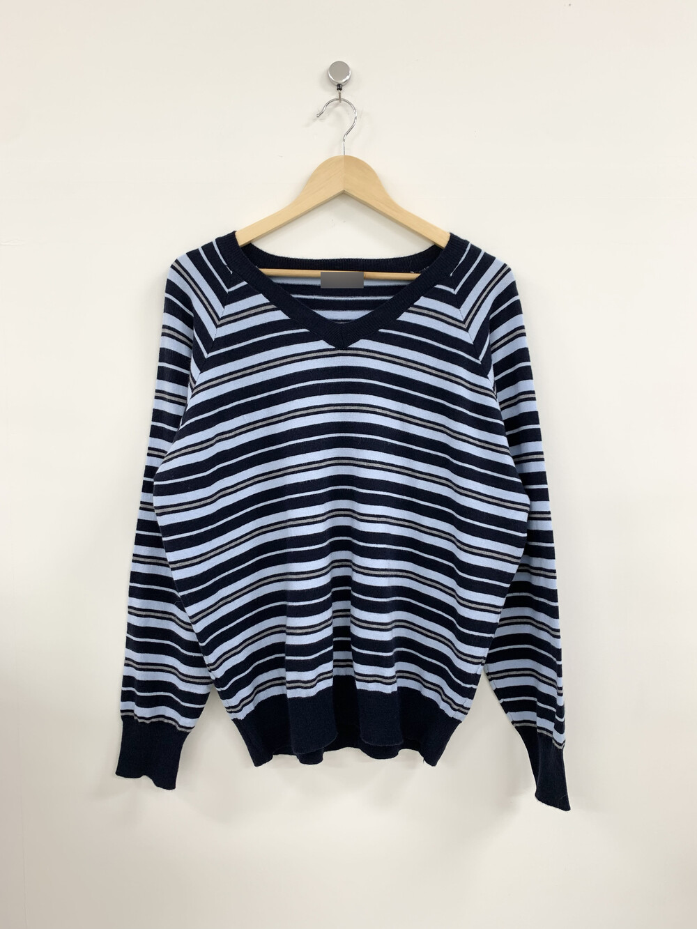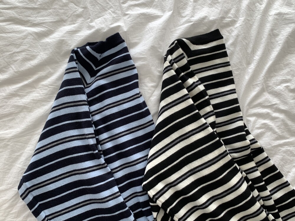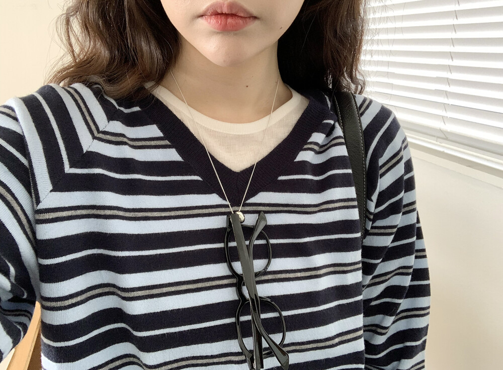 TOP - STRIPE VNECK KNIT(BLUE)