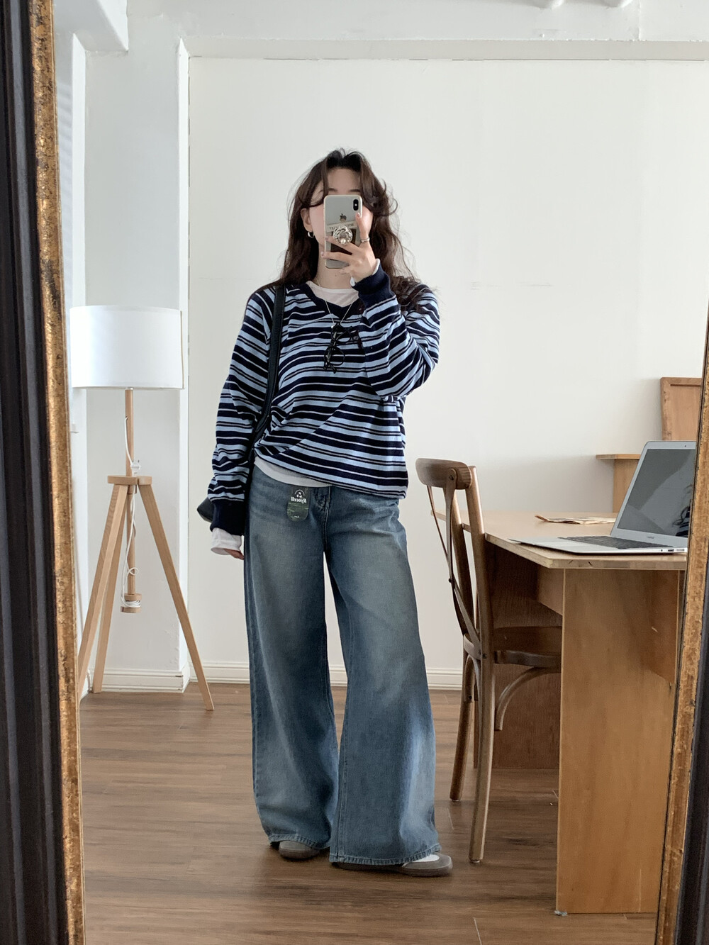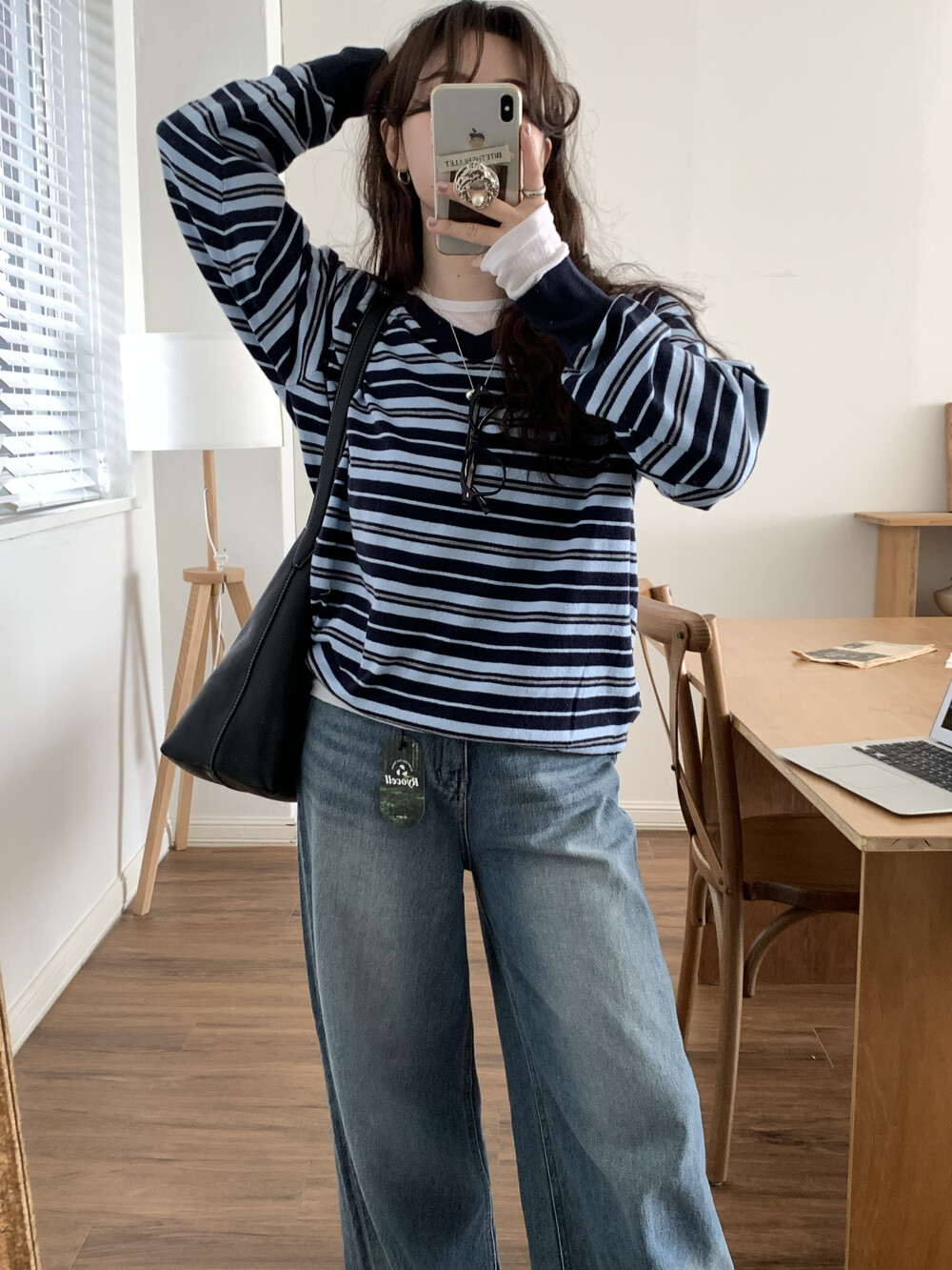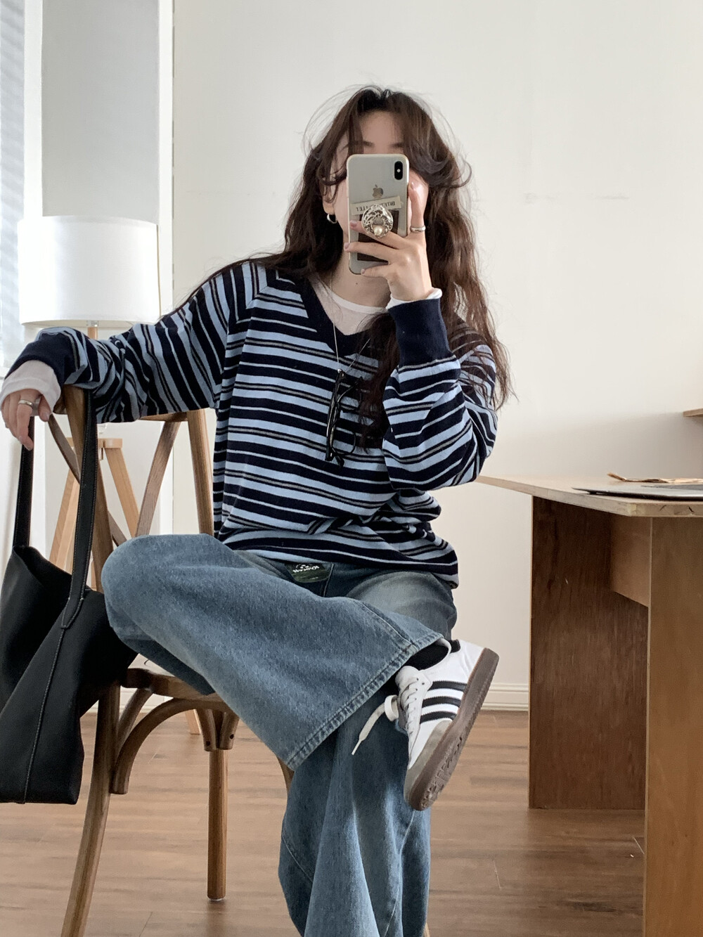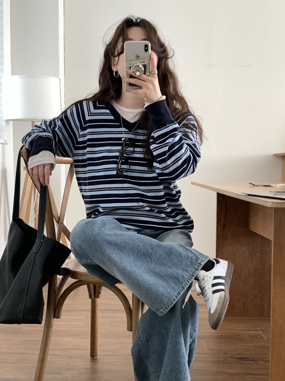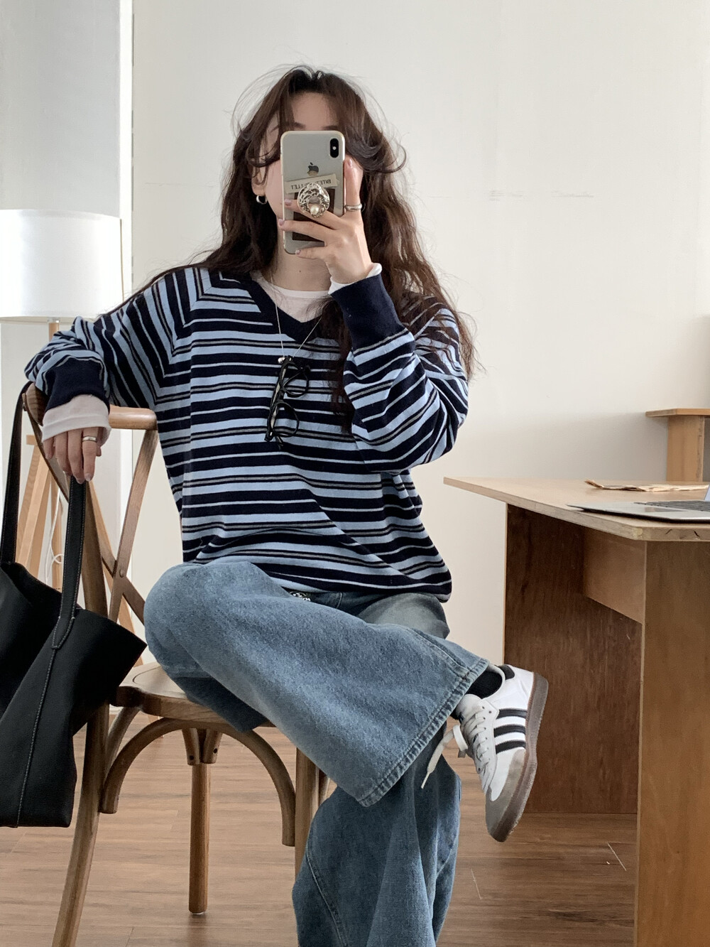 TOP - STRIPE VNECK KNIT(BLUE)