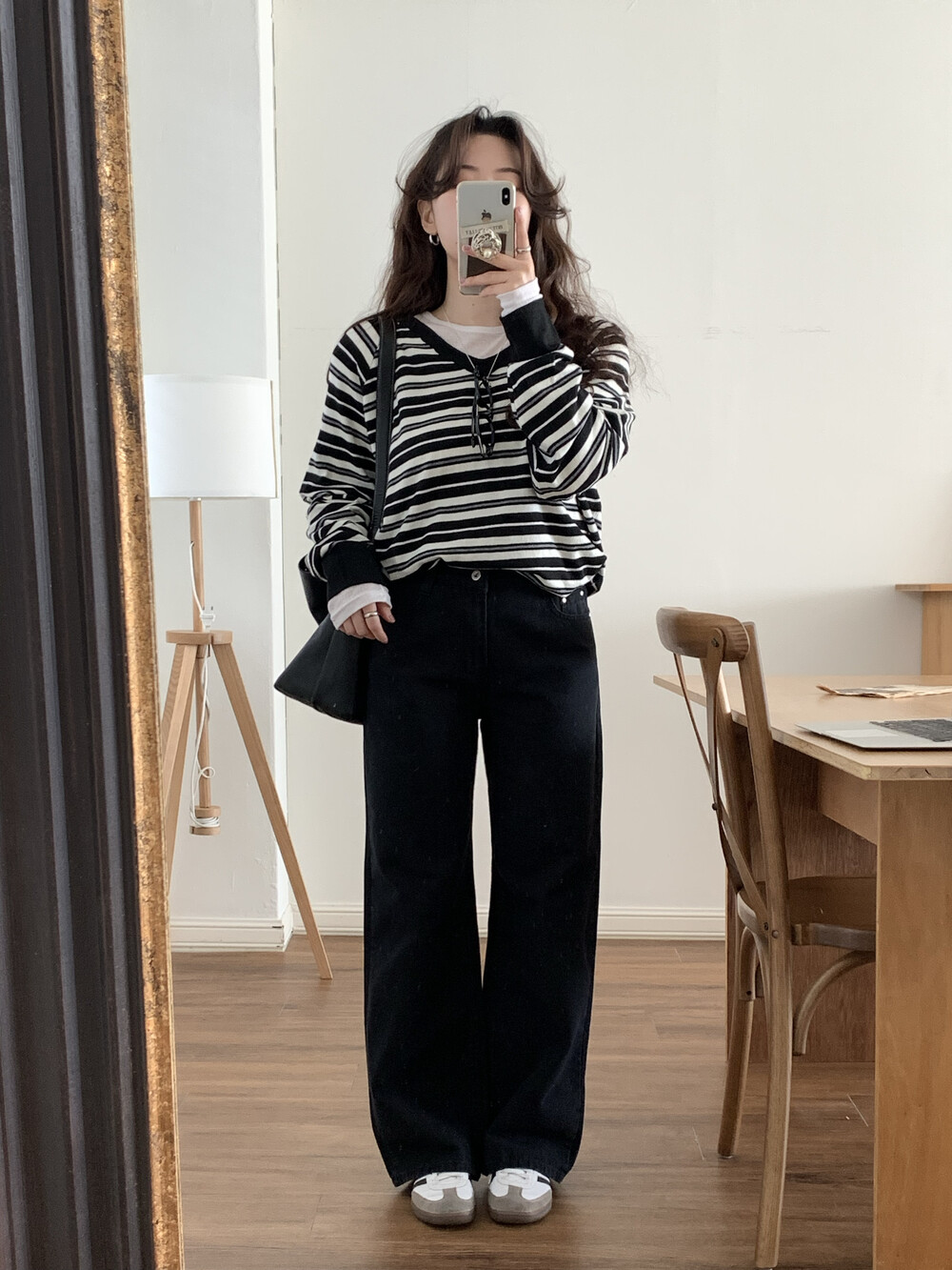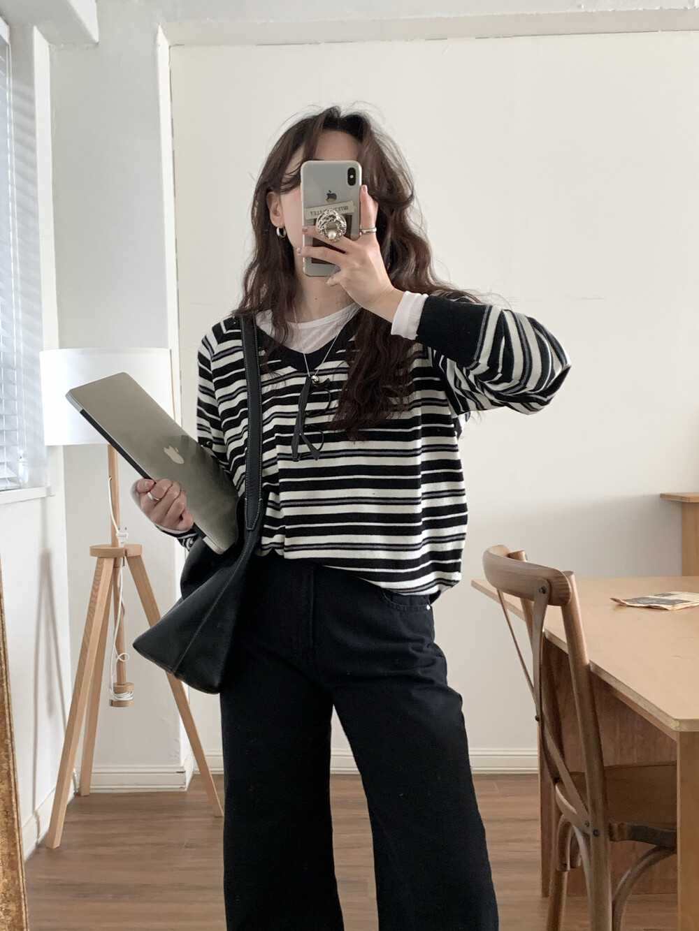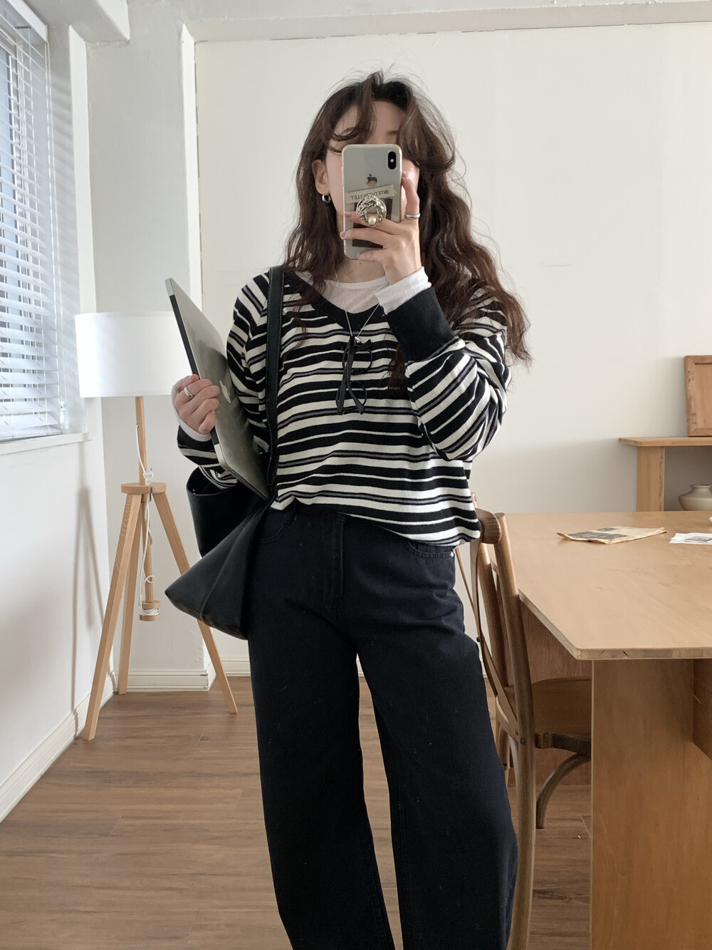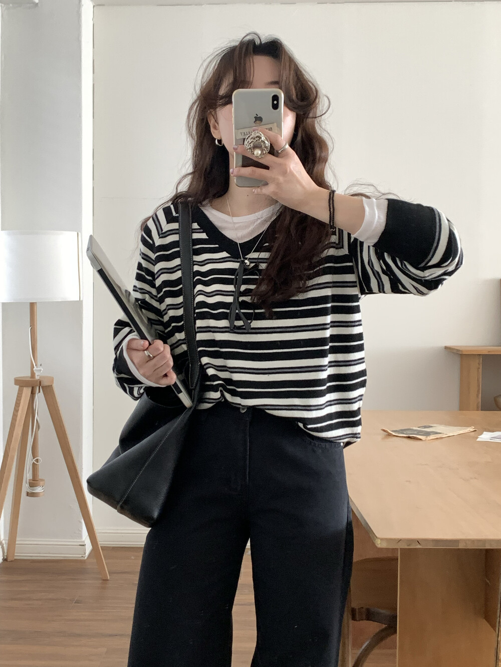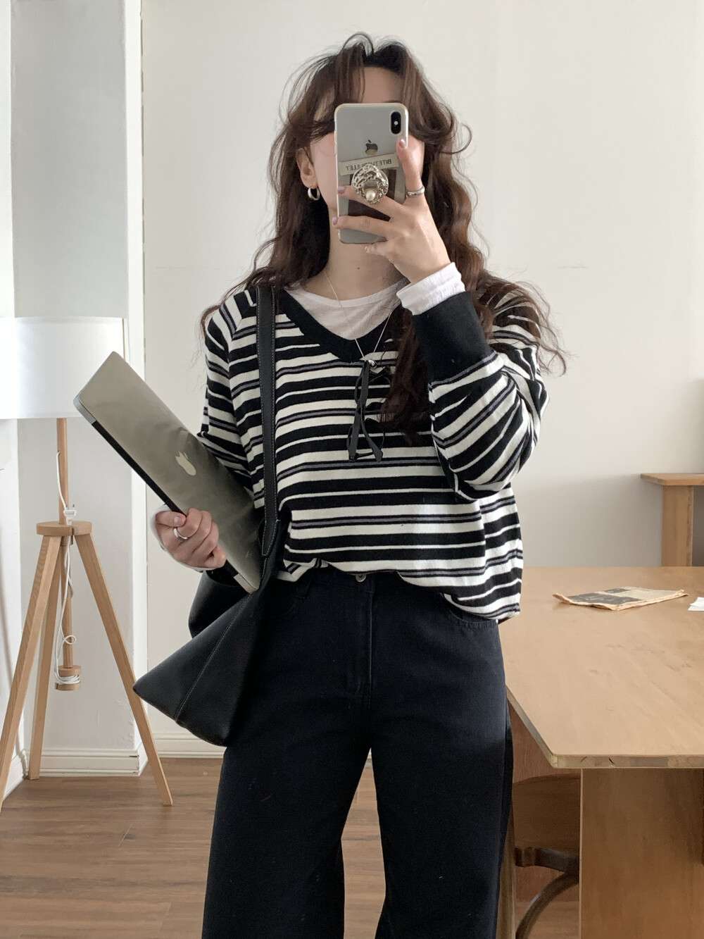 TOP - STRIPE VNECK KNIT(BLACK)