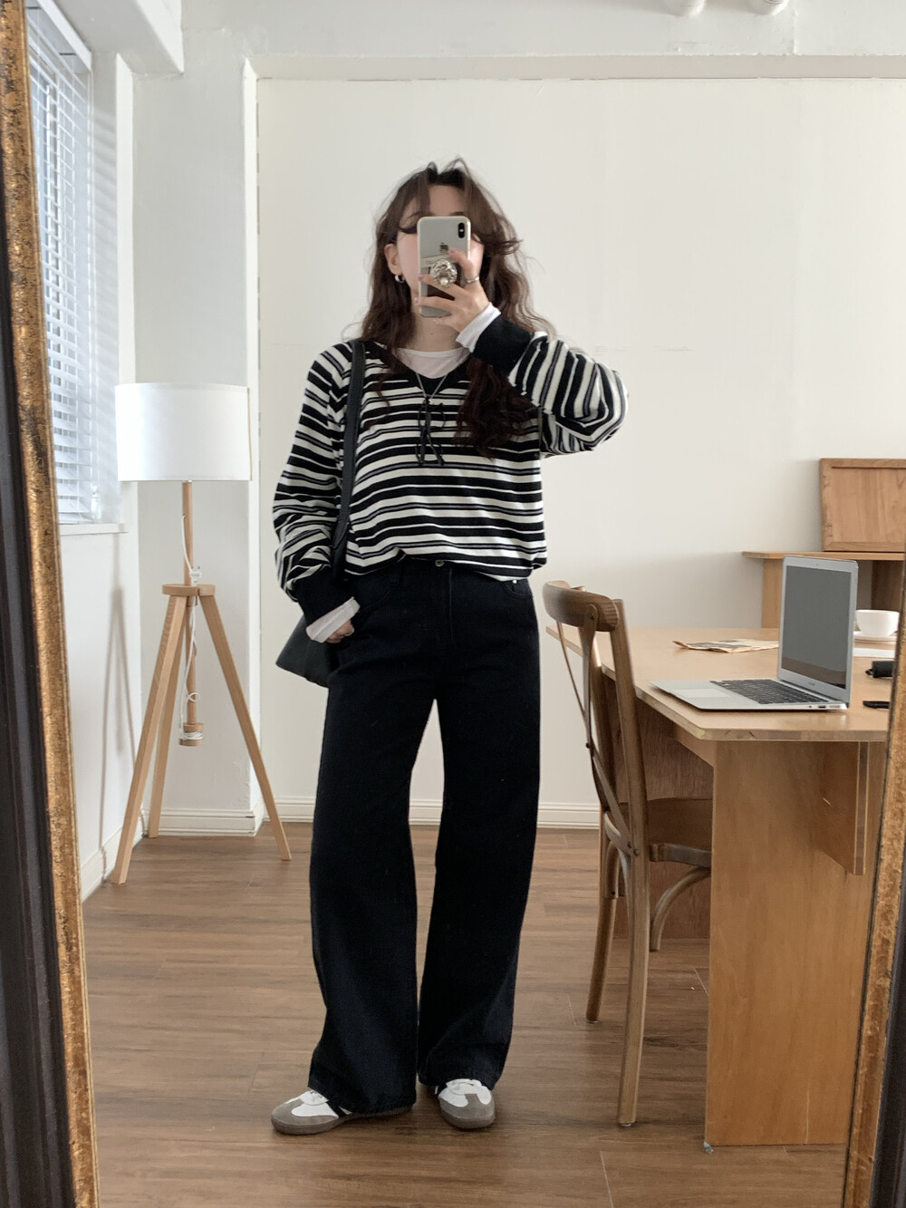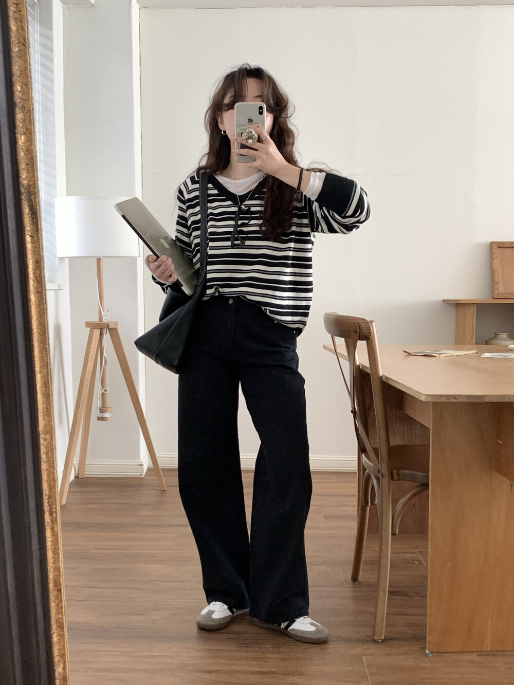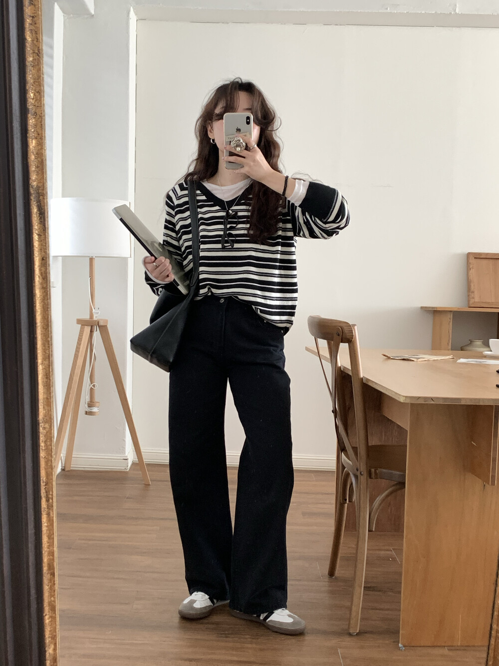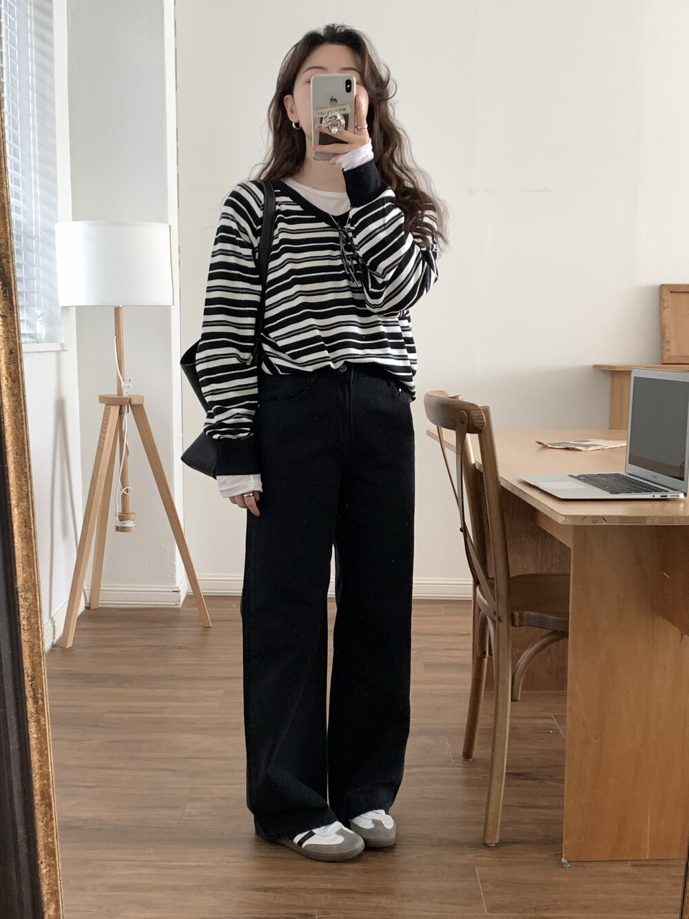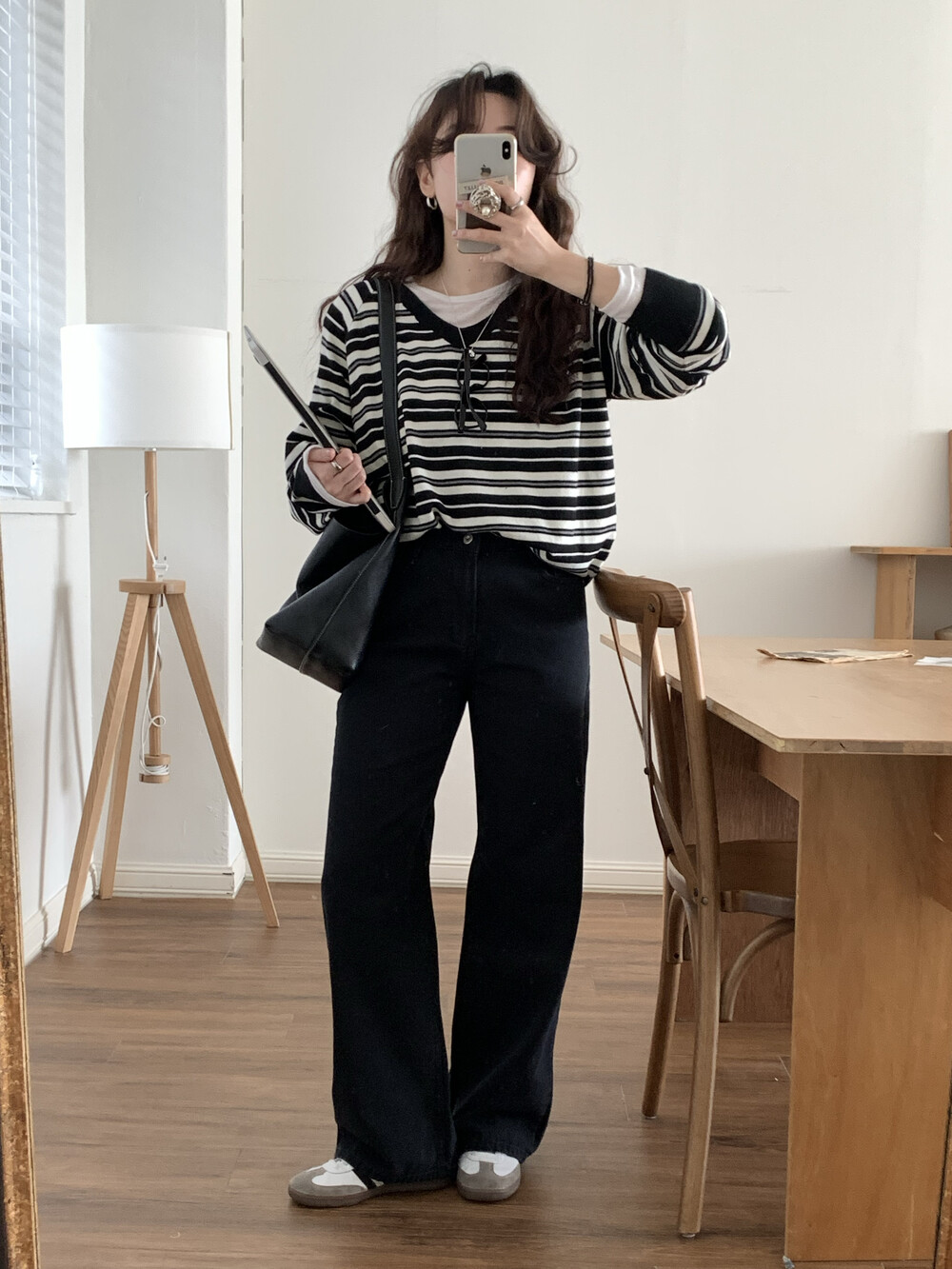 TOP - STRIPE VNECK KNIT(BLACK)