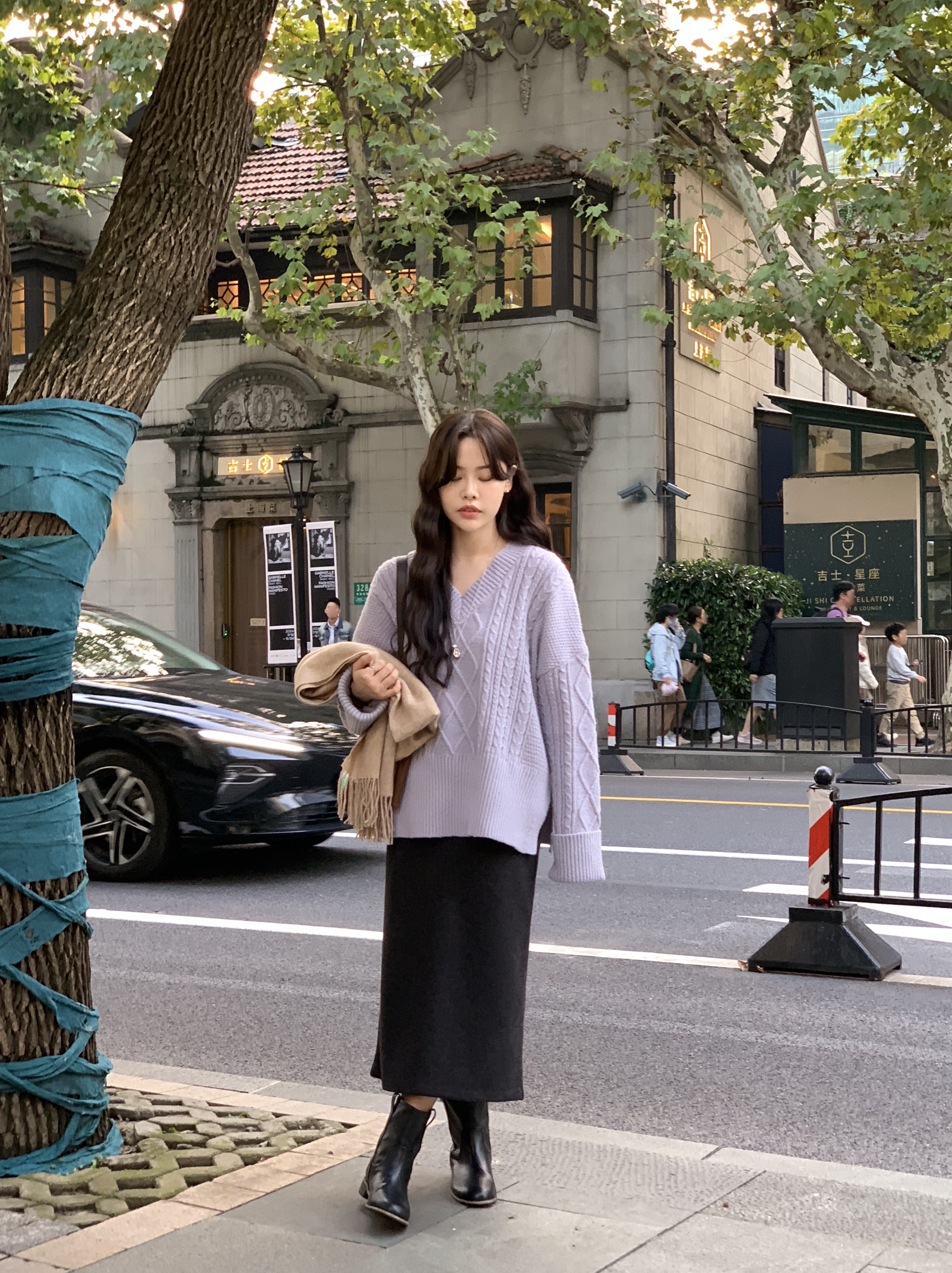 TOP - BELLA V NECK CABLE LONG KNIT(PURPLE)