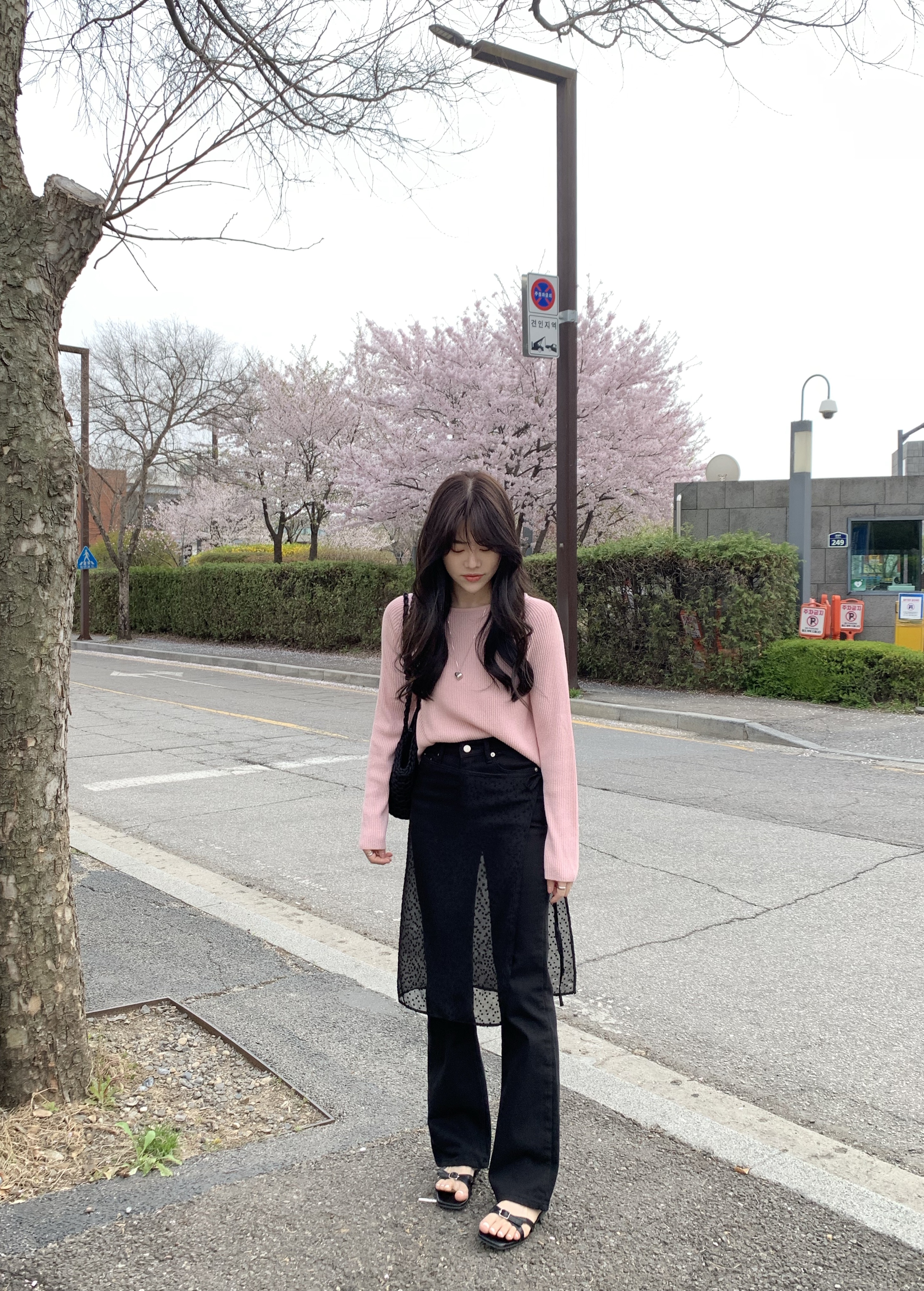BOTTOM : SLIM BLACK BOOTSCUT COTTON PANTS(S)