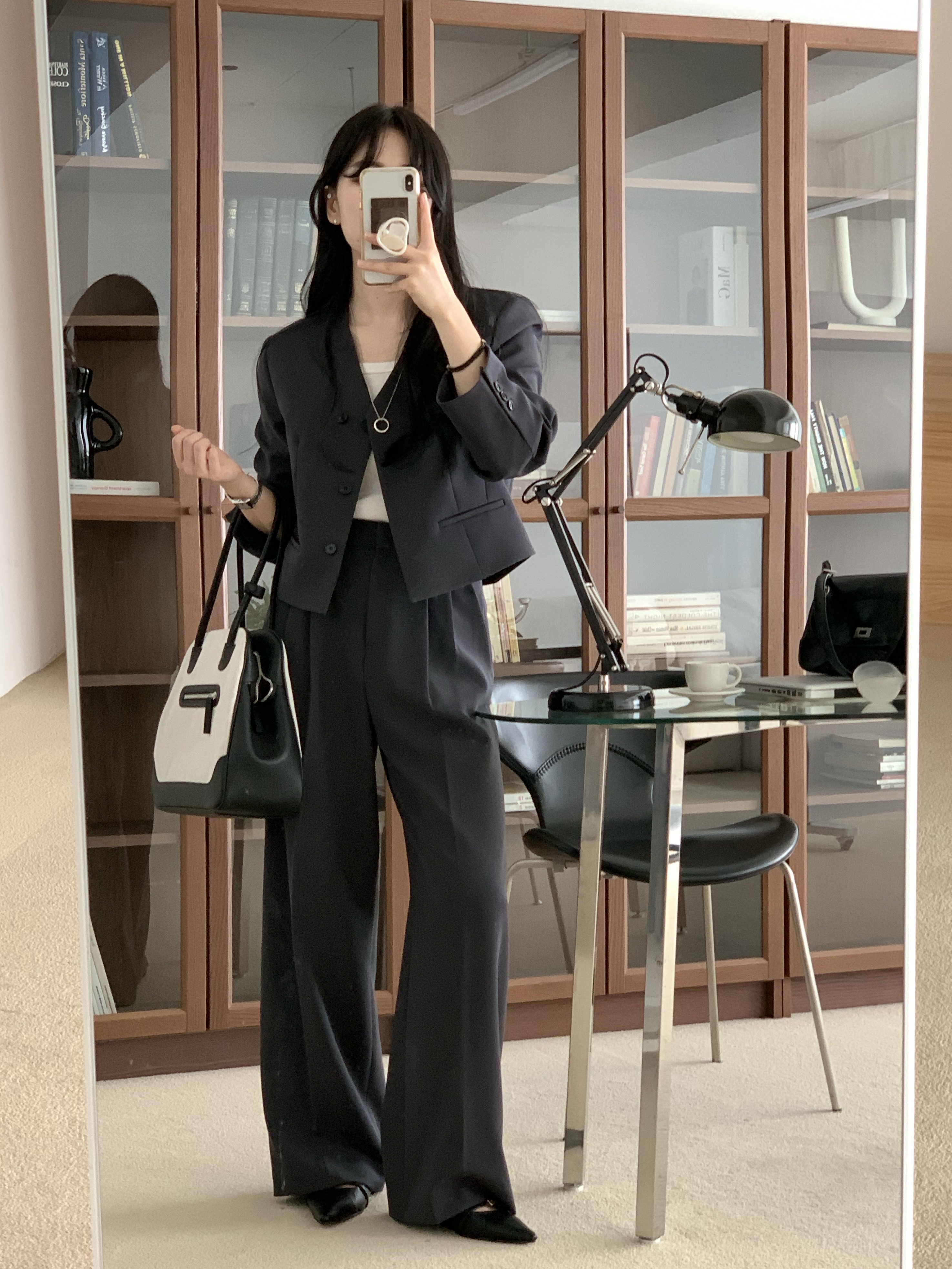 BOTTOM - MODERN TWO PINTUCK WIDE LONG SLACKS(CHACOAL/S)