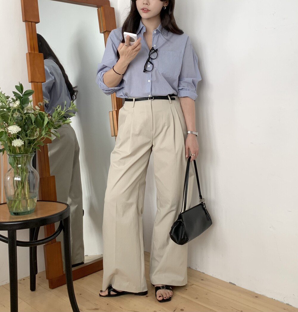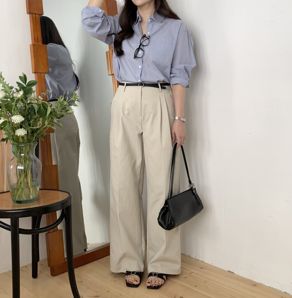 BOTTOM - VENICE PIN-TUCK WIDE PANTS (BEIGE/S)