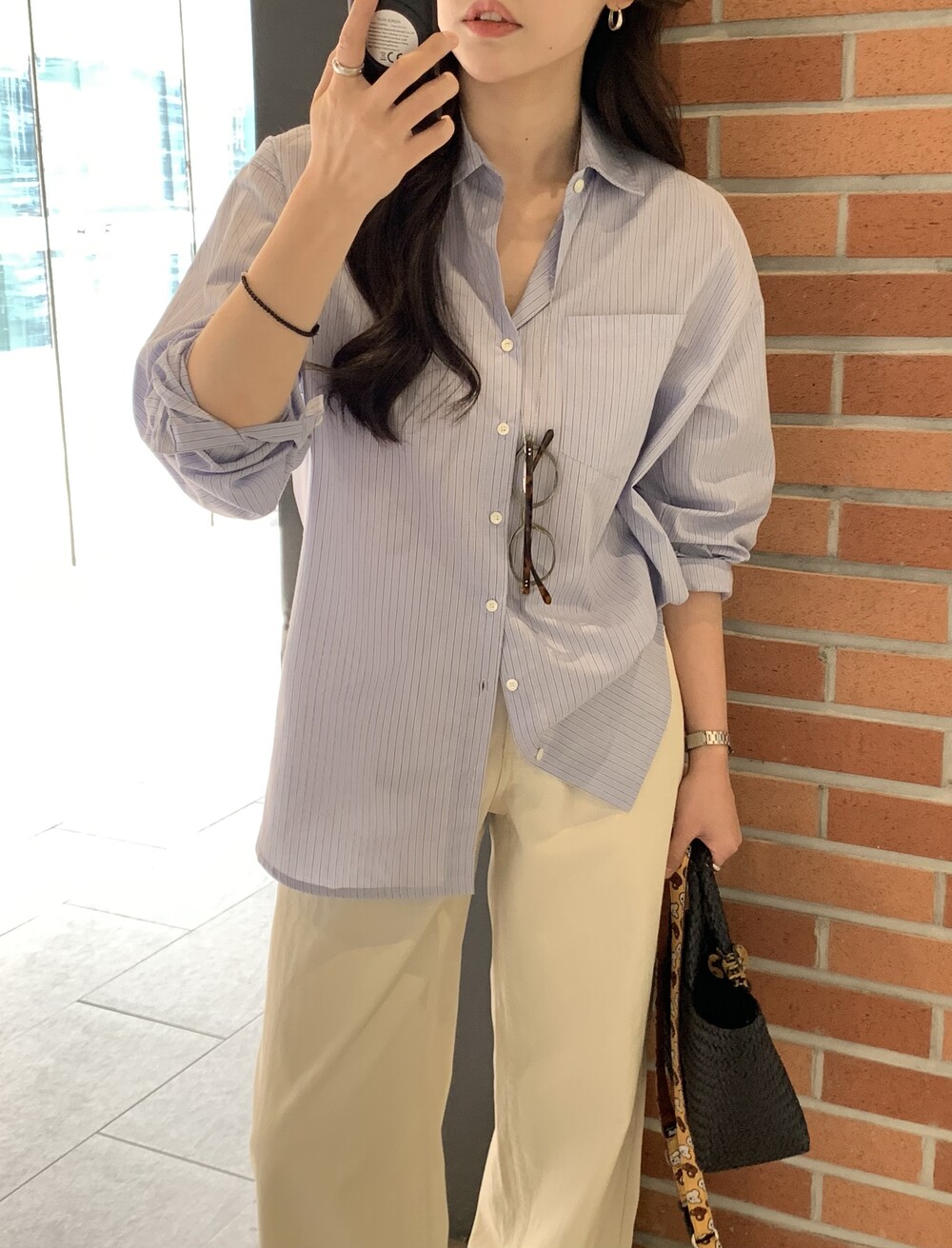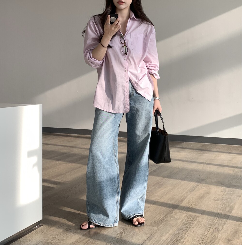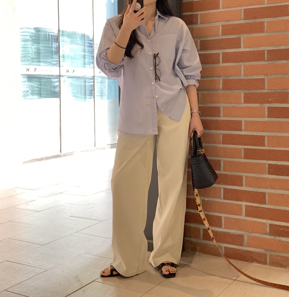 TOP - FLOAT LOOSE-FIT STRIPE SHIRT (SKY BLUE)