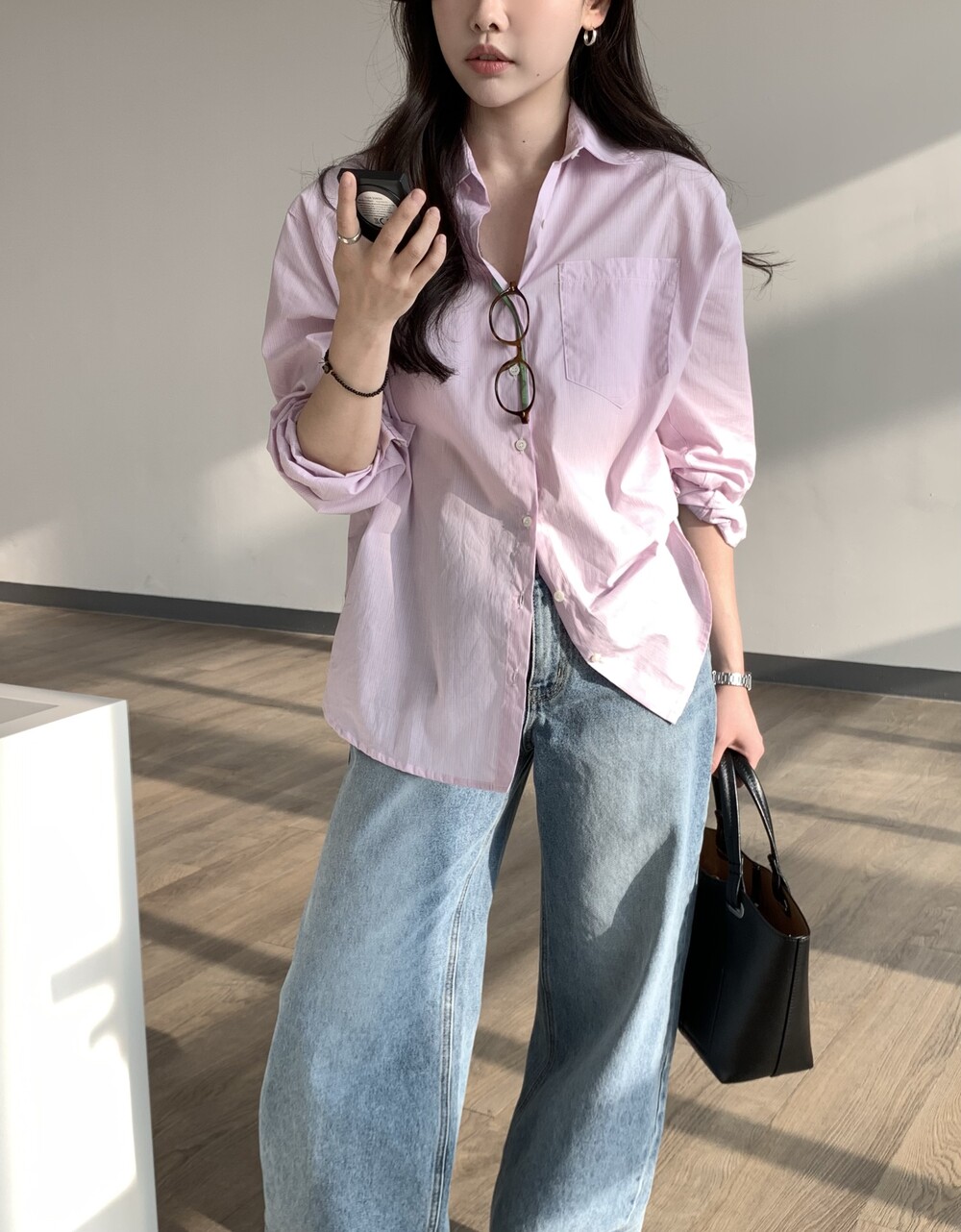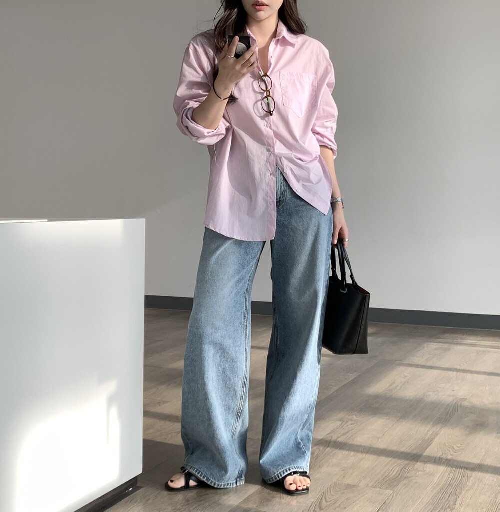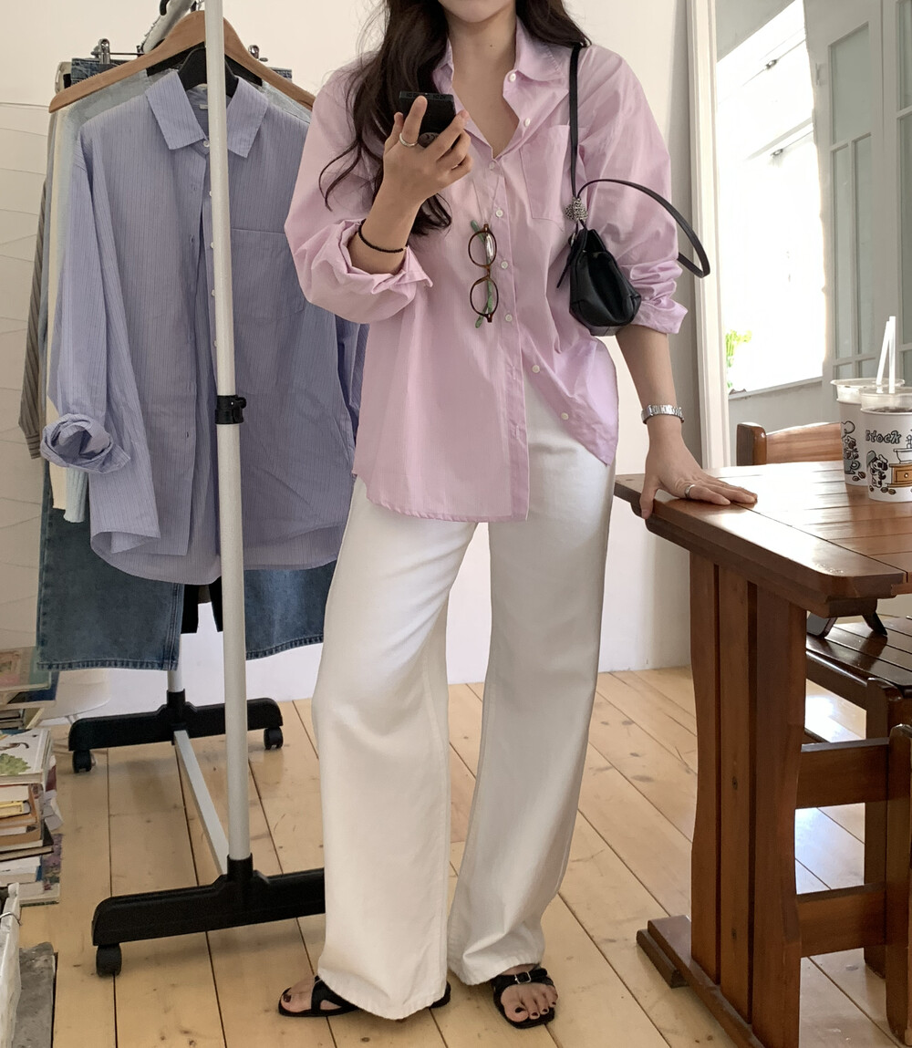 TOP - FLOAT LOOSE-FIT STRIPE SHIRT (PINK)