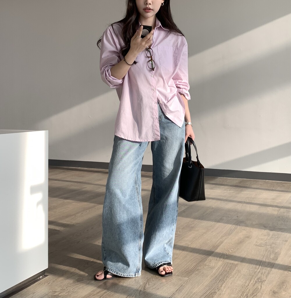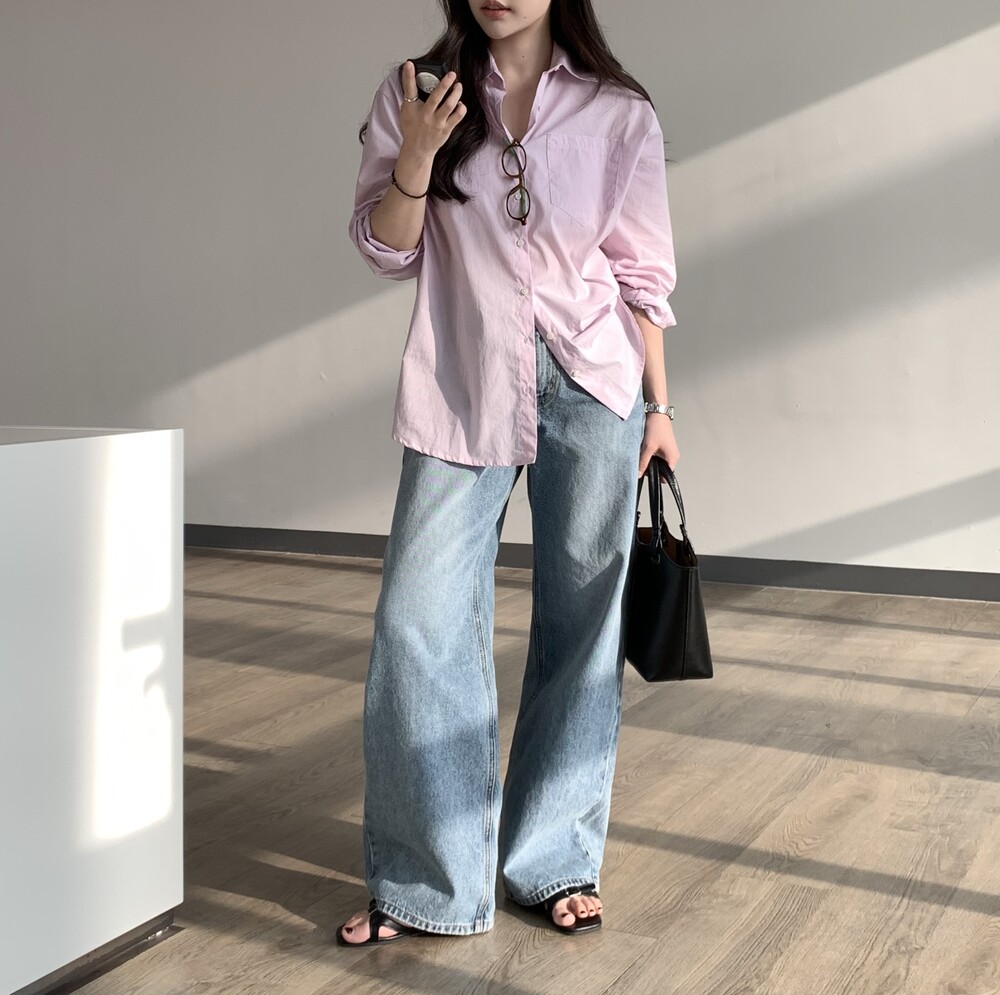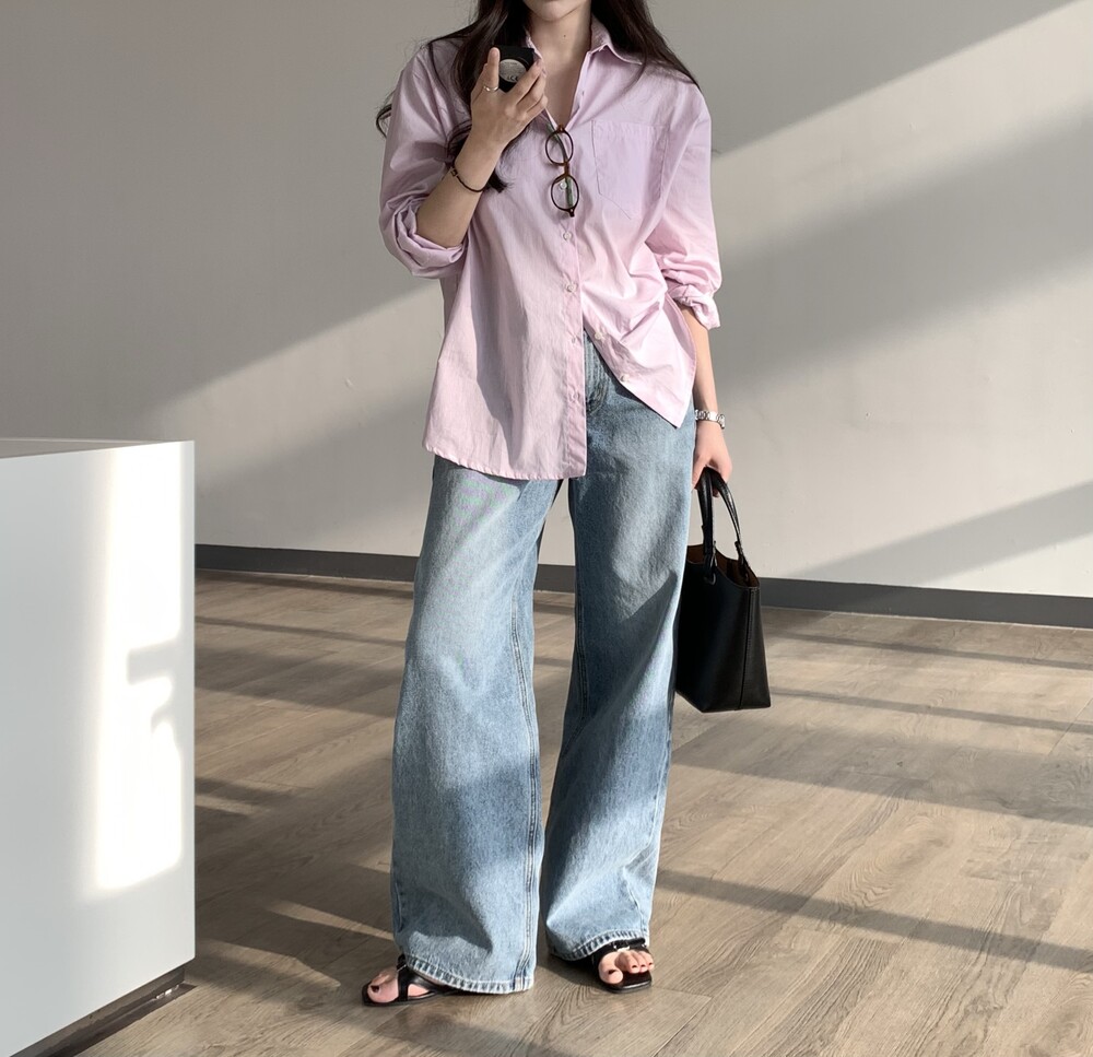 BOTTOM - NATURAL LIGHT BLUE WIDE DENIM PANTS (S)
