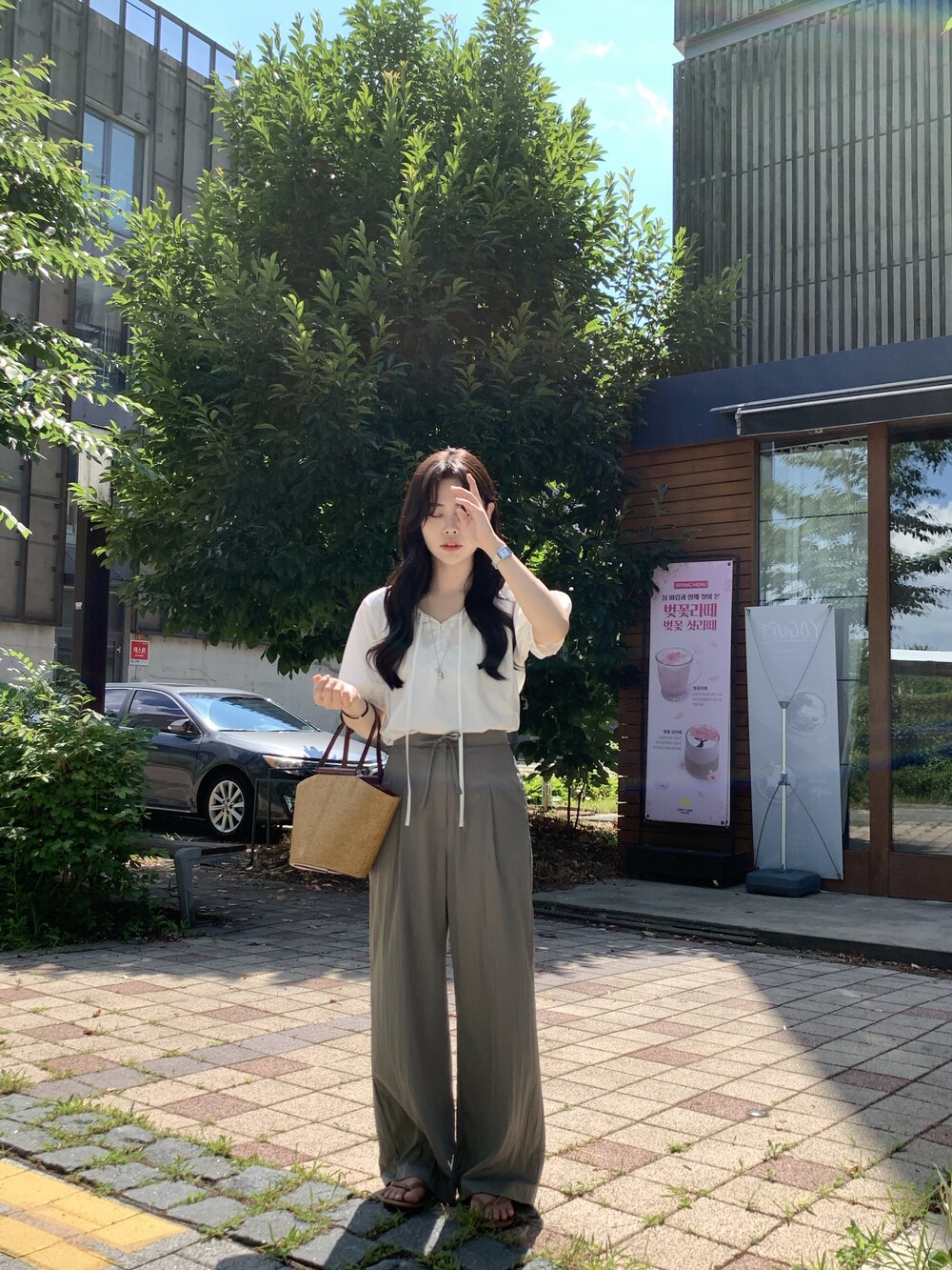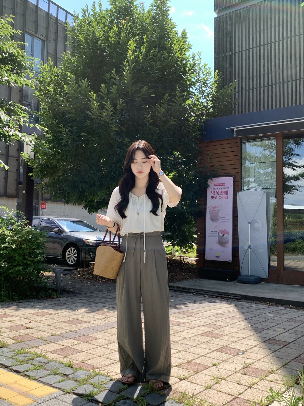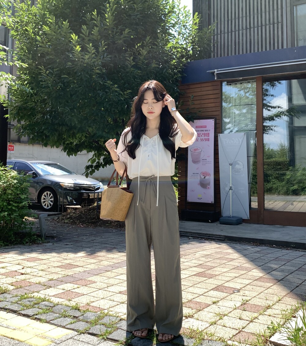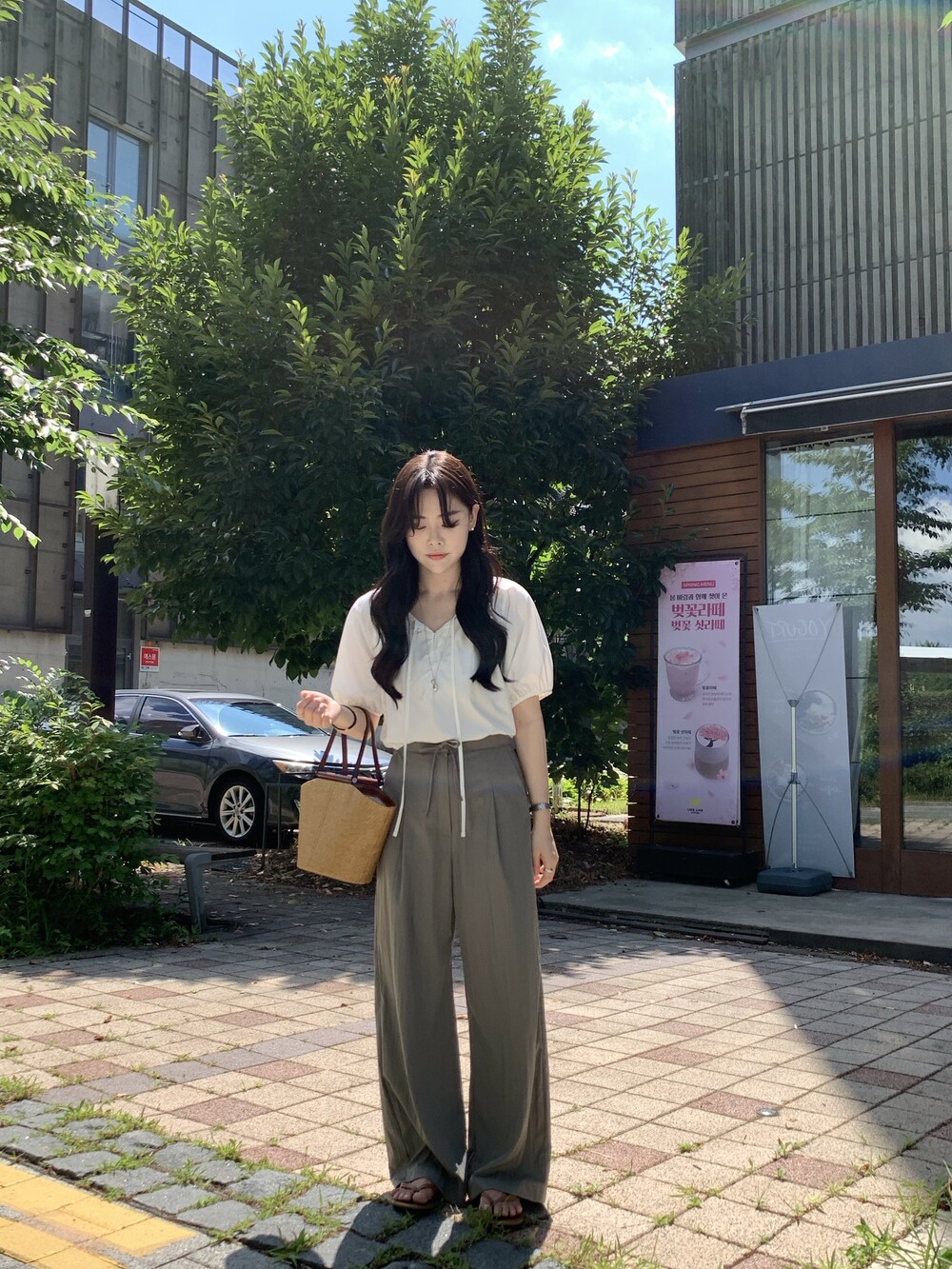 BOTTOM - NAMING RIBBON BANDING SLACKS(KHAKI)