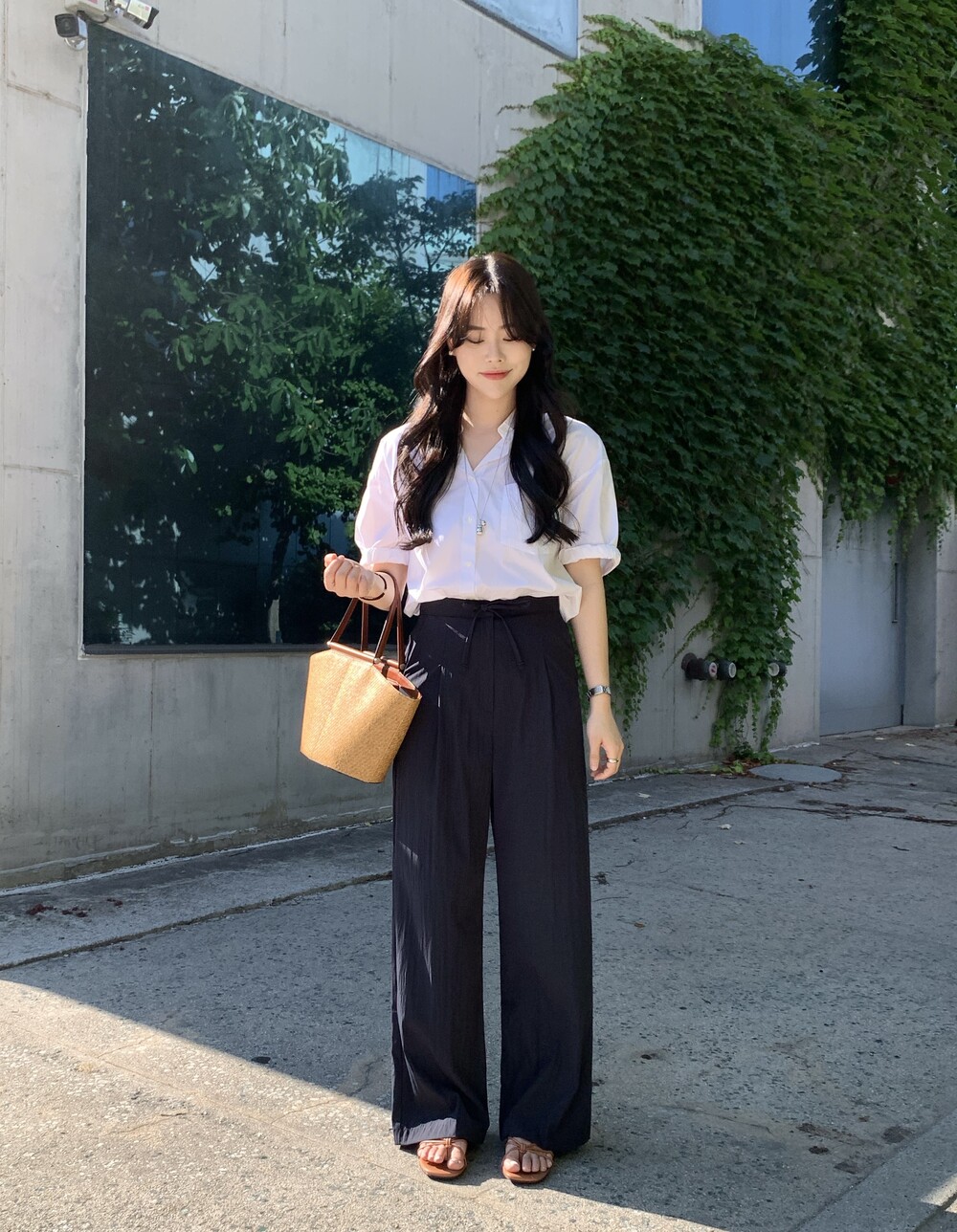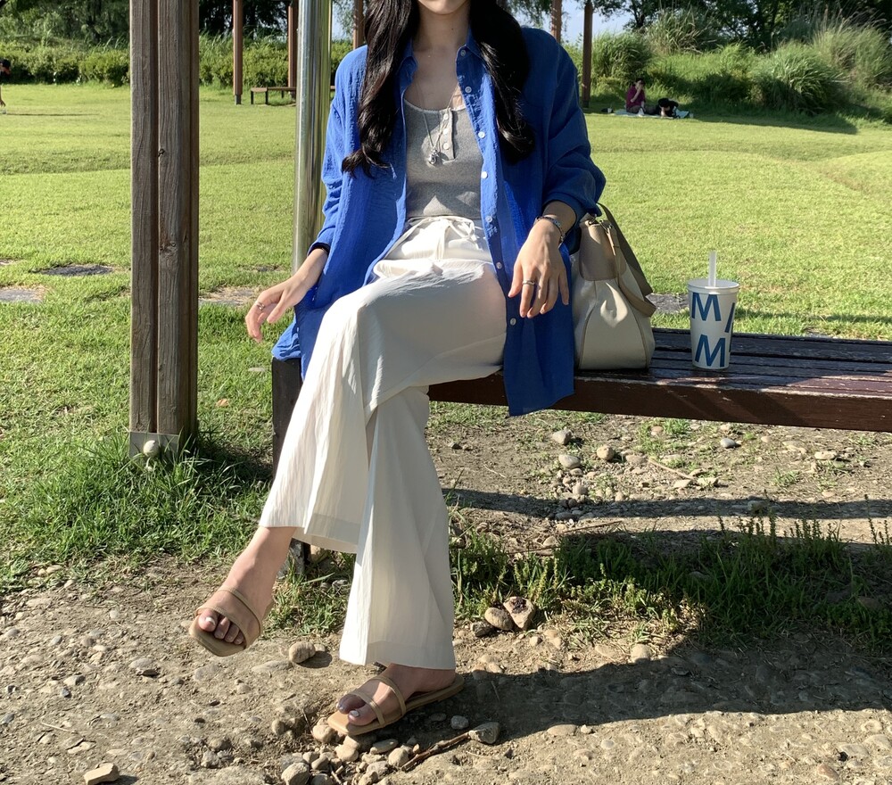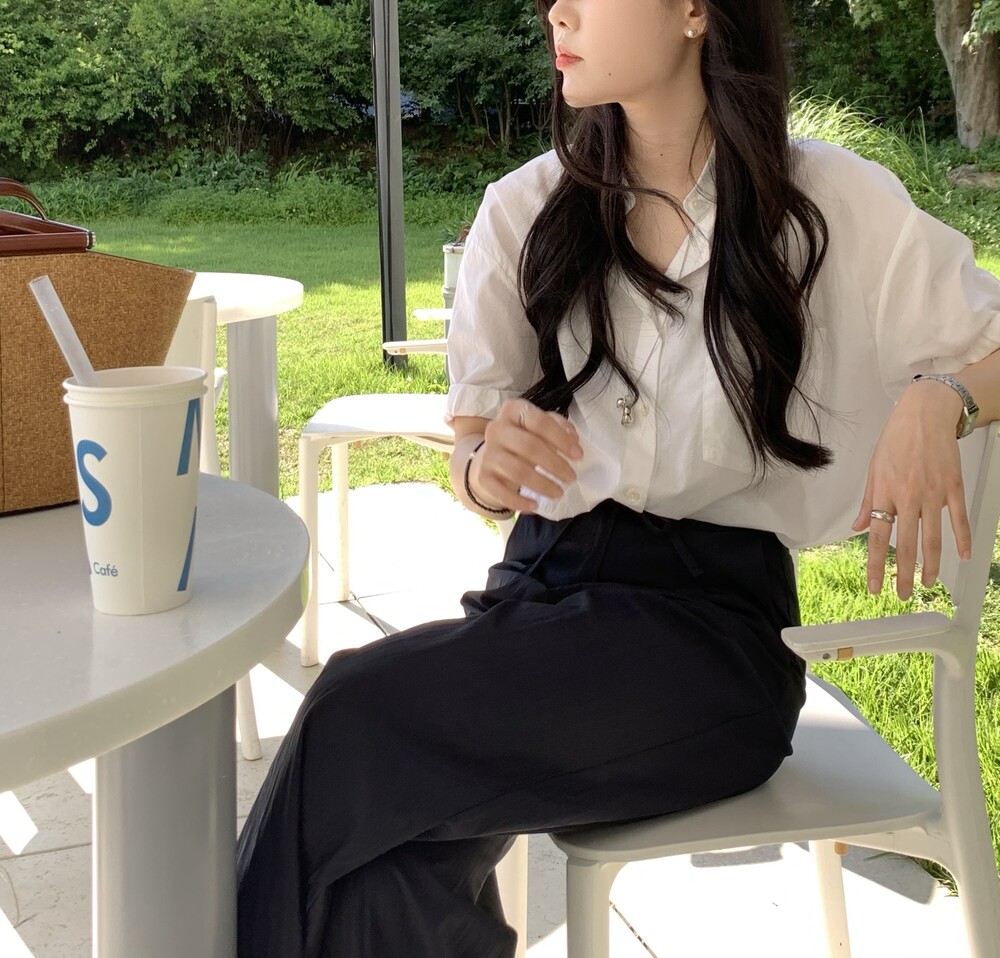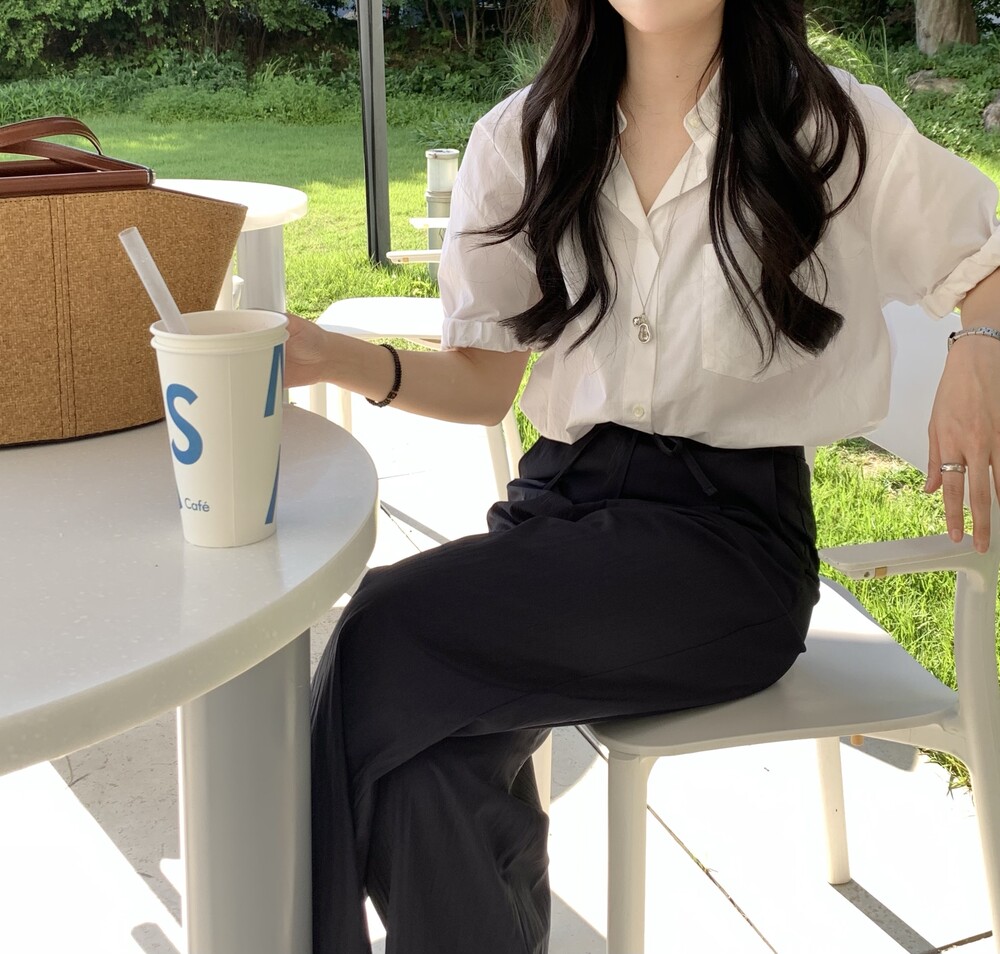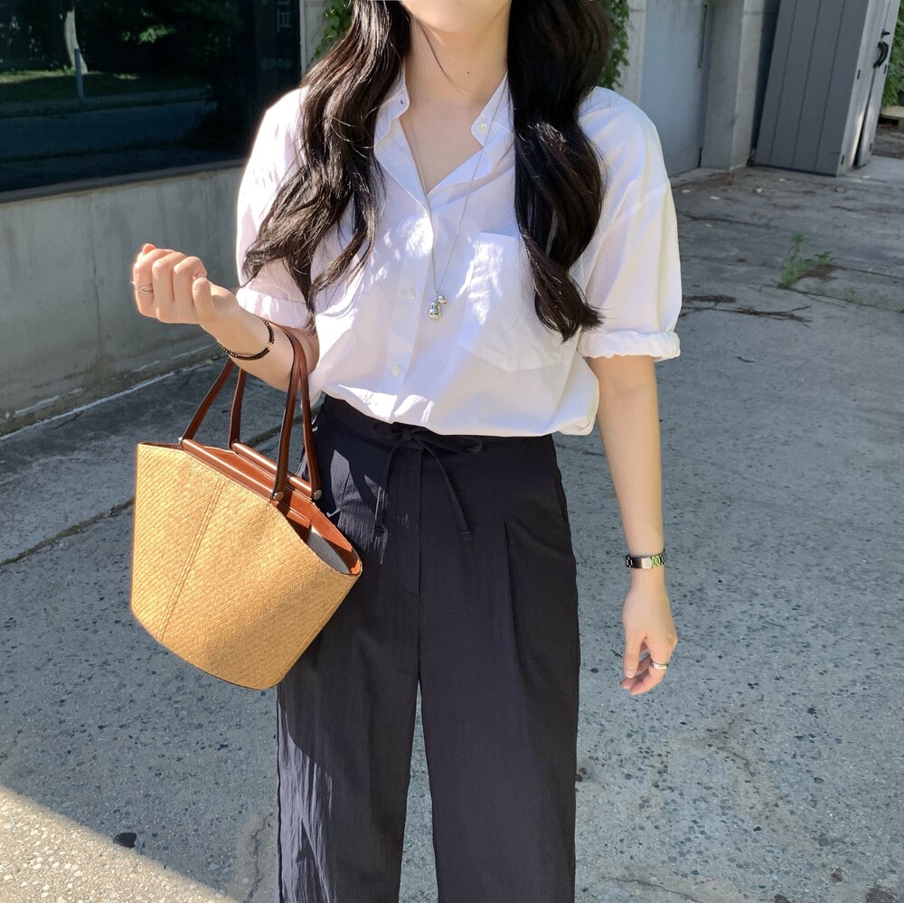 TOP - ROLL UP HALF COTTON SHIRTS(IVORY)