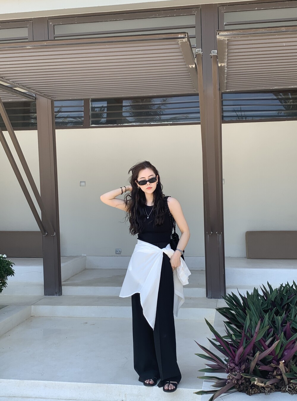 BOTTOM - MOMENT PINTUCK WIDE LONG SLACKS(BLACK/S)