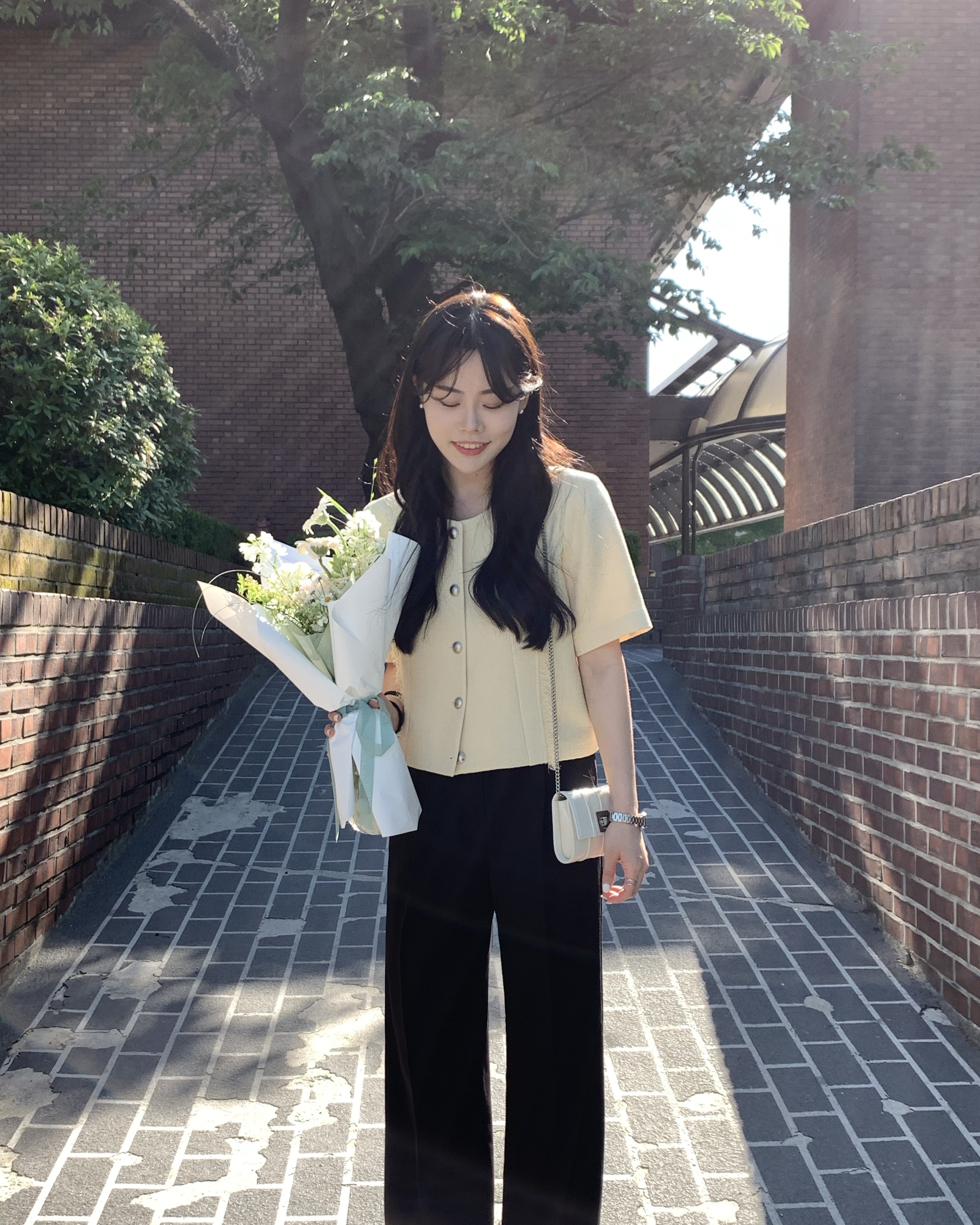 TOP - FRINGE TWEED HALF JACKET(YELLOW)