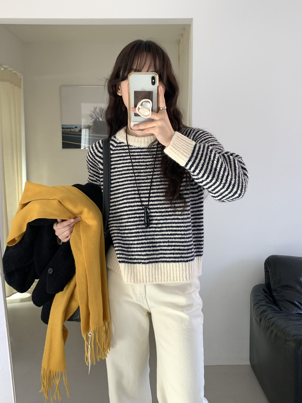 TOP - ALPACA STRIPE KNIT(IVORY)