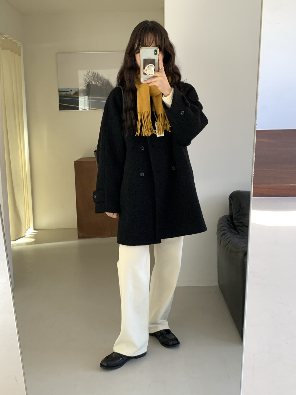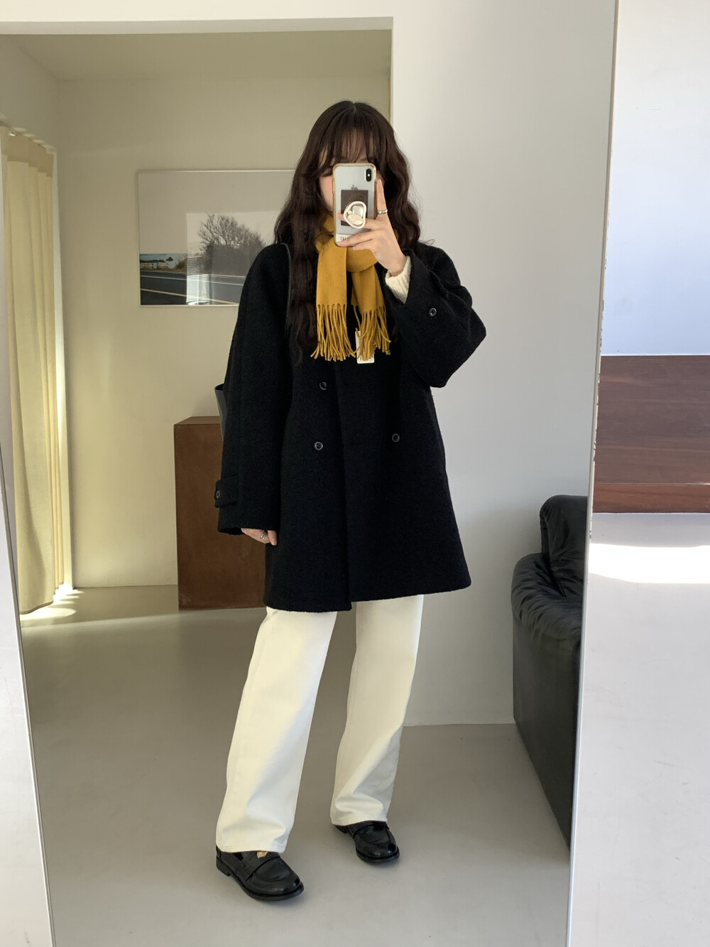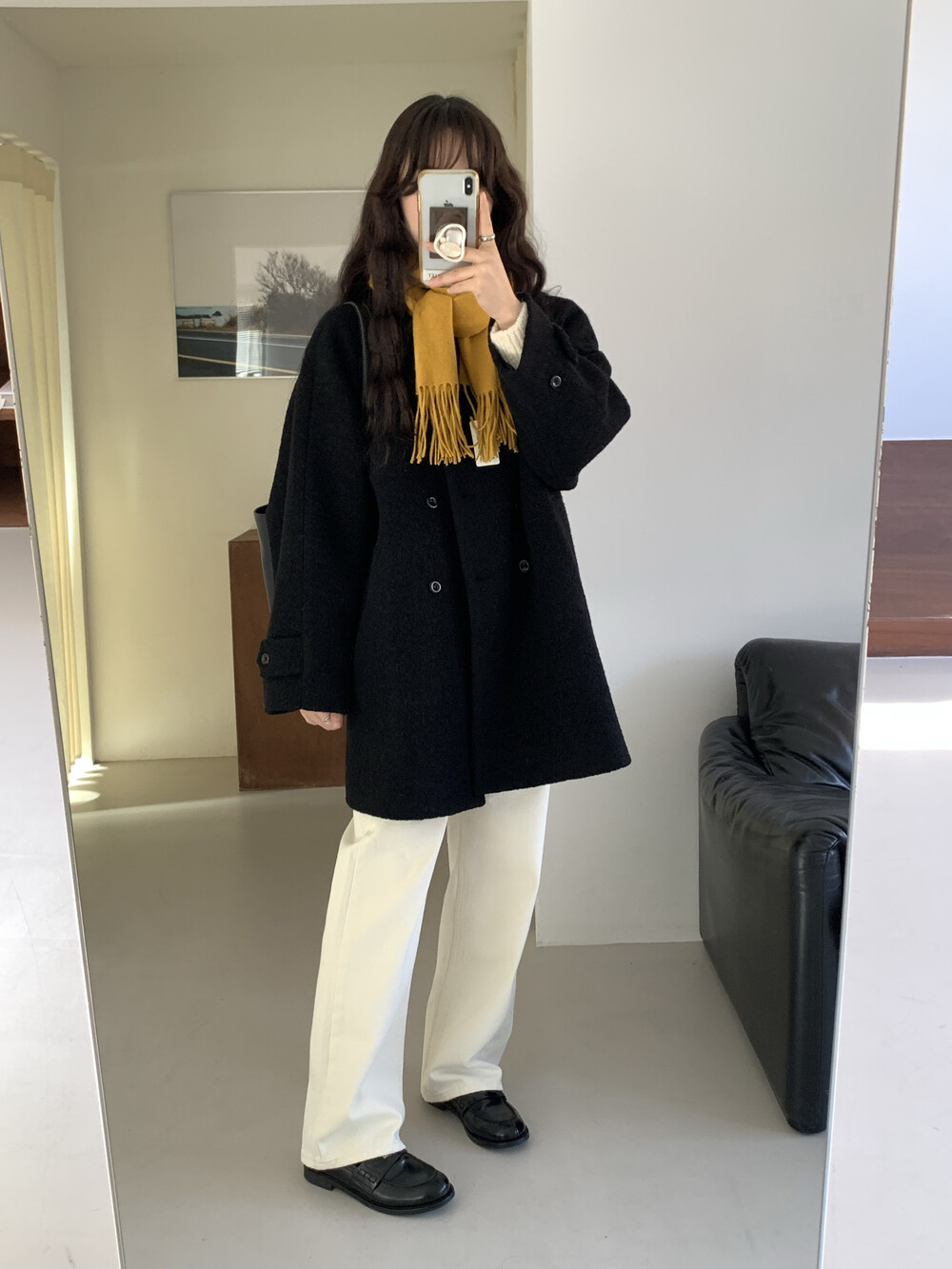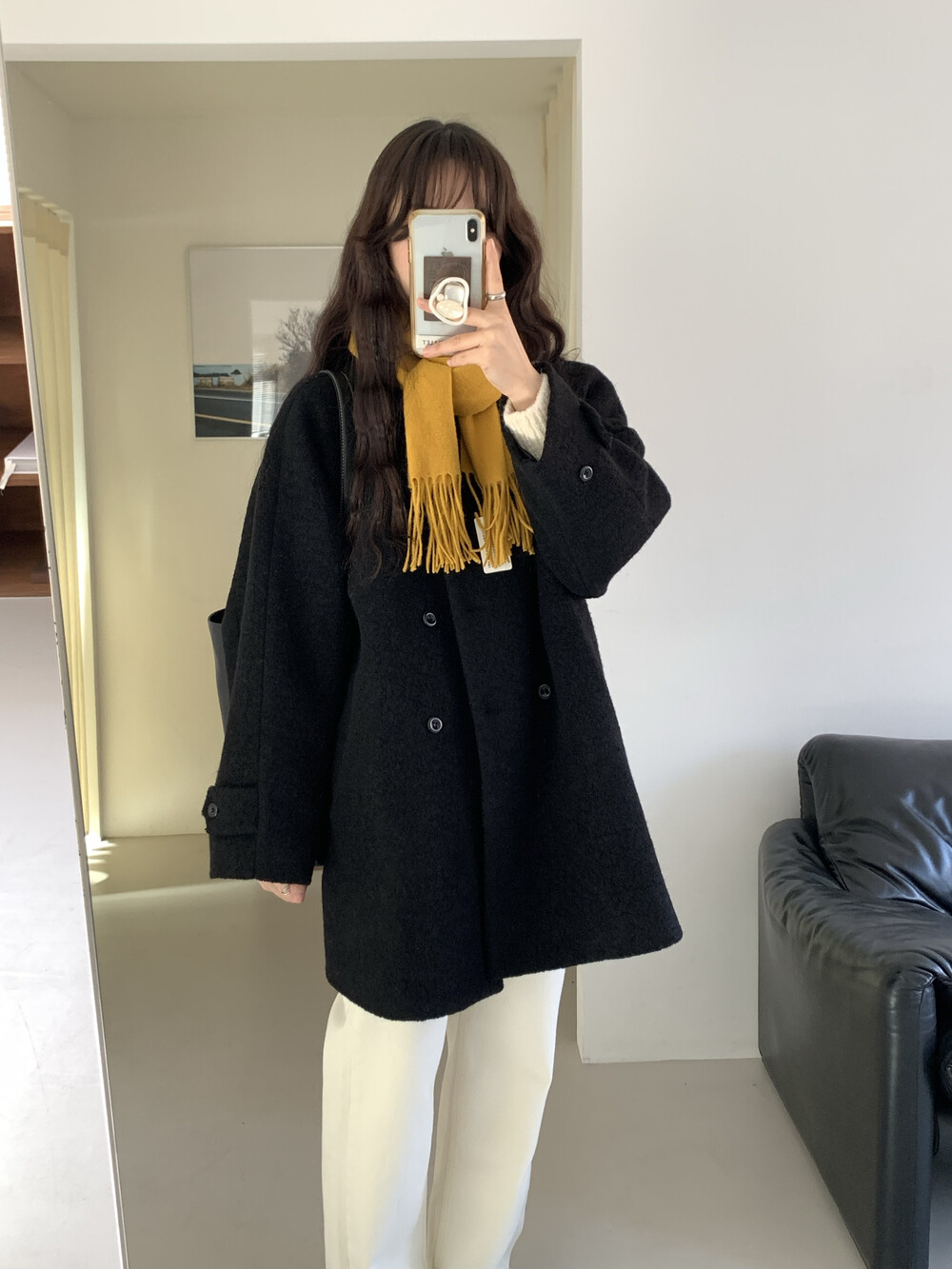 OUTER - VINTAGE DOUBLE BOUCLE HALF COAT(BLACK)