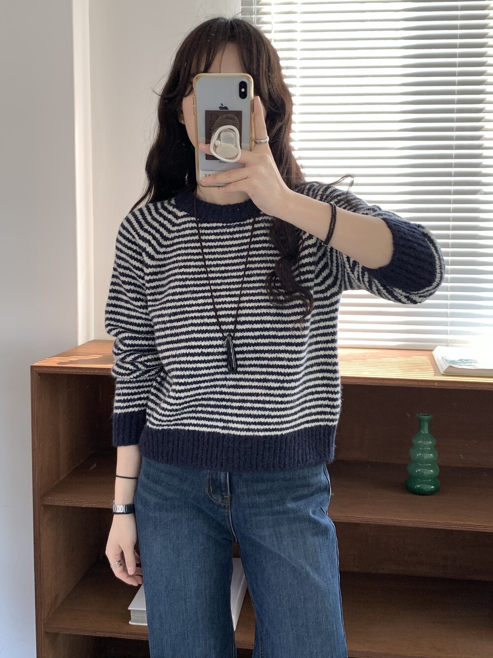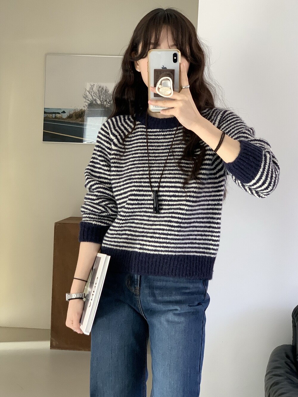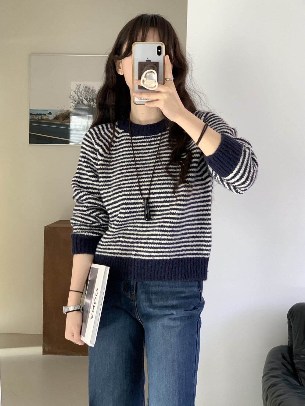 TOP - ALPACA STRIPE KNIT(NAVY)