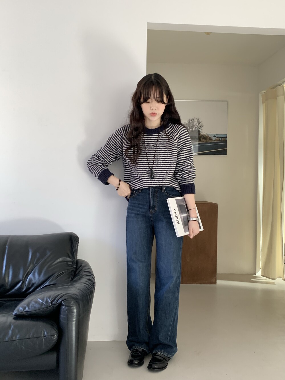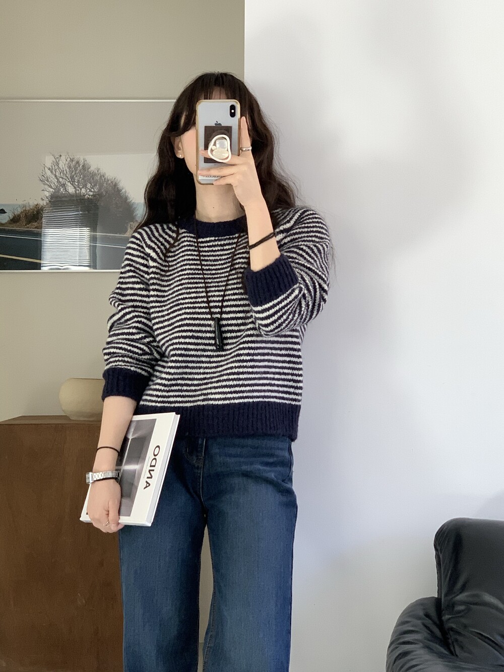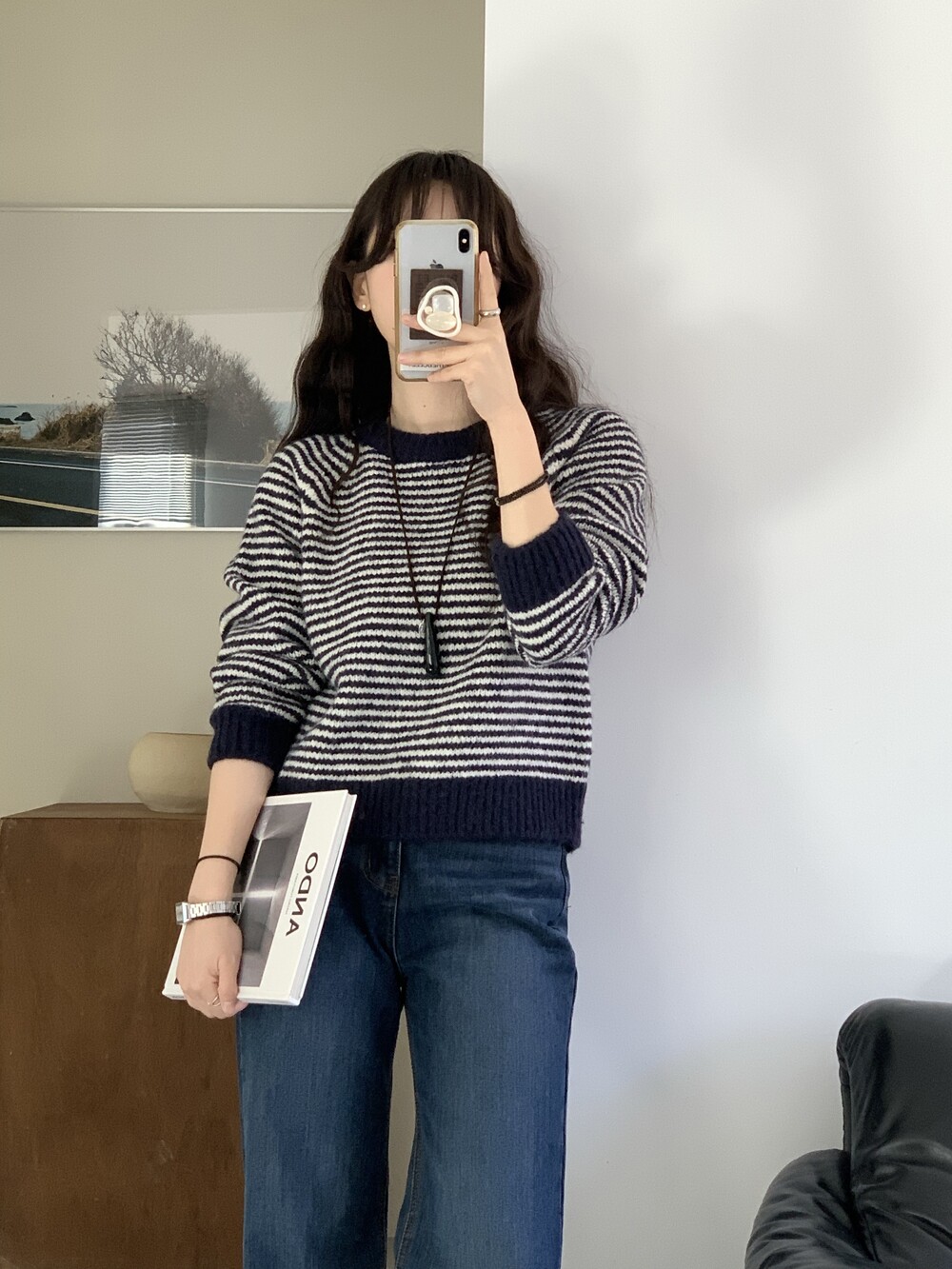 TOP - ALPACA STRIPE KNIT(NAVY)