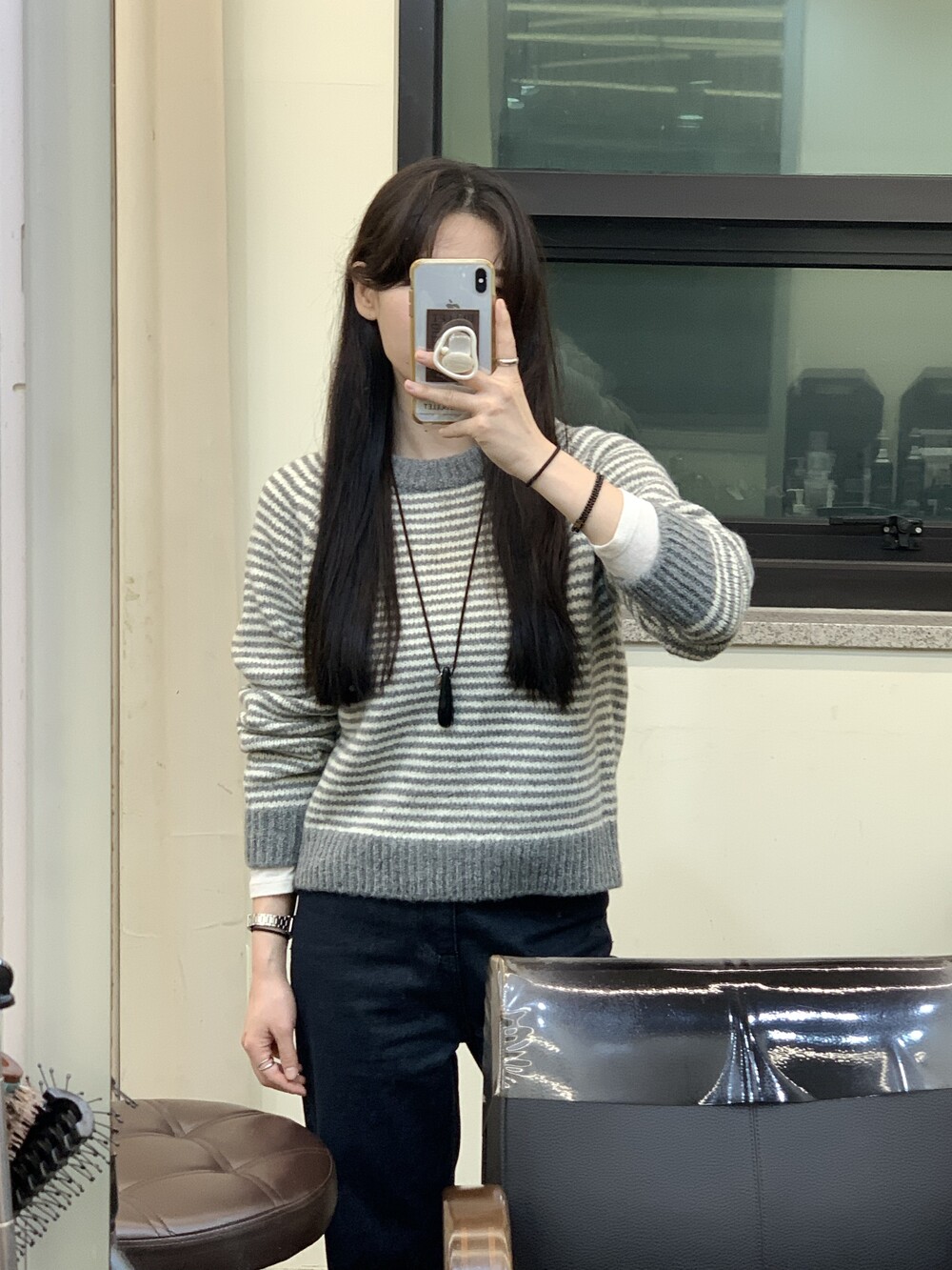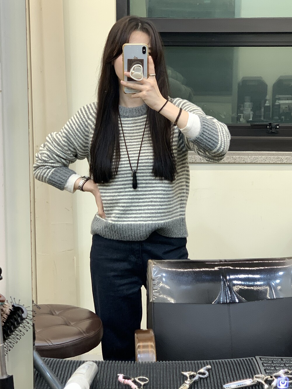 TOP - ALPACA STRIPE KNIT(GRAY)