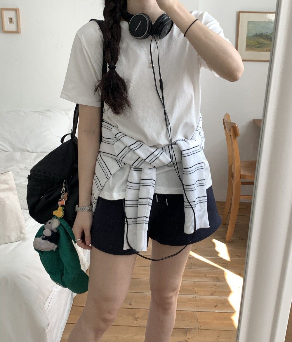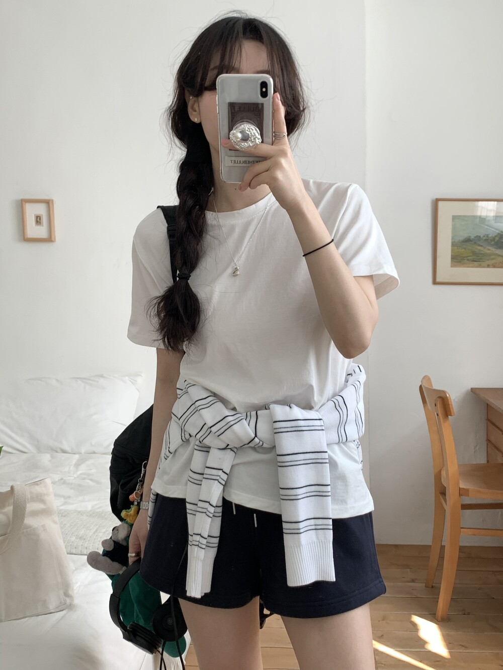 TOP - BASIC FRONT SLIT T-SHIRT(IVORY)