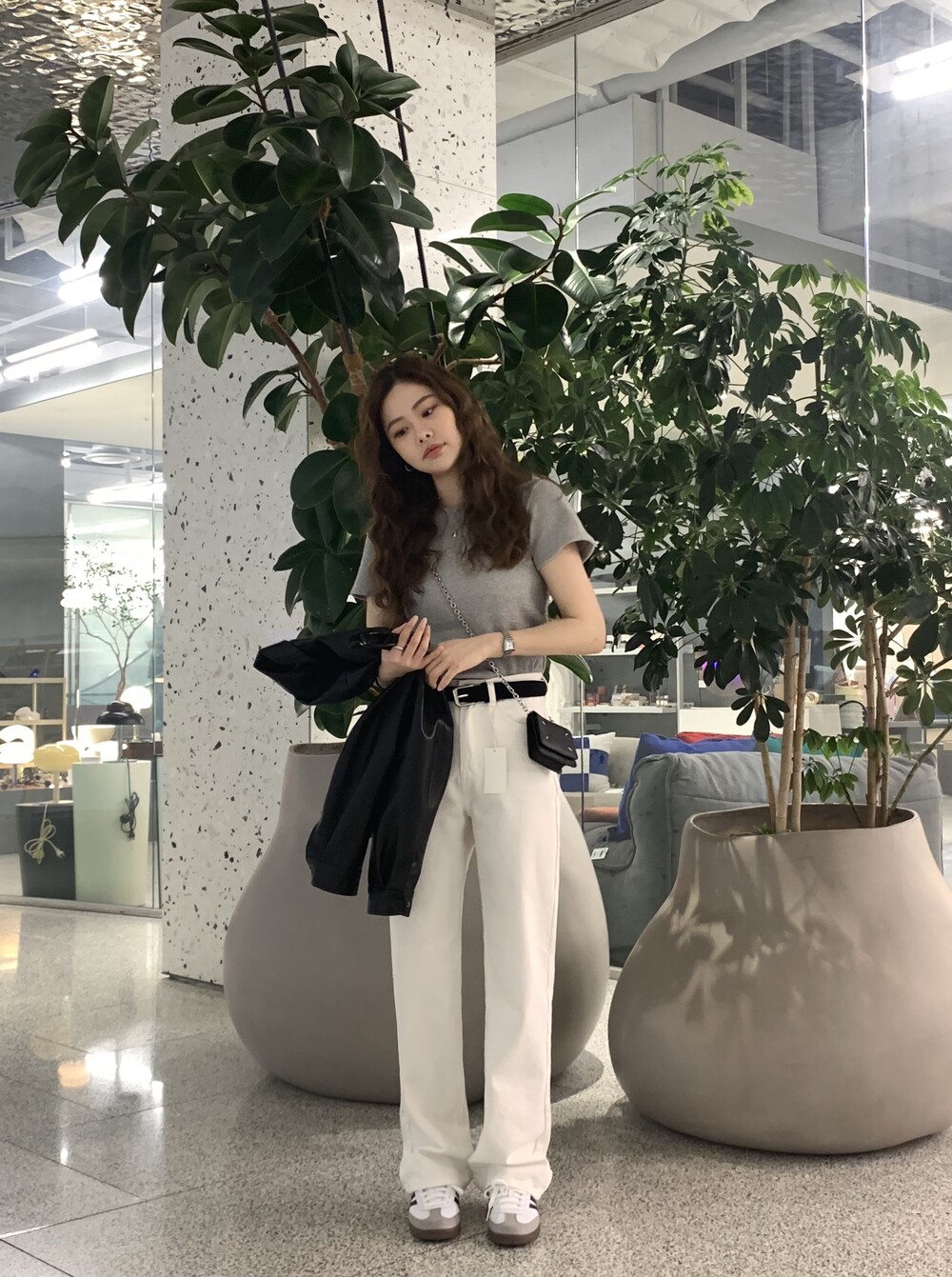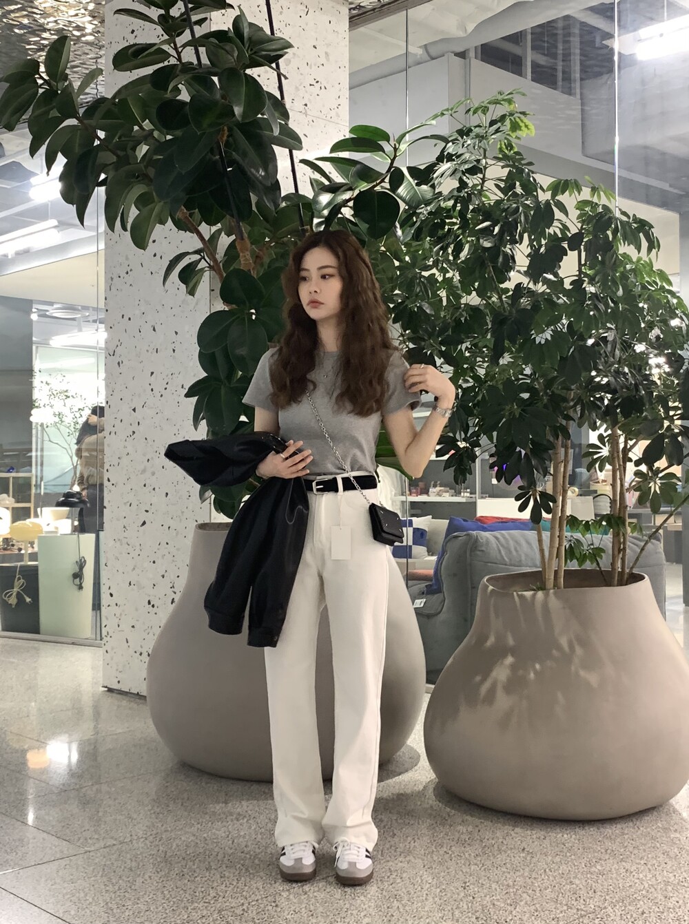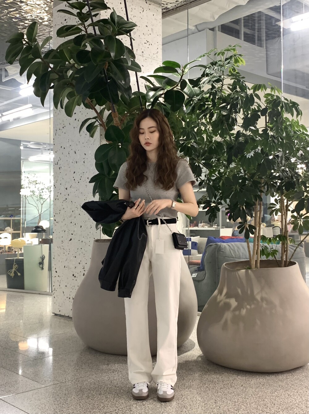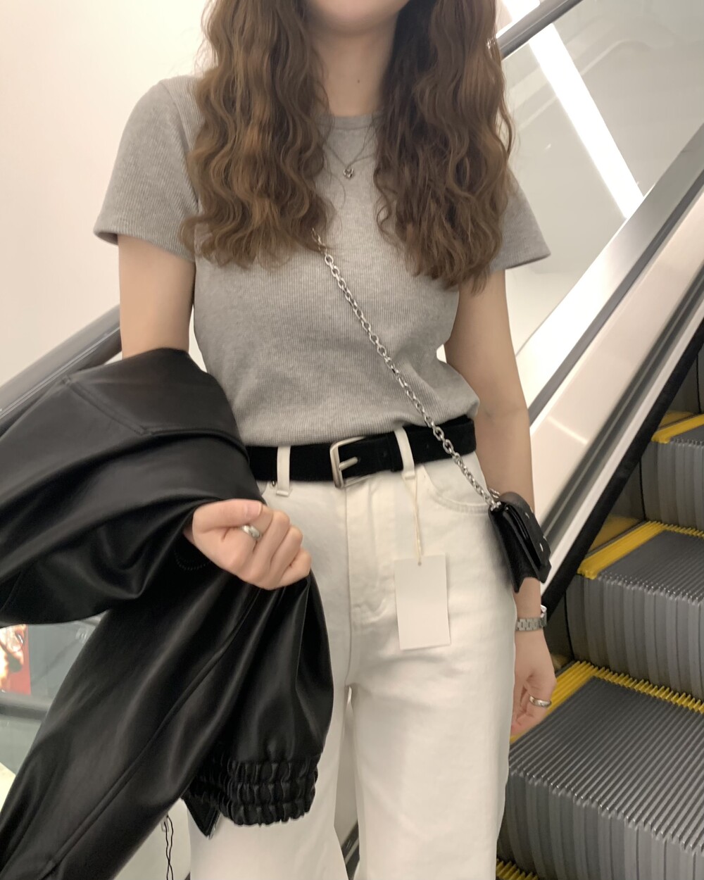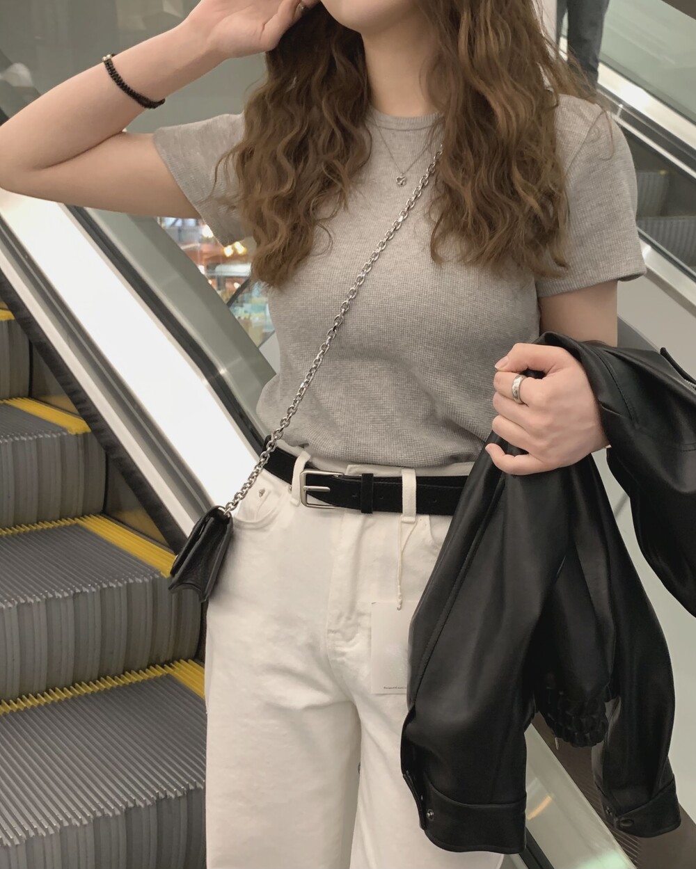 TOP - DAY SLIM WAFFLE T SHIRTS(GREY)