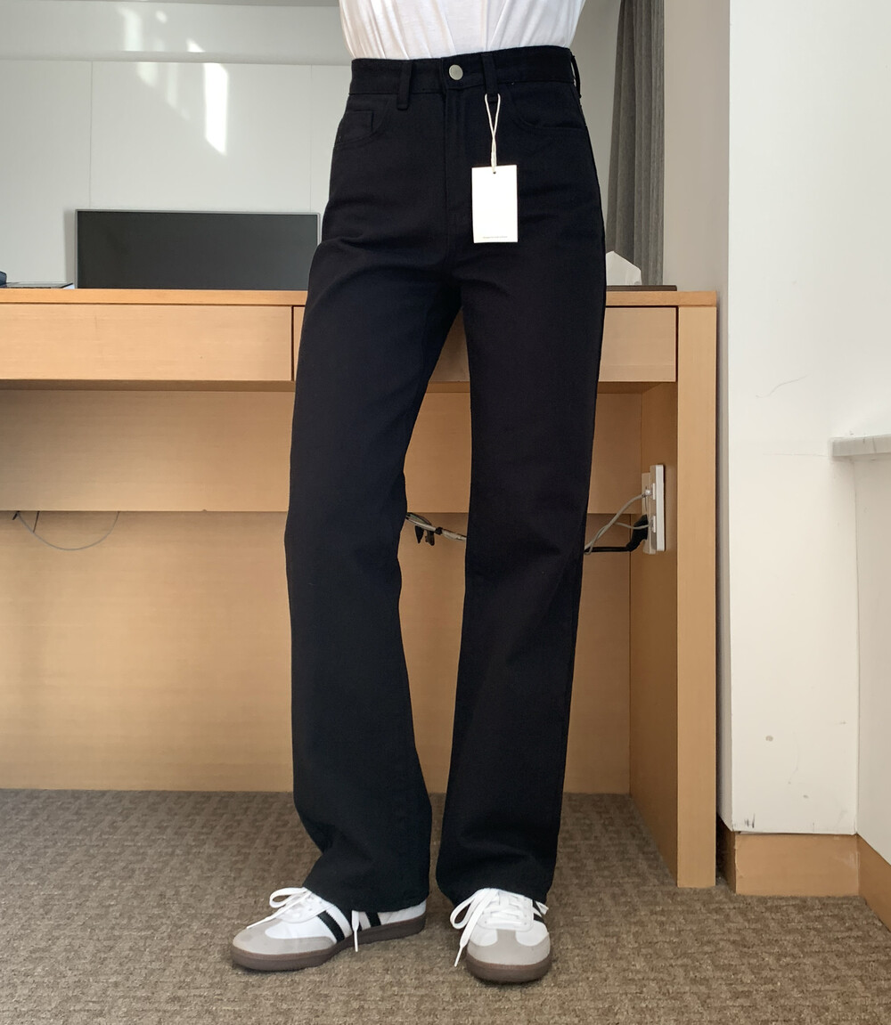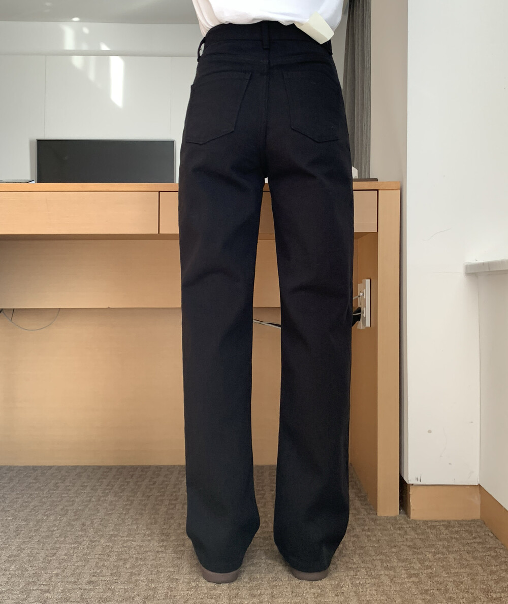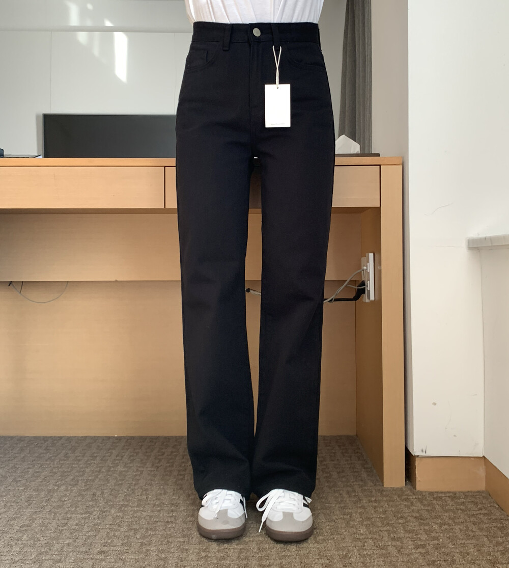 BOTTOM - REGULAR WIDE LONG COTTON PANTS(BLACK/S)