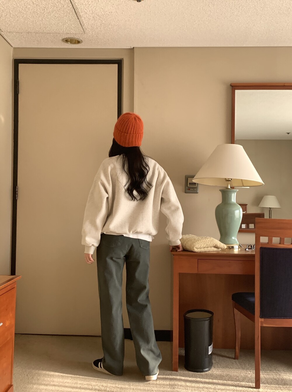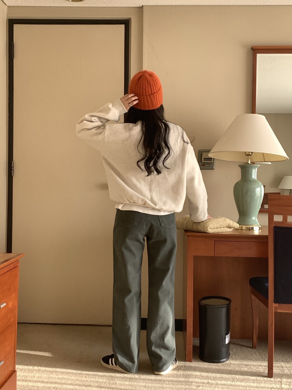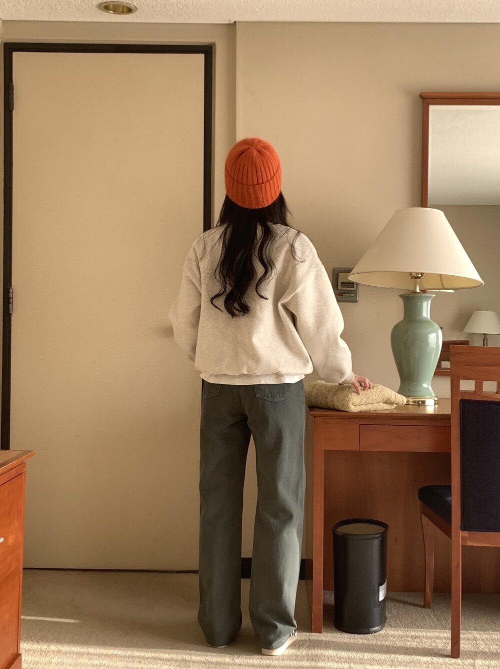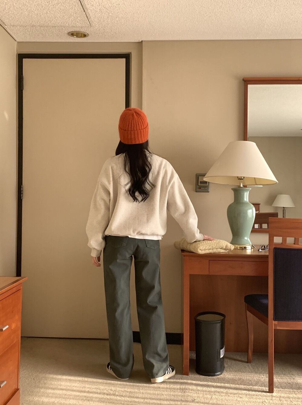 BOTTOM - VINTAGE DYEING KHAKI COTTON PANTS(KHAKI/S)