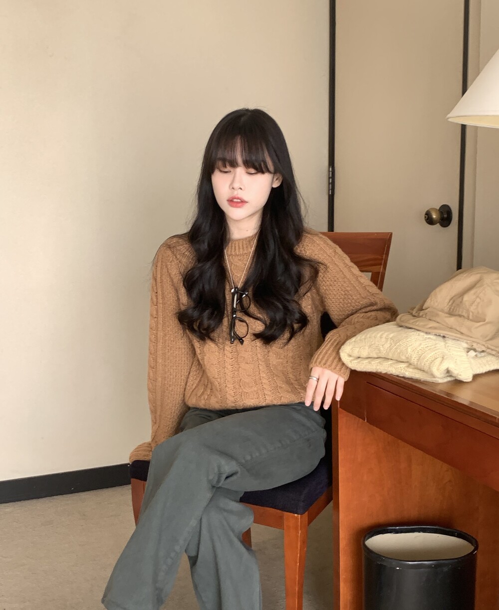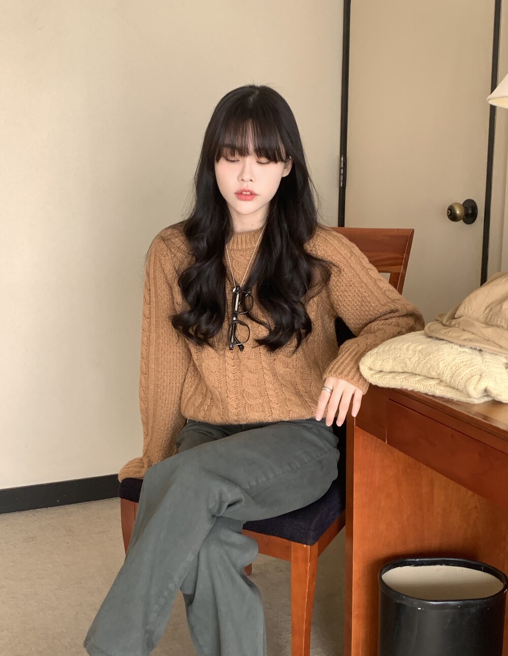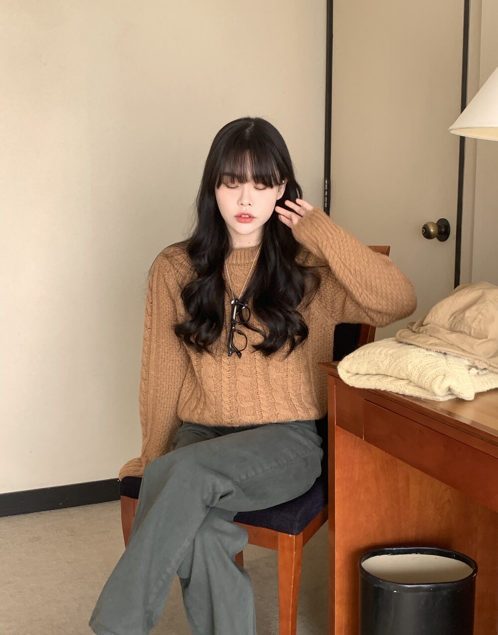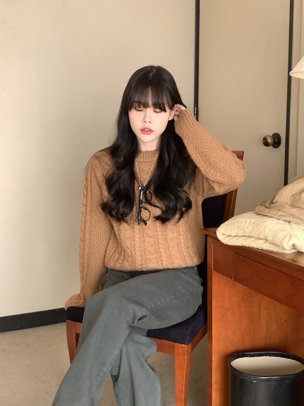 TOP - JULIE CABLE REGLAN WOOL KNIT(BROWN)