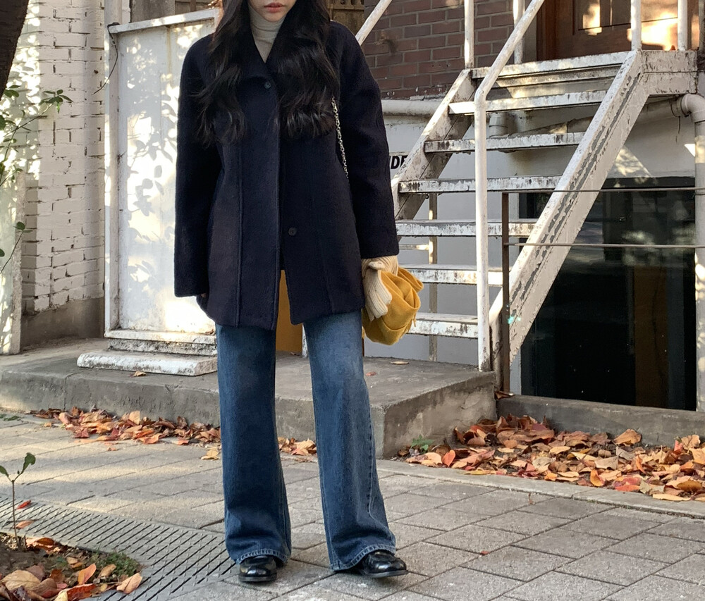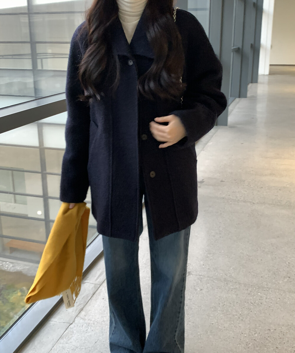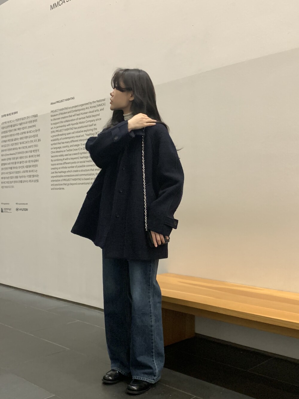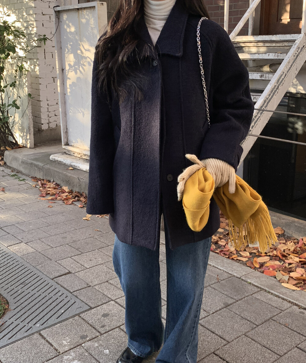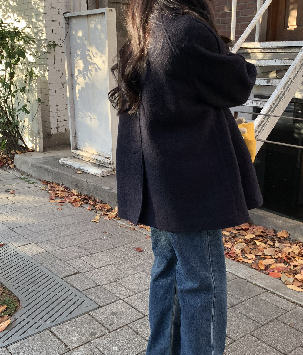 OUTER - WINTER HALF WOOL BOUCLE COAT(NAVY)