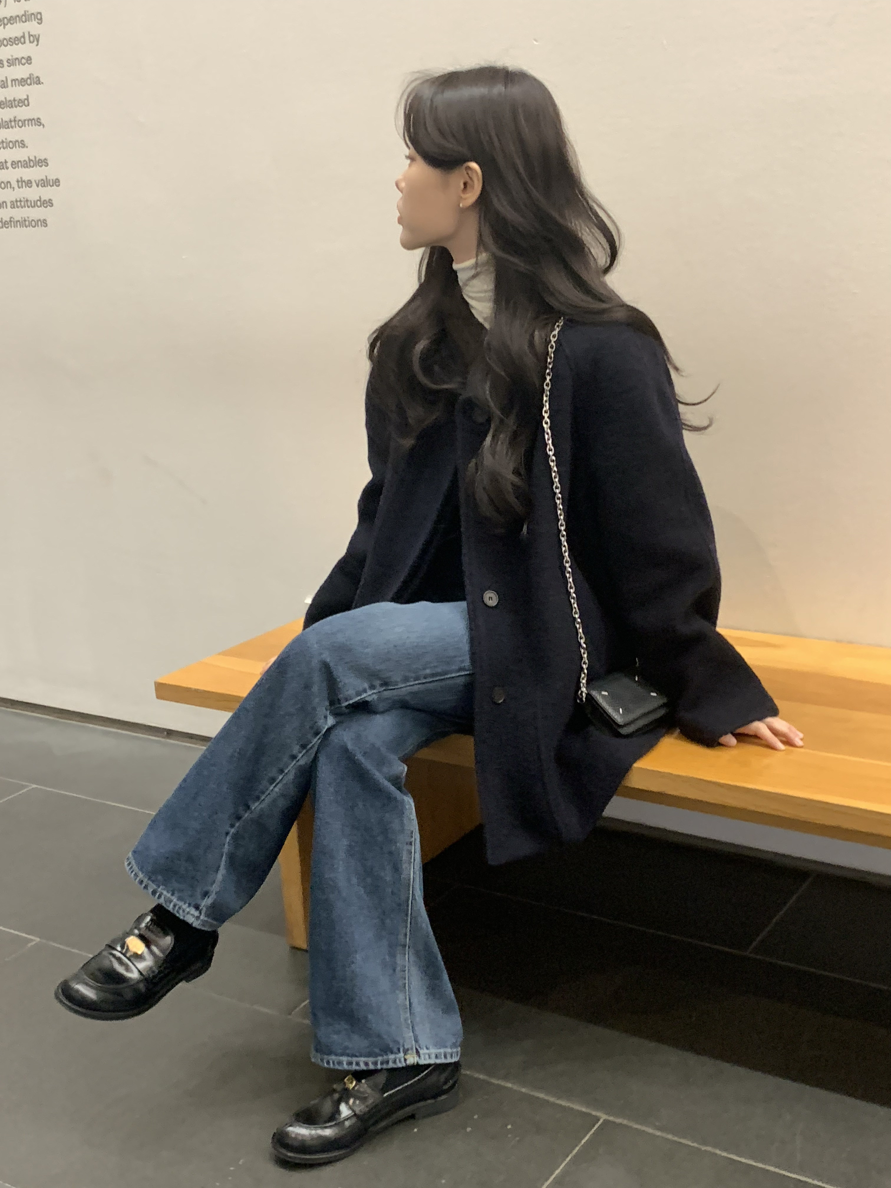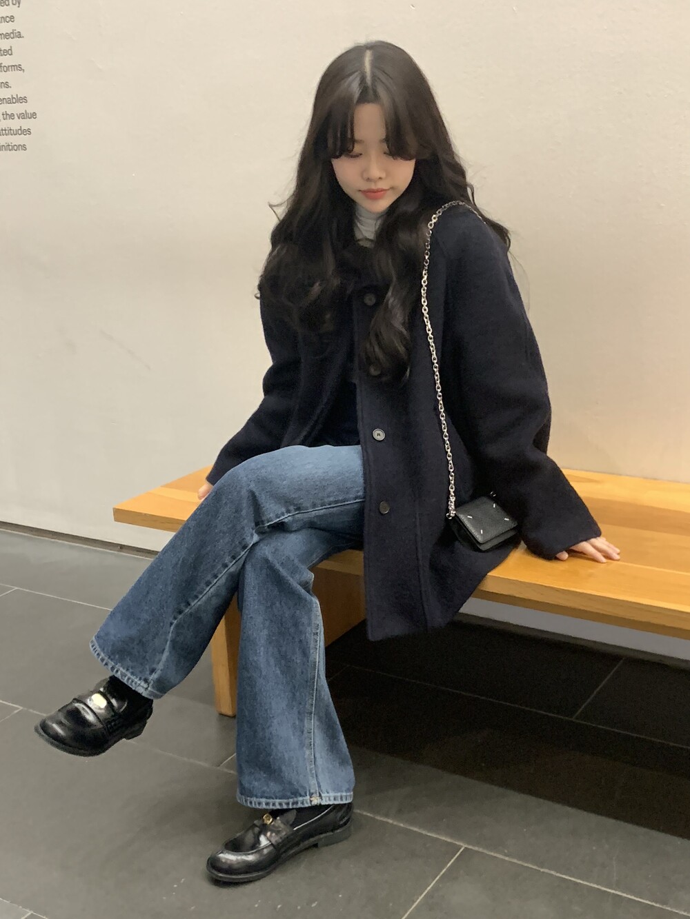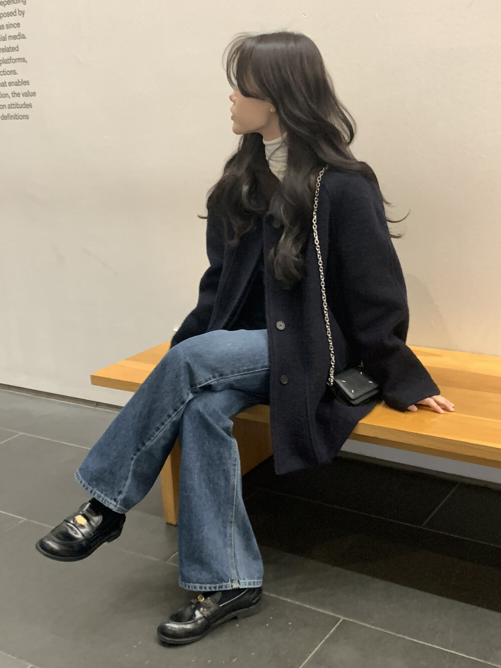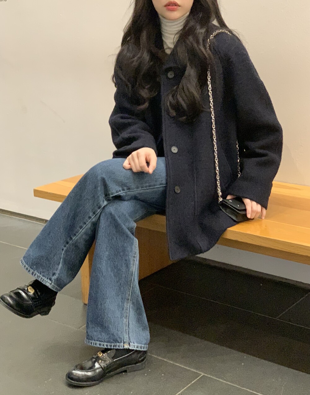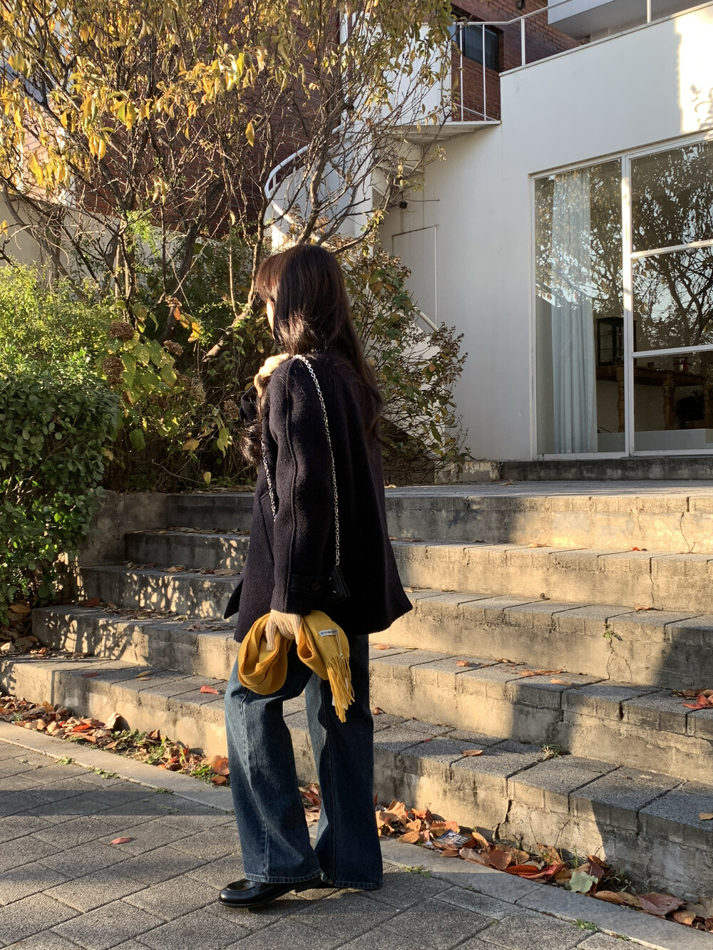 OUTER - WINTER HALF WOOL BOUCLE COAT(NAVY)
