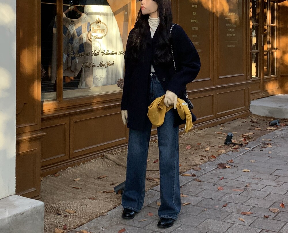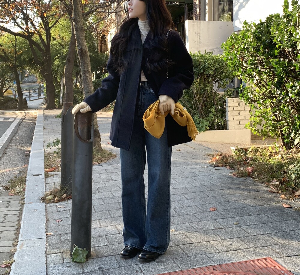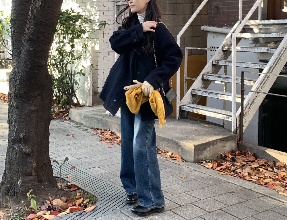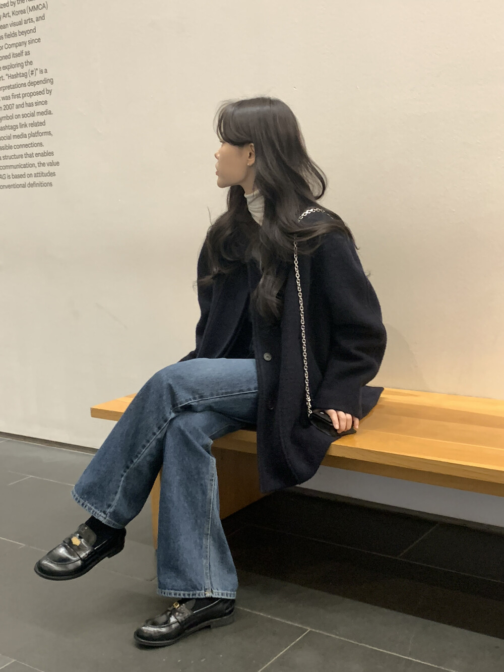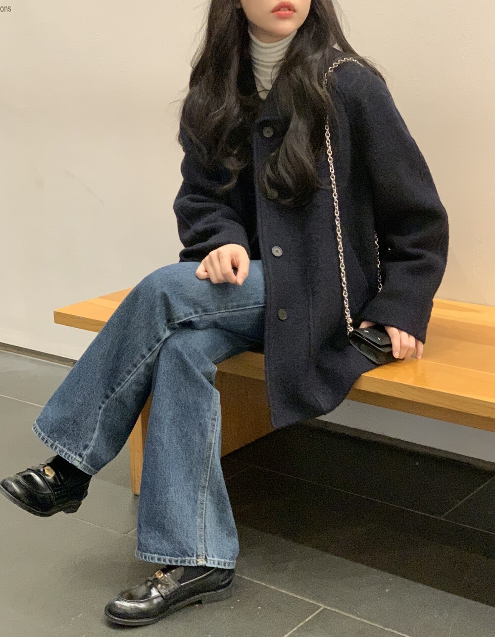 OUTER - WINTER HALF WOOL BOUCLE COAT(NAVY)
