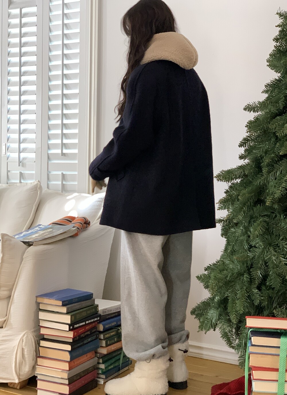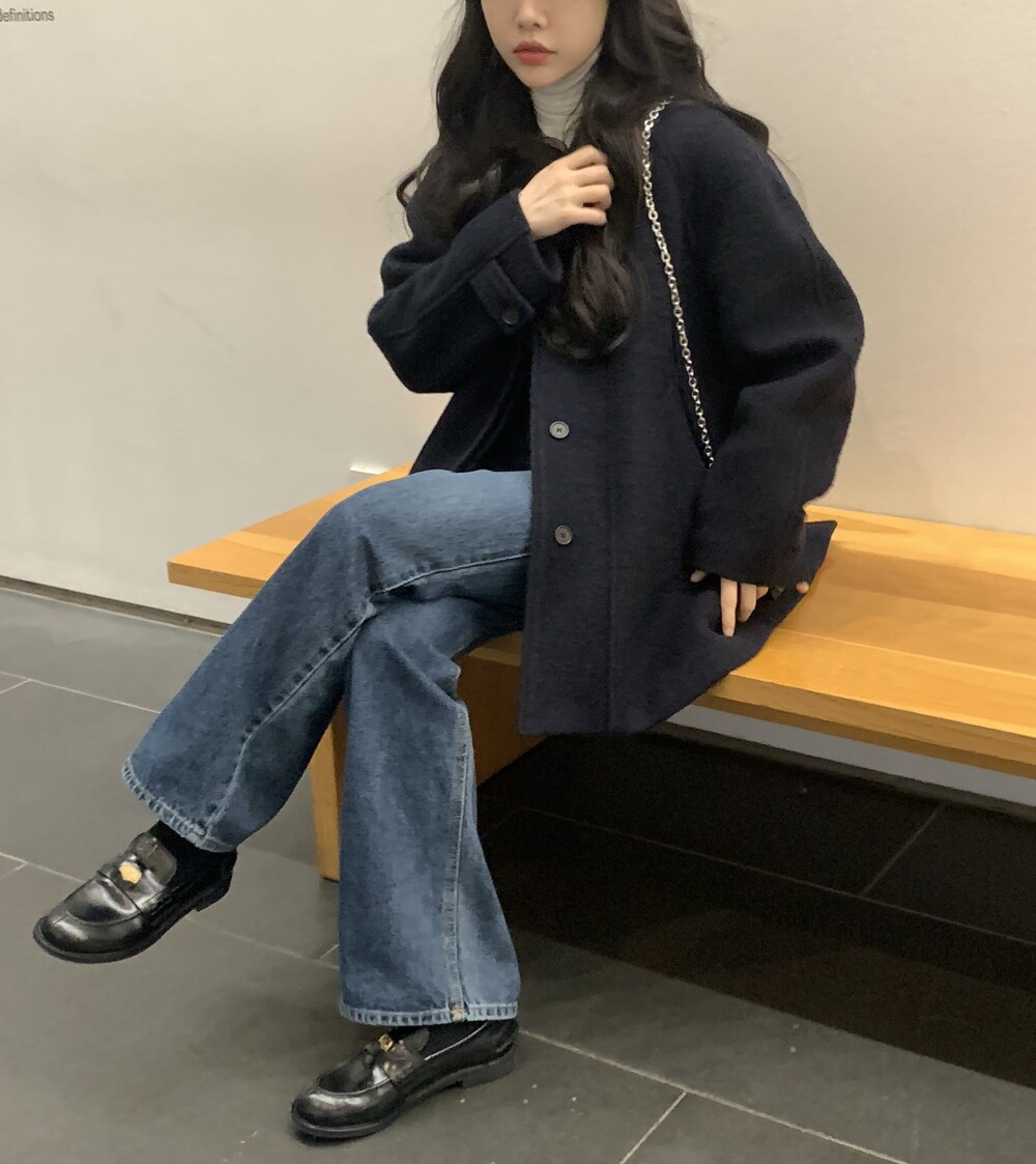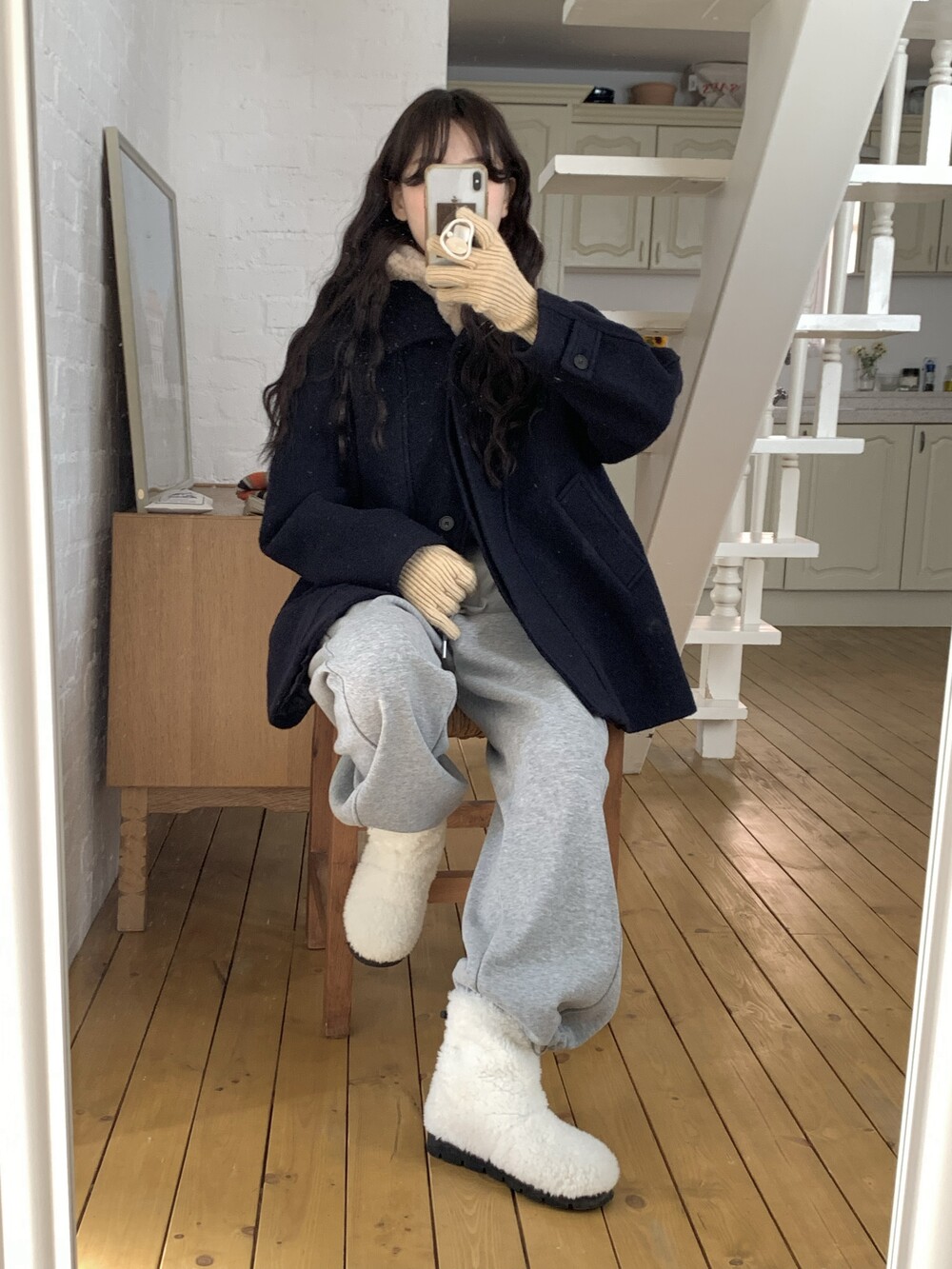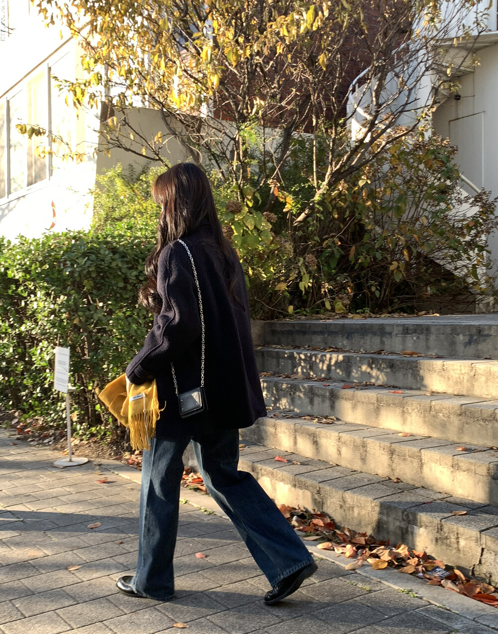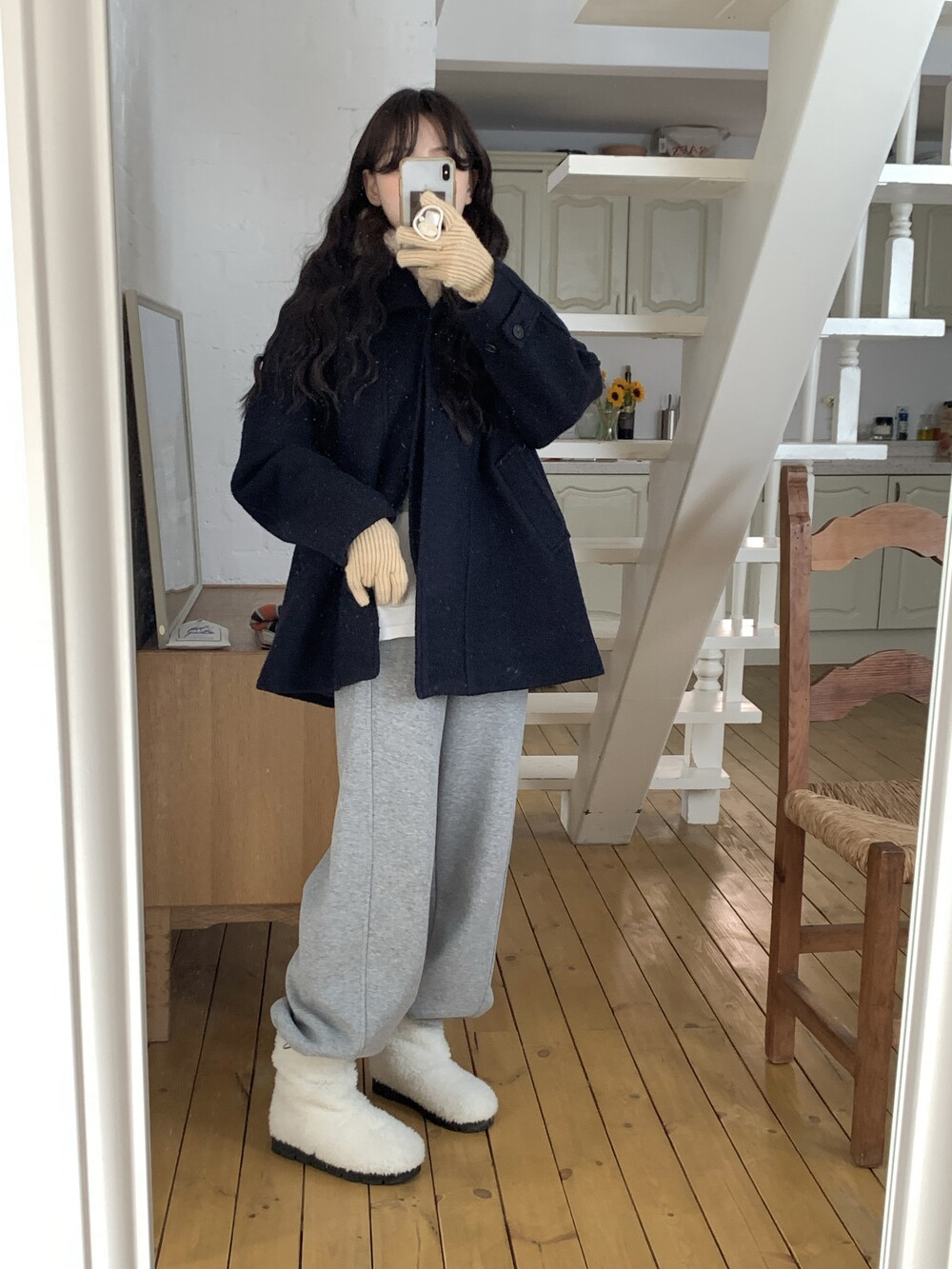 OUTER - WINTER HALF WOOL BOUCLE COAT(NAVY)