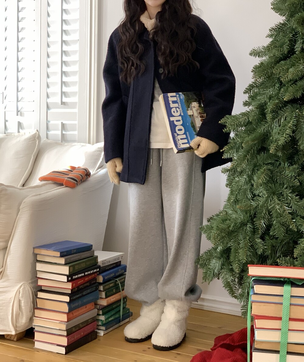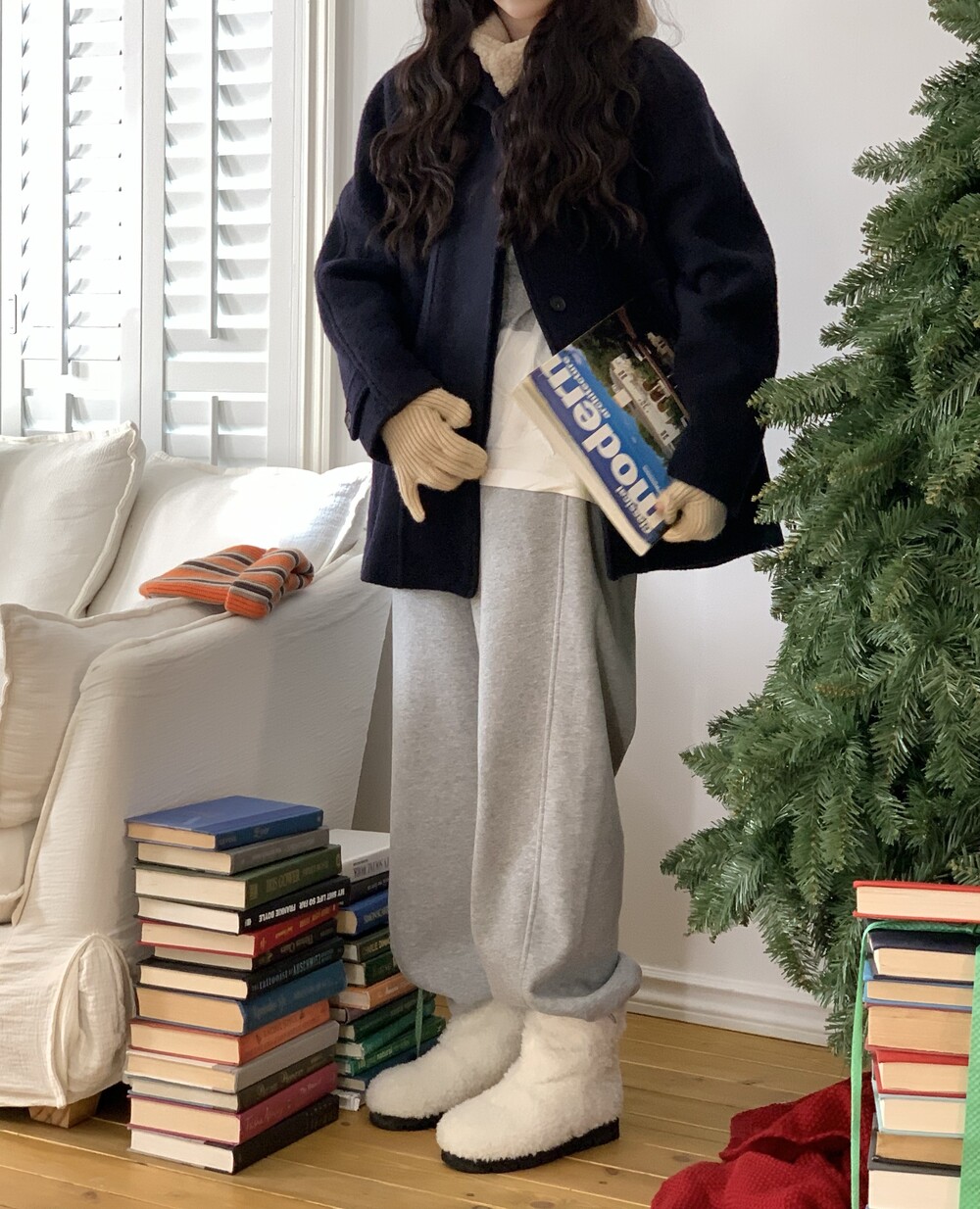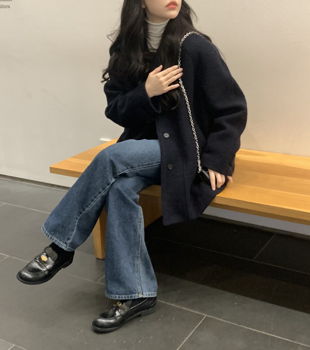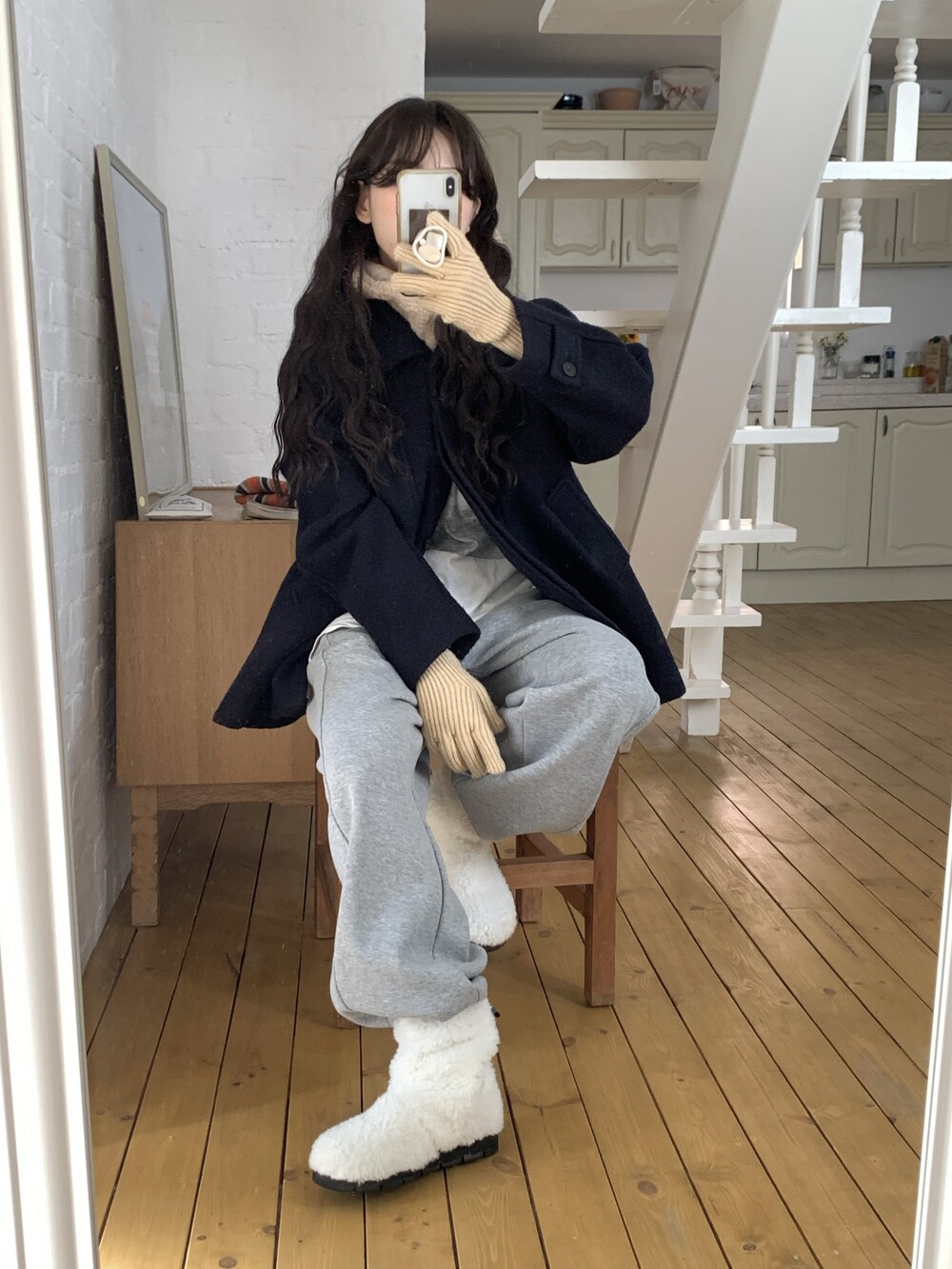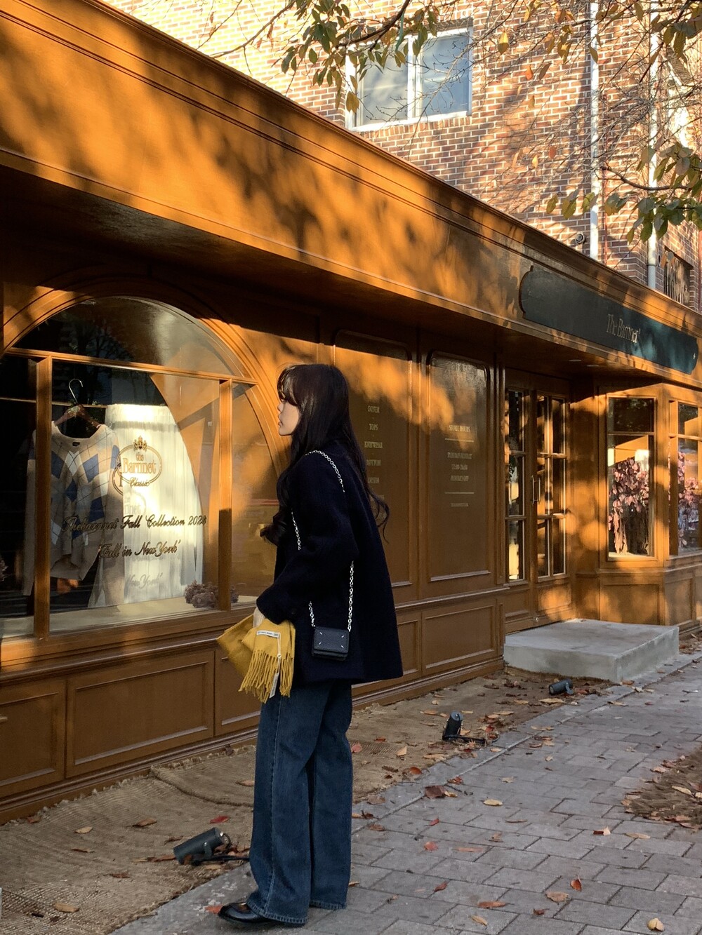 OUTER - WINTER HALF WOOL BOUCLE COAT(NAVY)