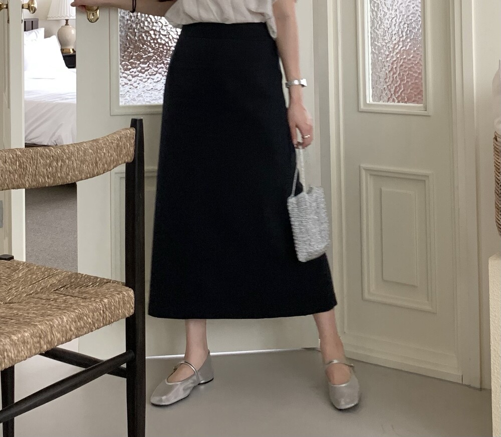 BOTTOM - COZY LINEN SLIT LONG SKIRTS(NAVY/S)