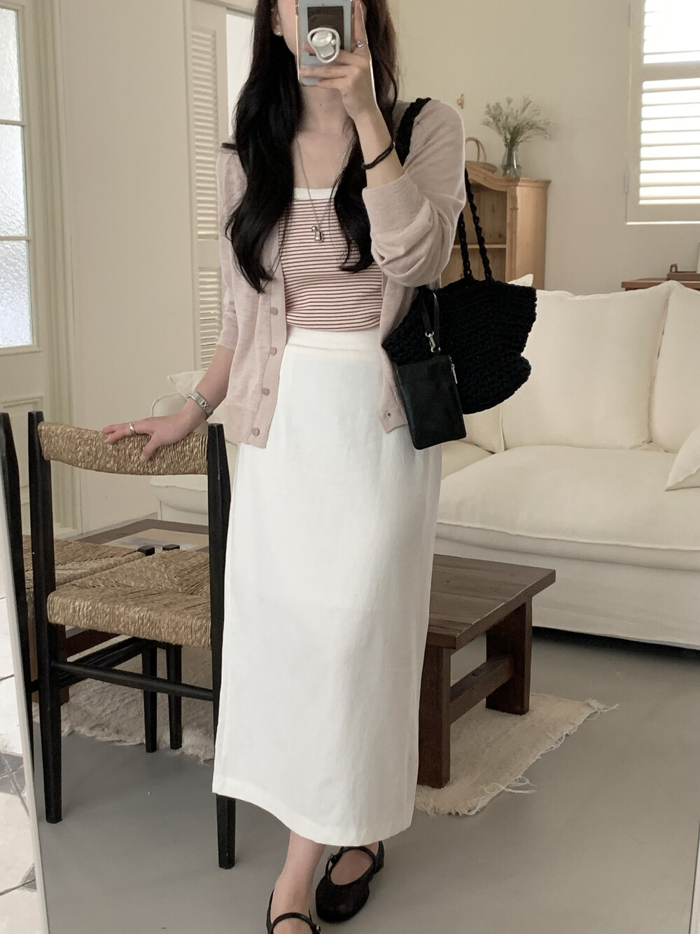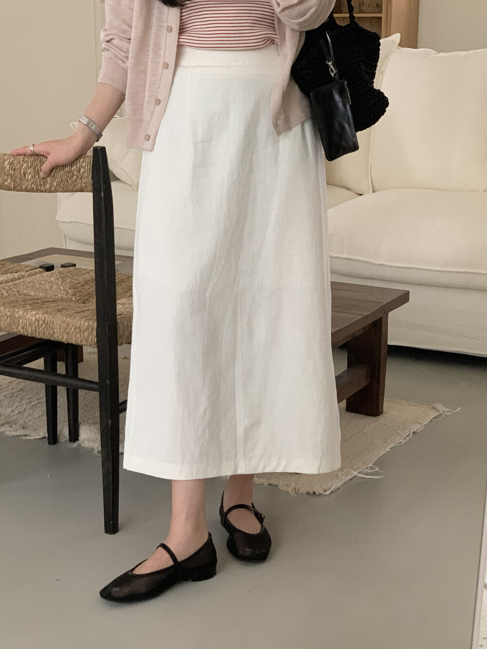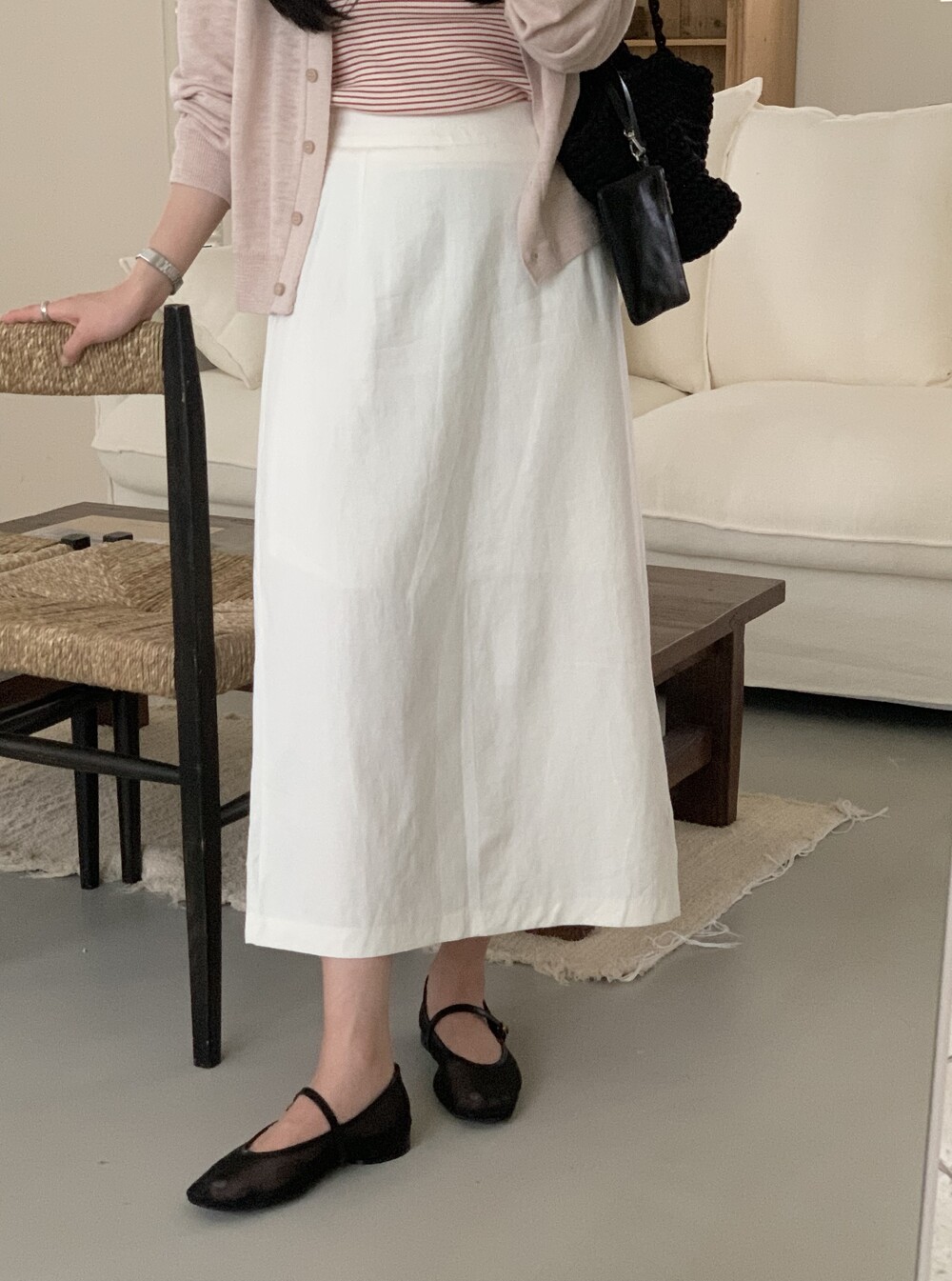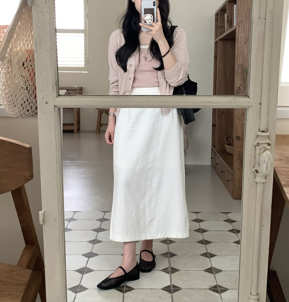 BOTTOM - COZY LINEN SLIT LONG SKIRTS(IVORY)