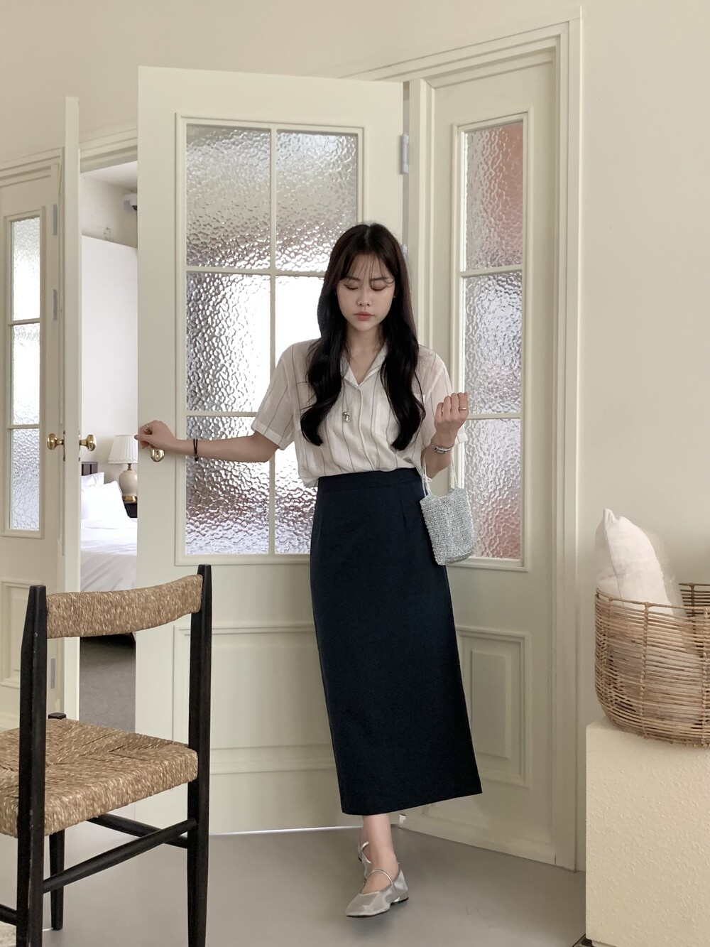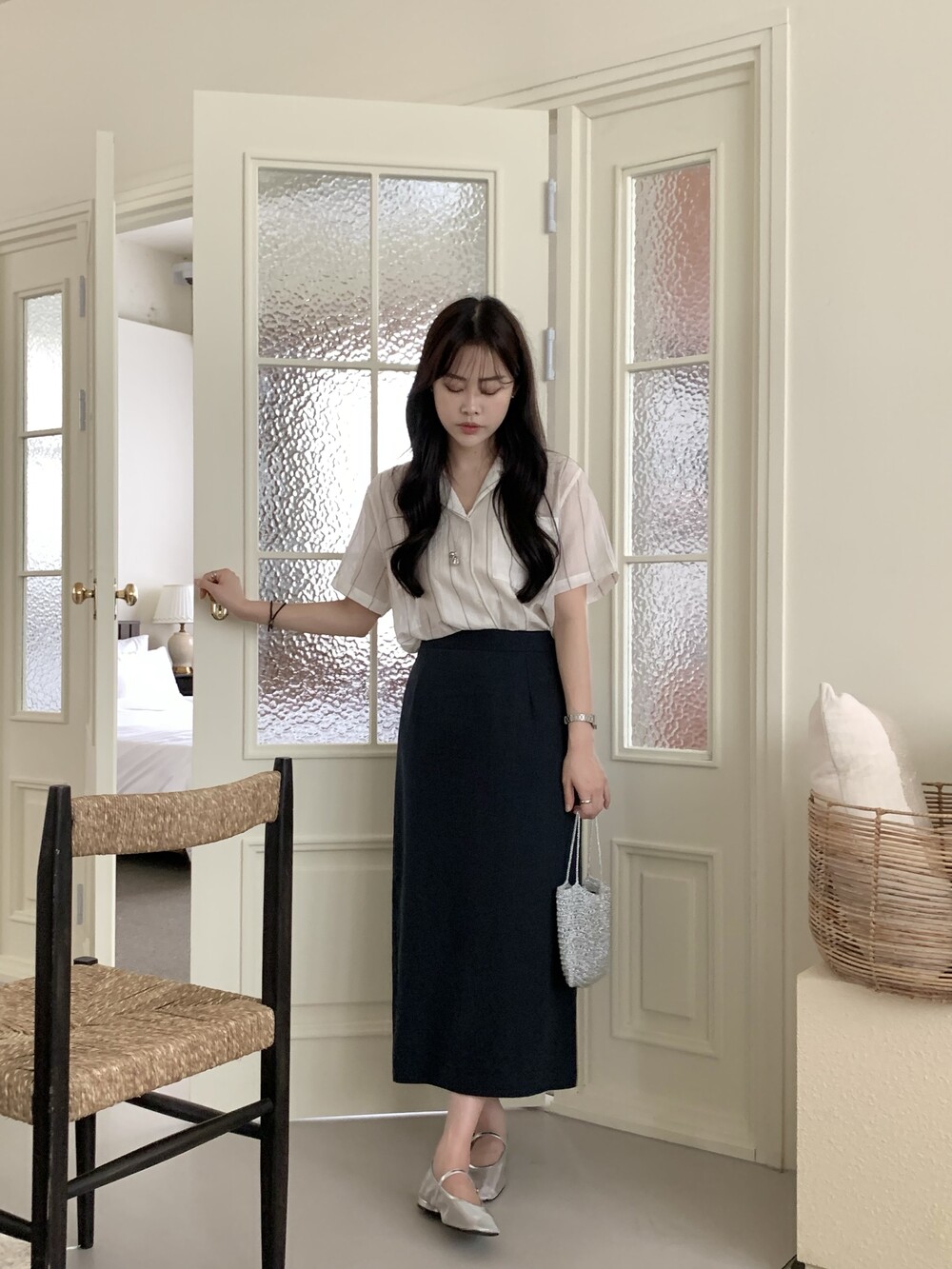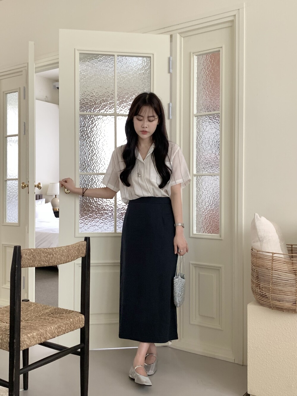 BOTTOM - COZY LINEN SLIT LONG SKIRTS(IVORY)