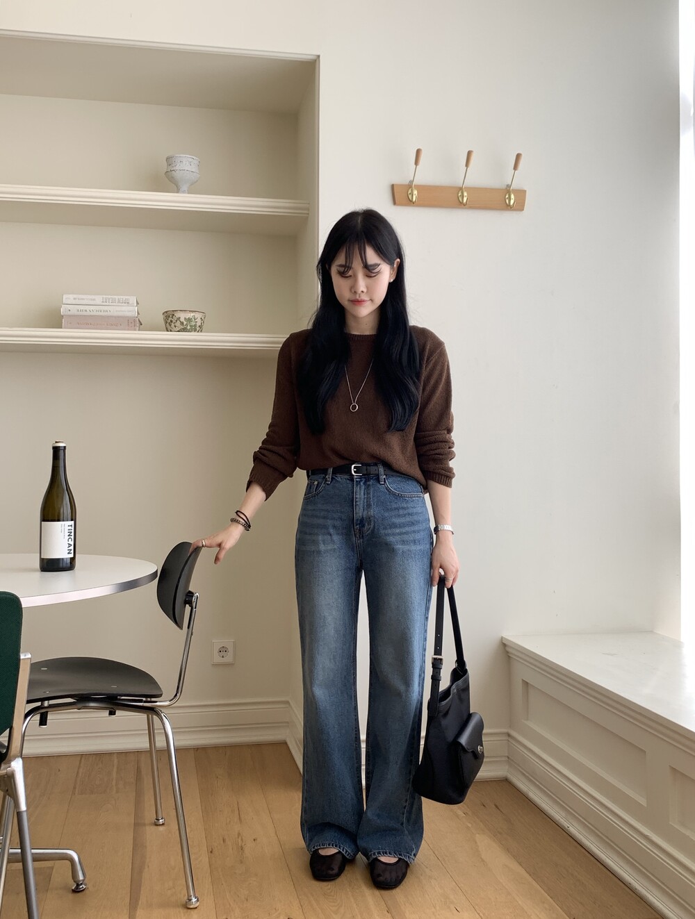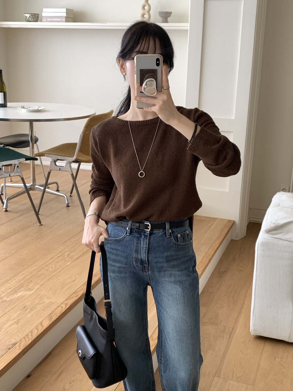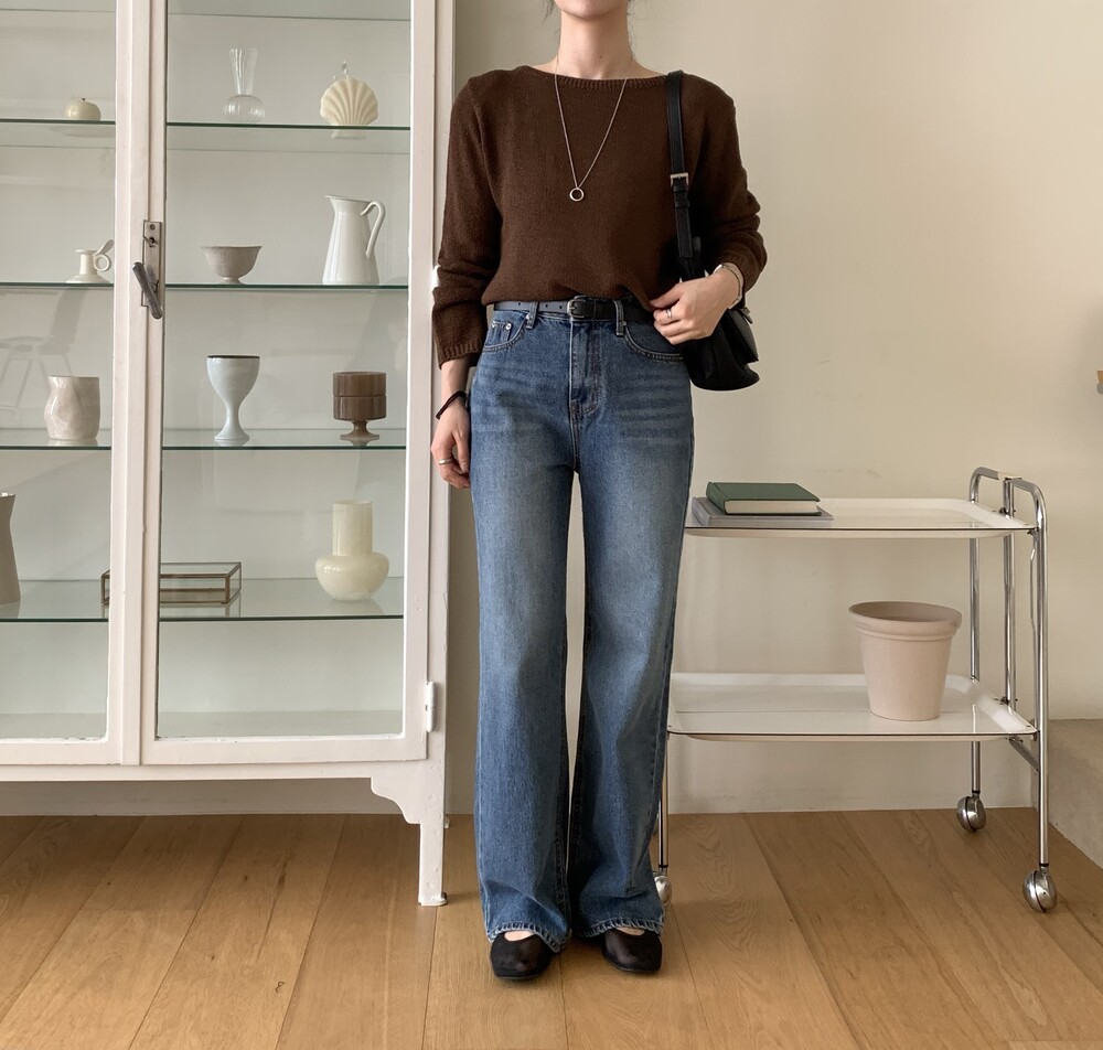 TOP - PLAIN SIDE SLIT KNIT(BROWN)