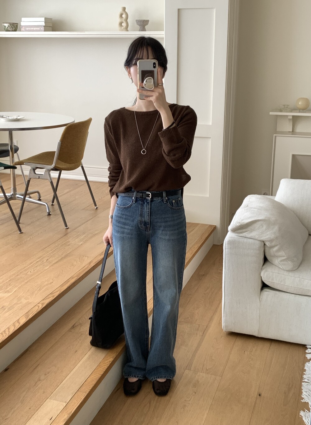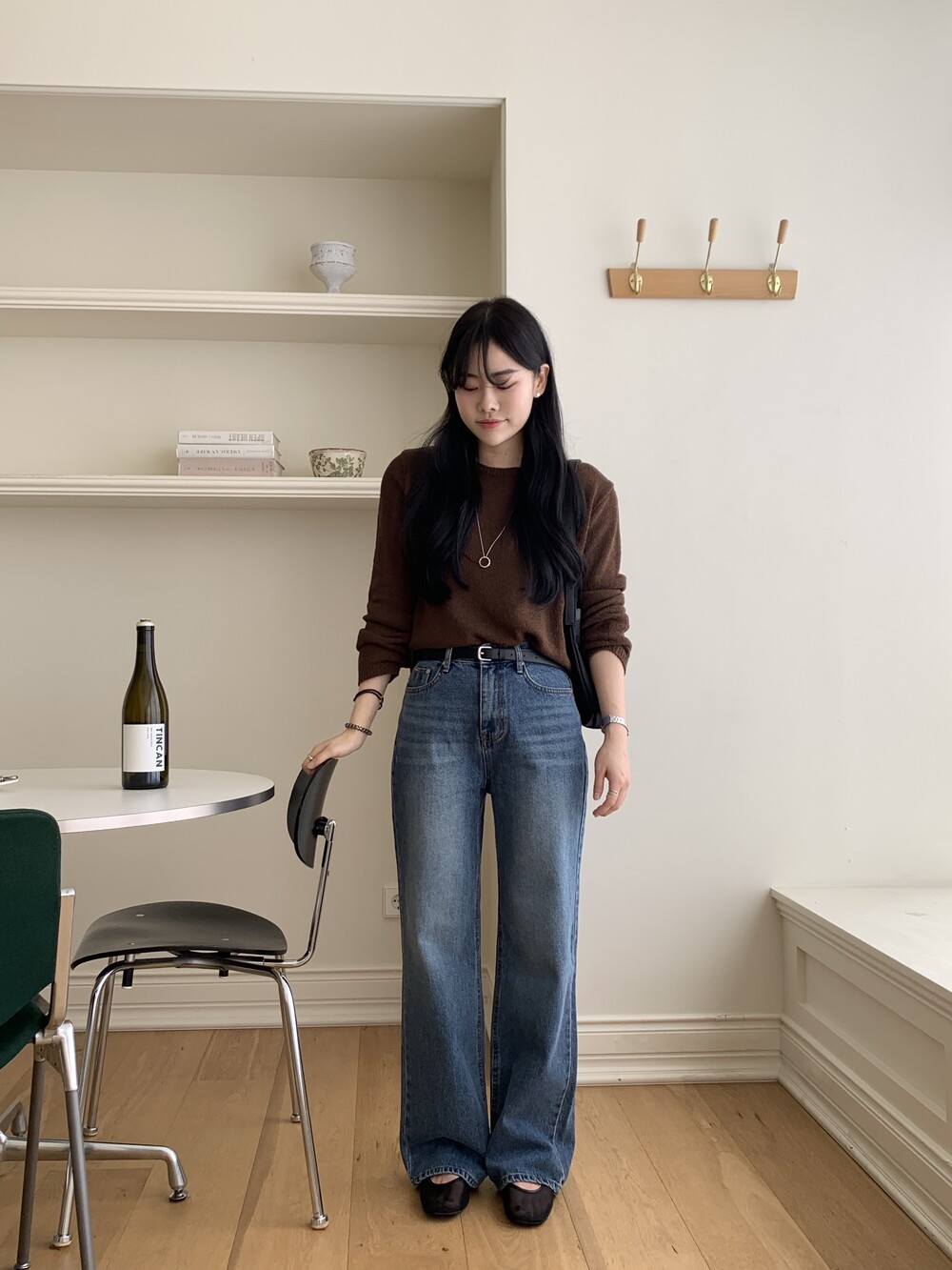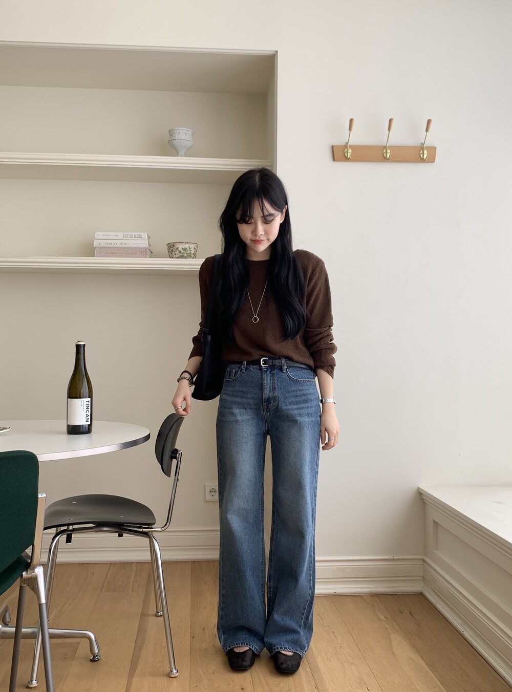 TOP - PLAIN SIDE SLIT KNIT(BROWN)