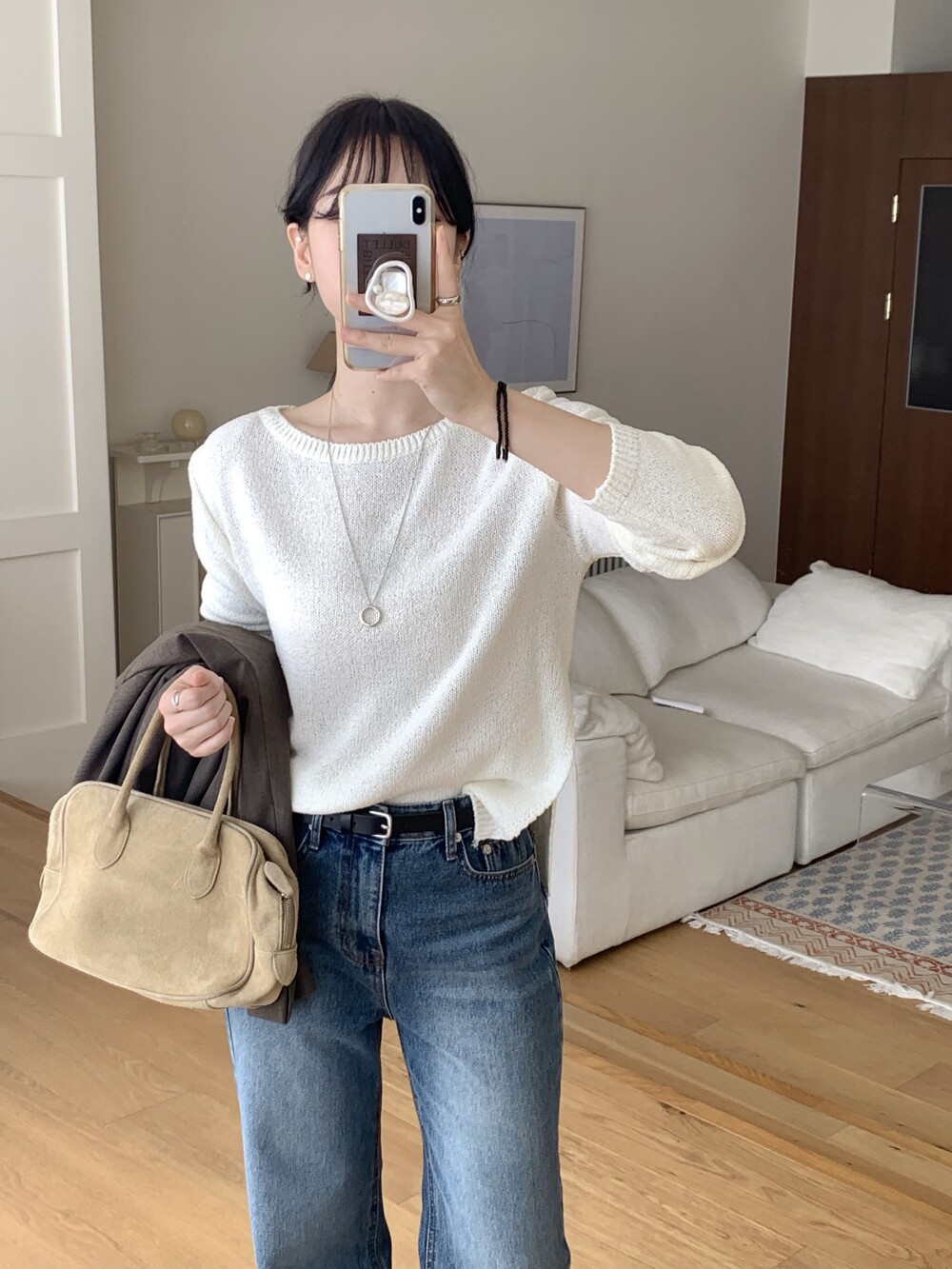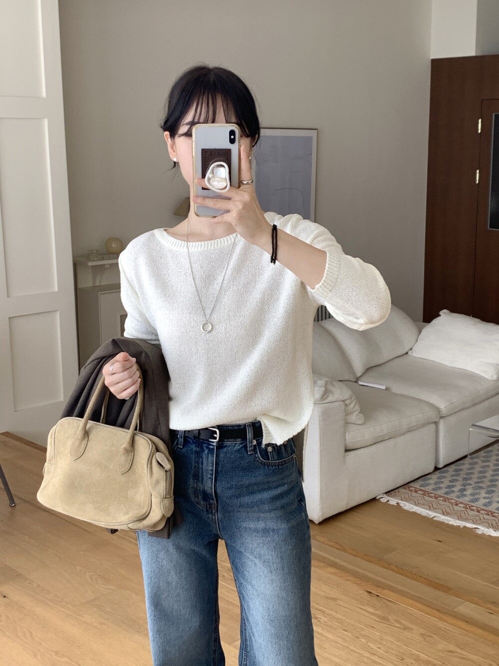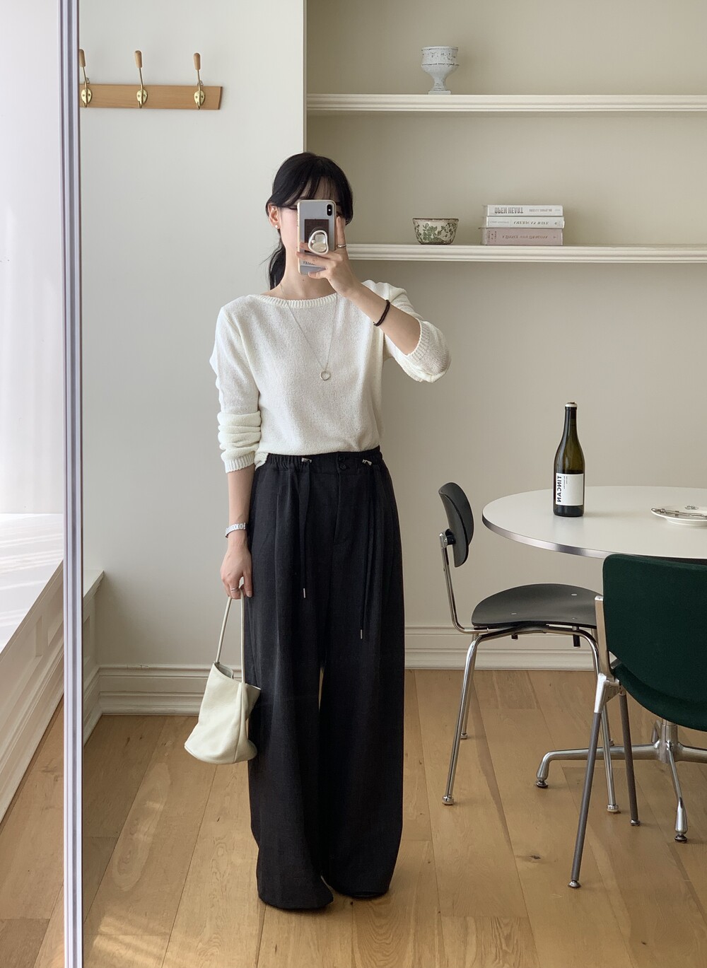 TOP - PLAIN SIDE SLIT KNIT(IVORY)