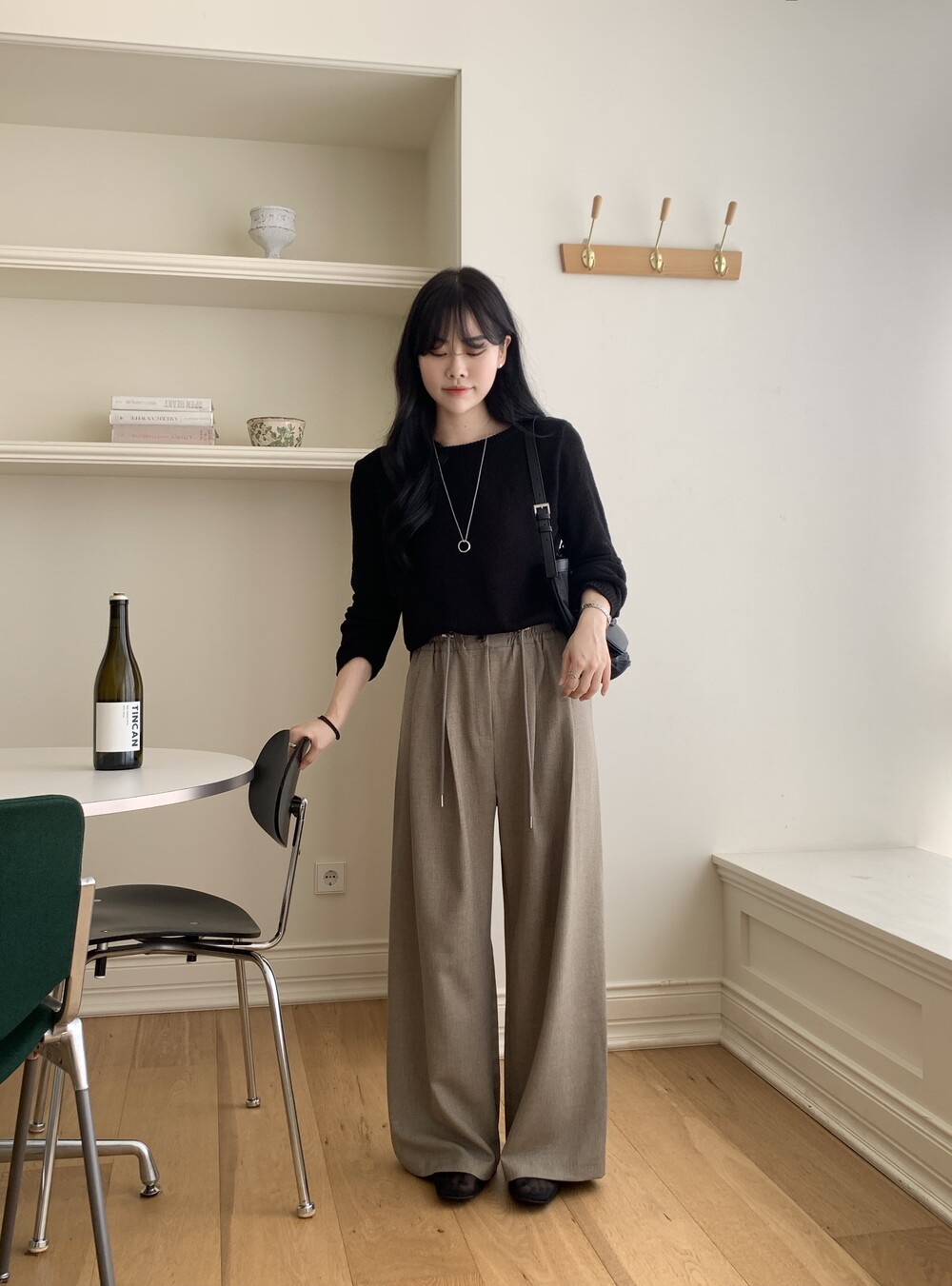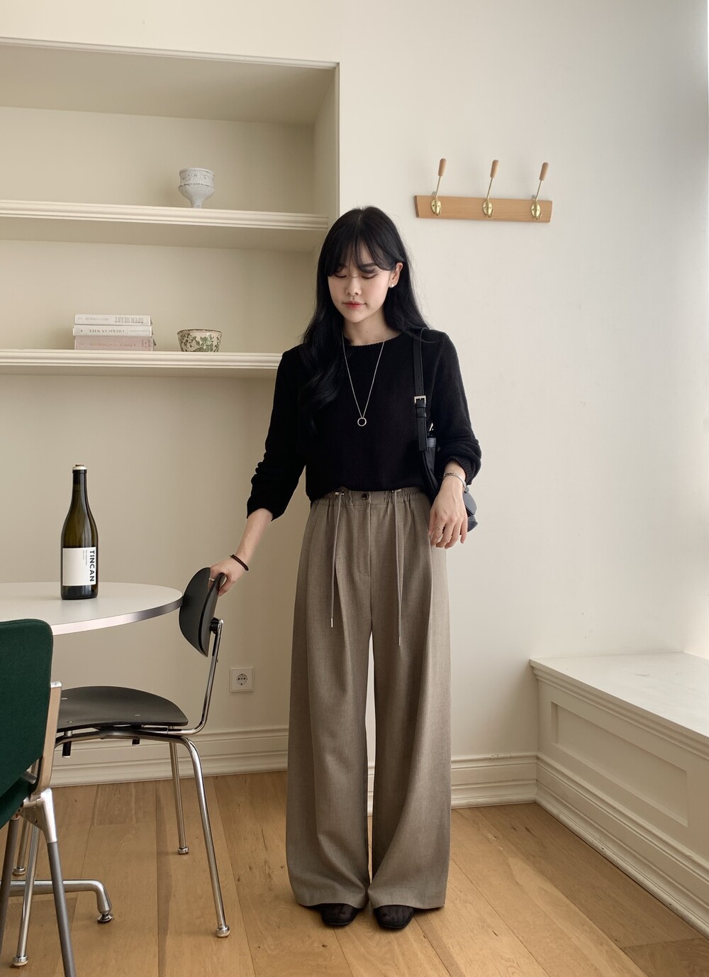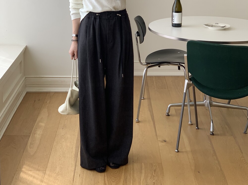 BOTTOM - PLOT BANDING SLACKS(CHACOAL)