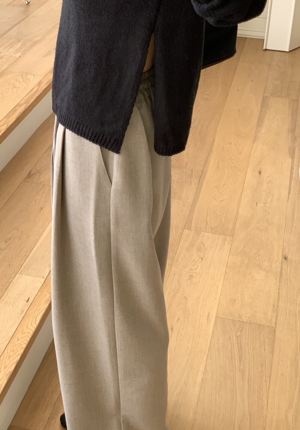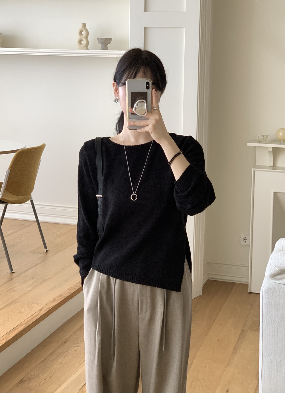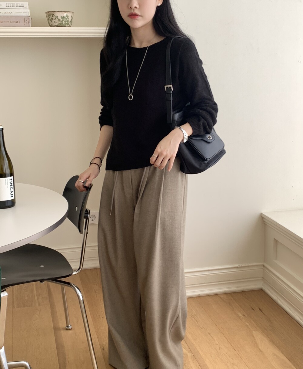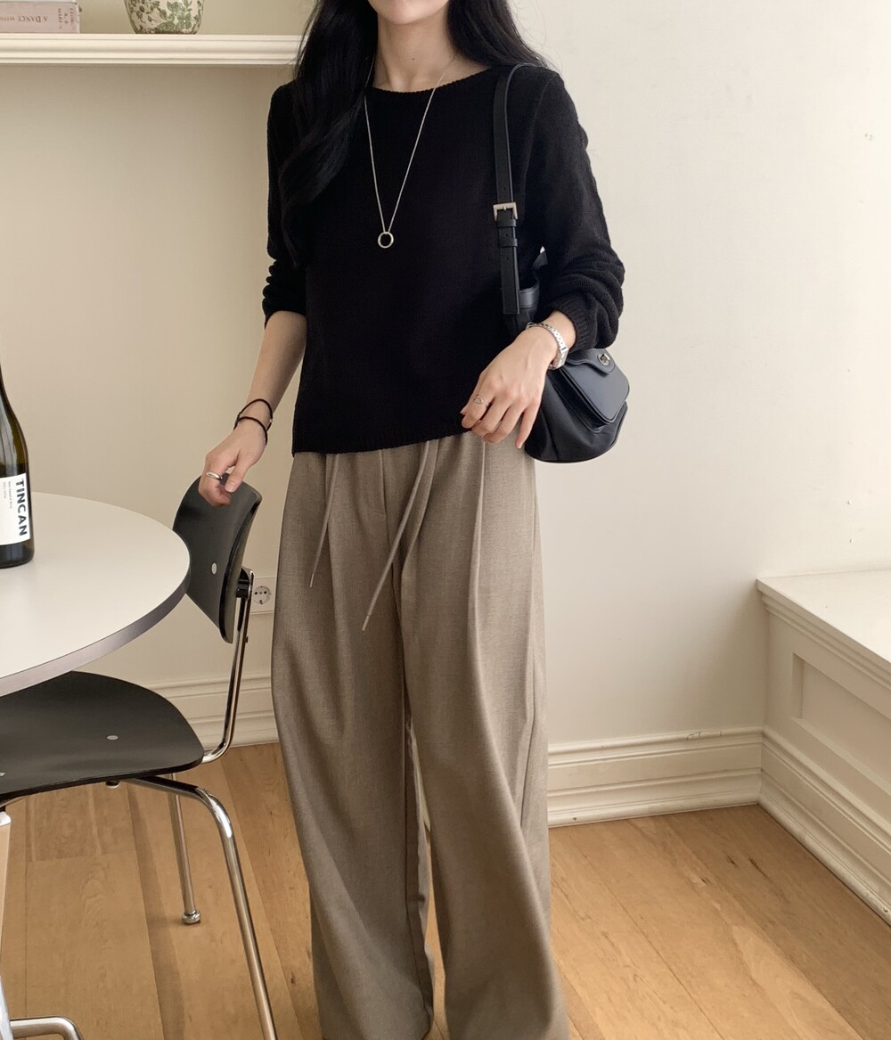 TOP - PLAIN SIDE SLIT KNIT(BLACK)