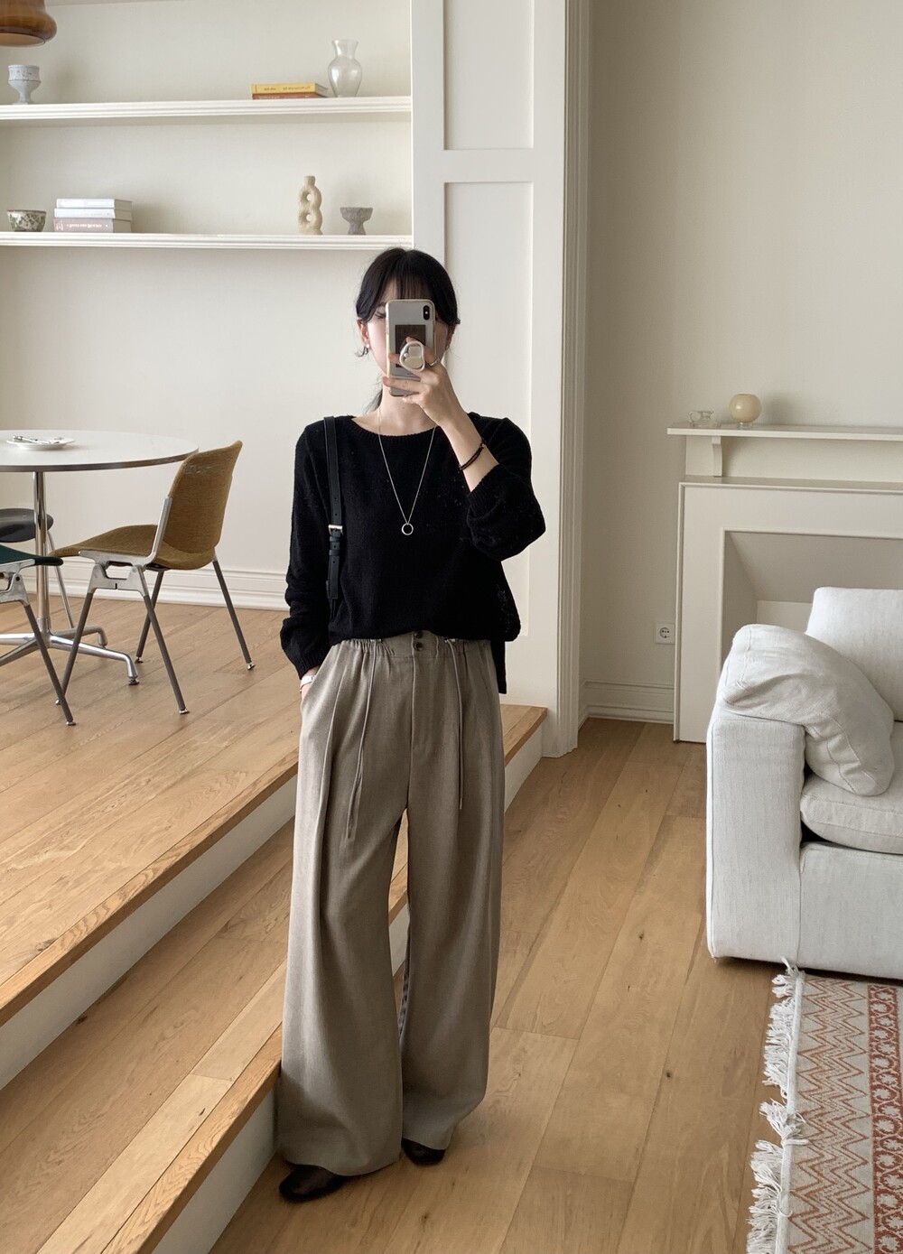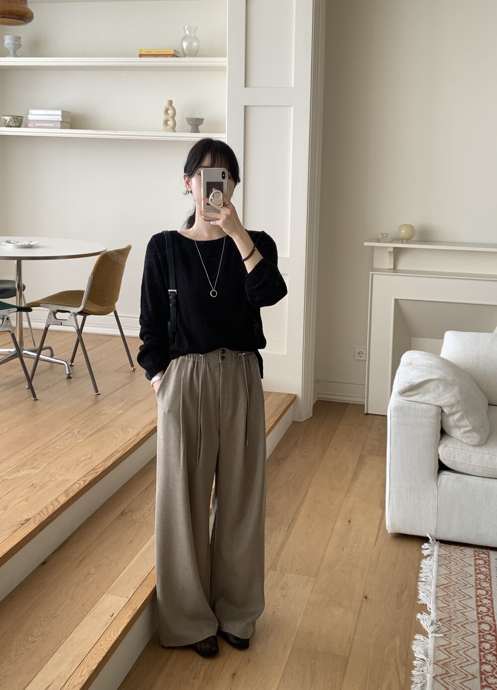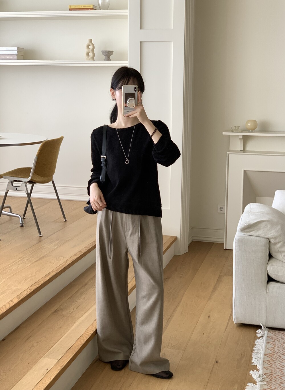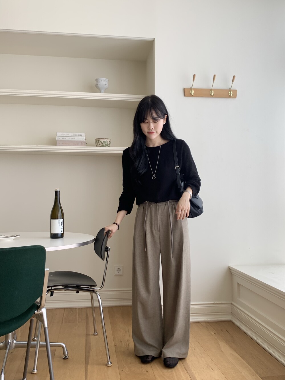 TOP - PLAIN SIDE SLIT KNIT(BLACK)