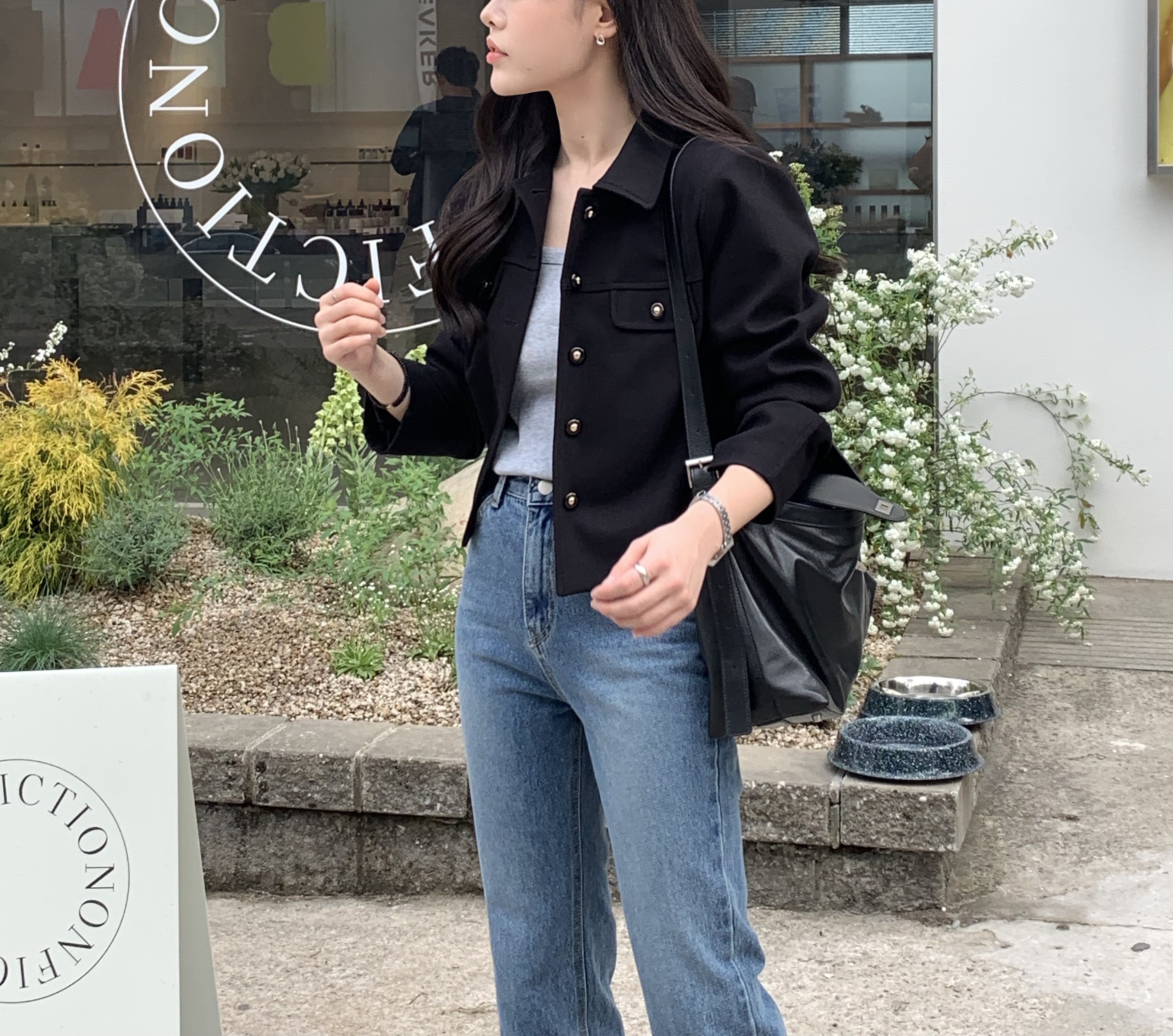 OUTER - BIRCH BUTTON CROP JACKET(BLACK)
