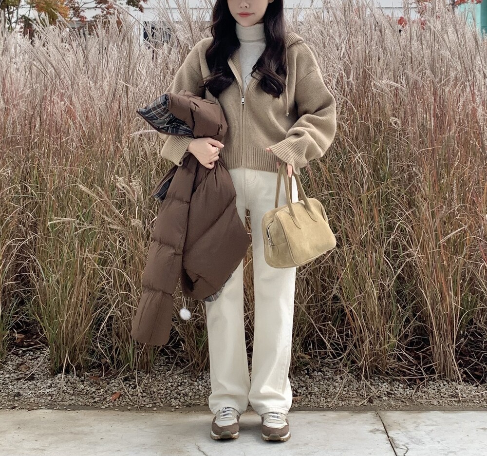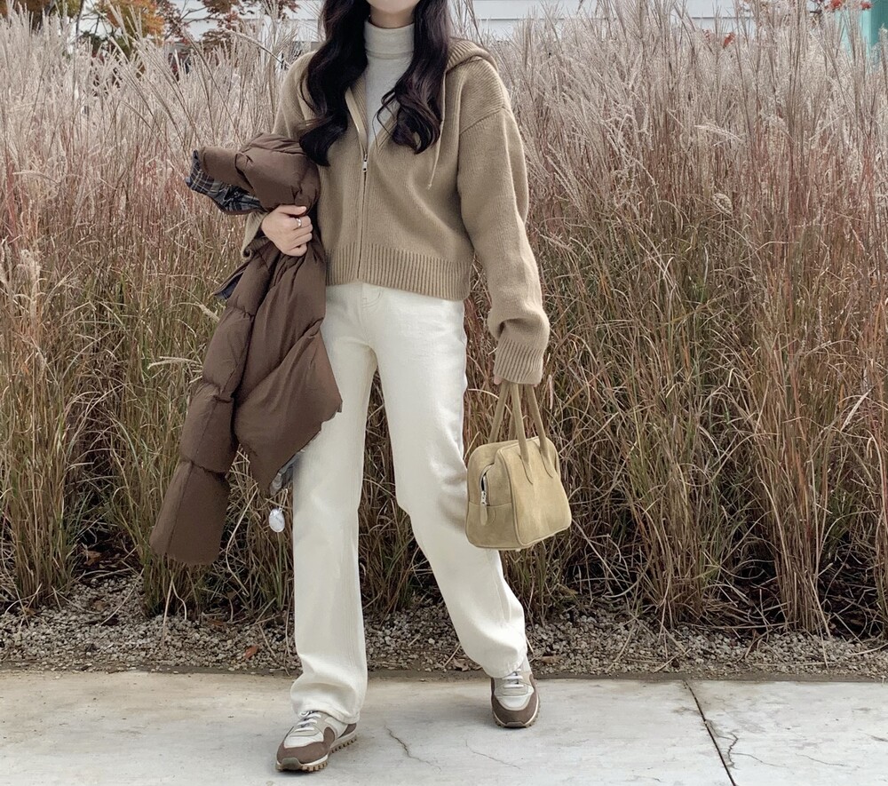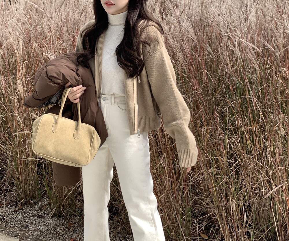 HOOD ZIPUP KNIT CARDIGAN(BEIGE)