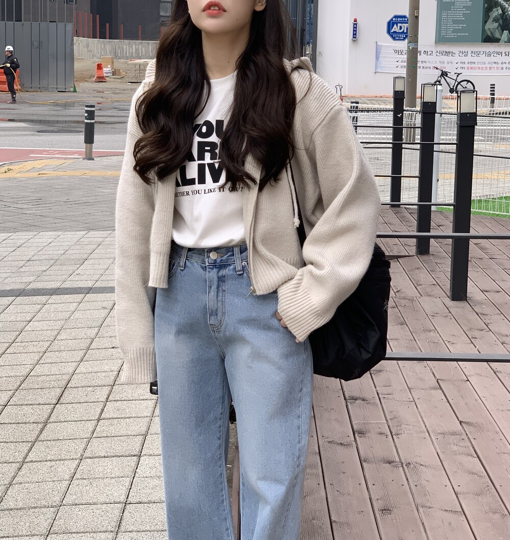 HOOD ZIP UP KNIT CARDIGAN(IVORY)